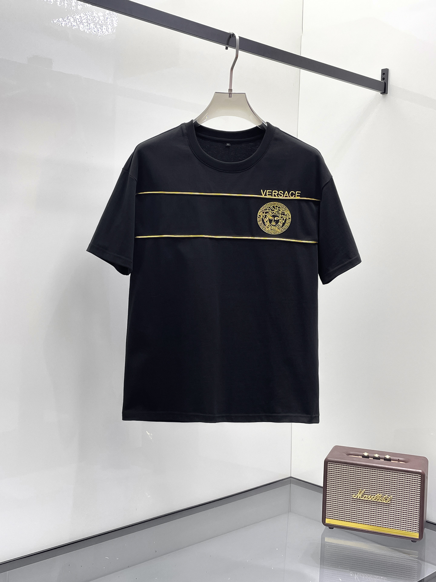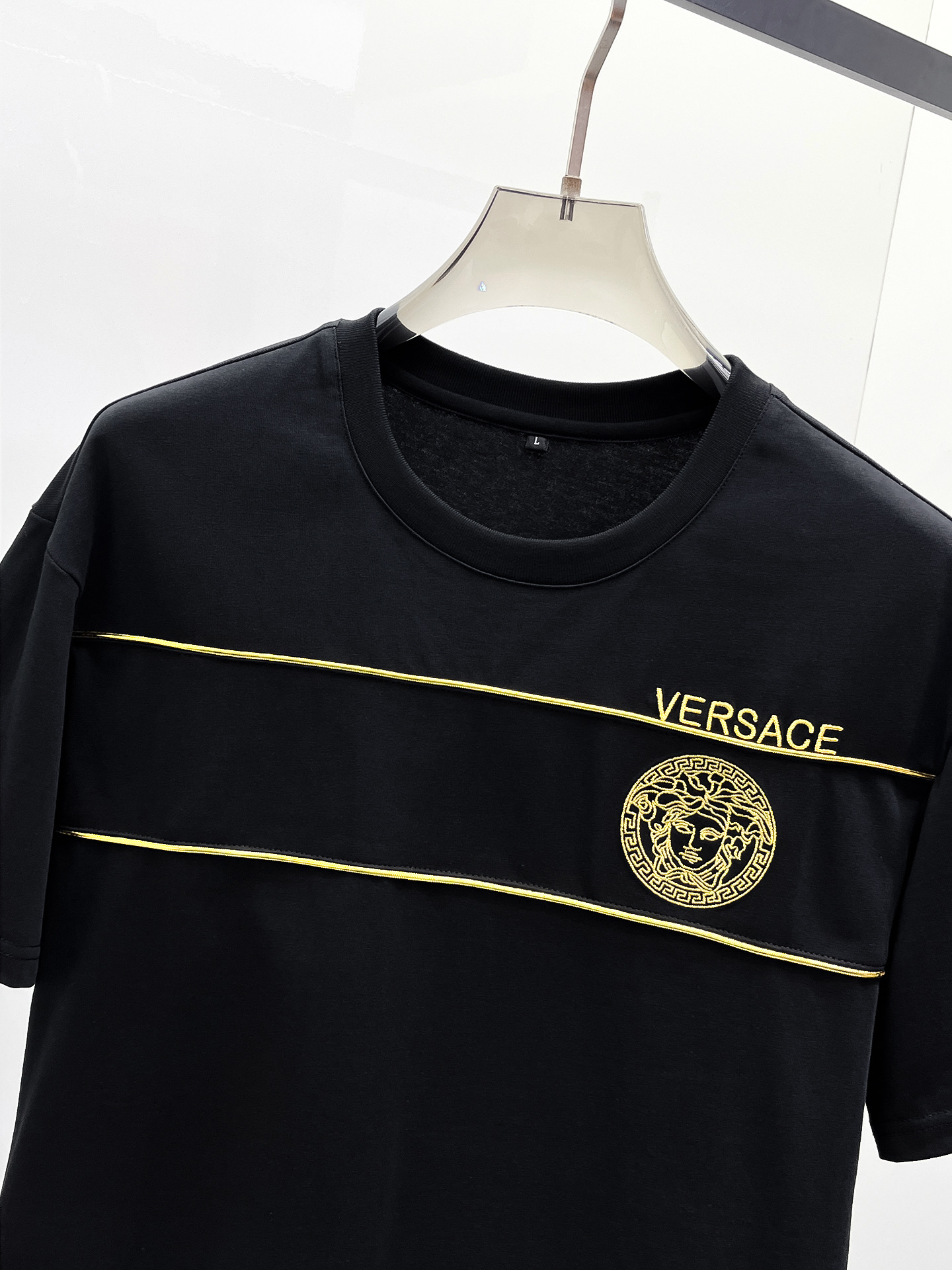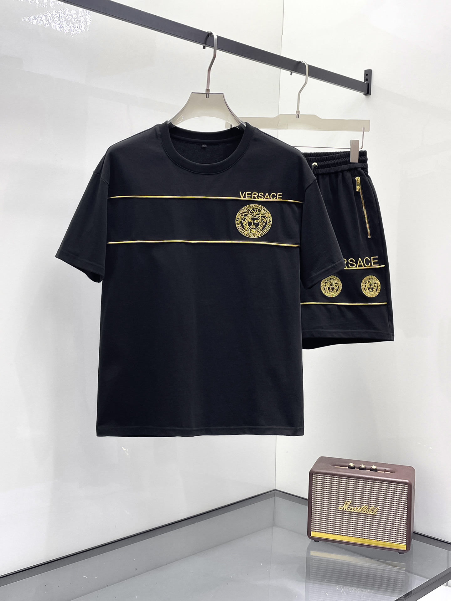 Versace 2025ss Spring/Summer New Casual short-sleeved and short-shorts Set! The casual set with a fashion flavor that celebrities love the most is simple and elegant. The official website features a 1:1 craftsmanship design! The clean and neat cut exudes a strong urban style. Exclusive top-quality custom fabric is available. The hand feel is soft, dry and comfortable, and the wearing effect is crisp and stylish. The three-dimensional cutting process and the pattern are all of high standards, with appropriately sized silhouettes! It's not tight at all. Wearing it makes you feel good. With so many top-quality raw materials, it creates a high-end product with unparalleled value. It has all three standards and is the first choice for high-end, trendy and fashionable people. The wearing effect is super nice! Size: M-3XL