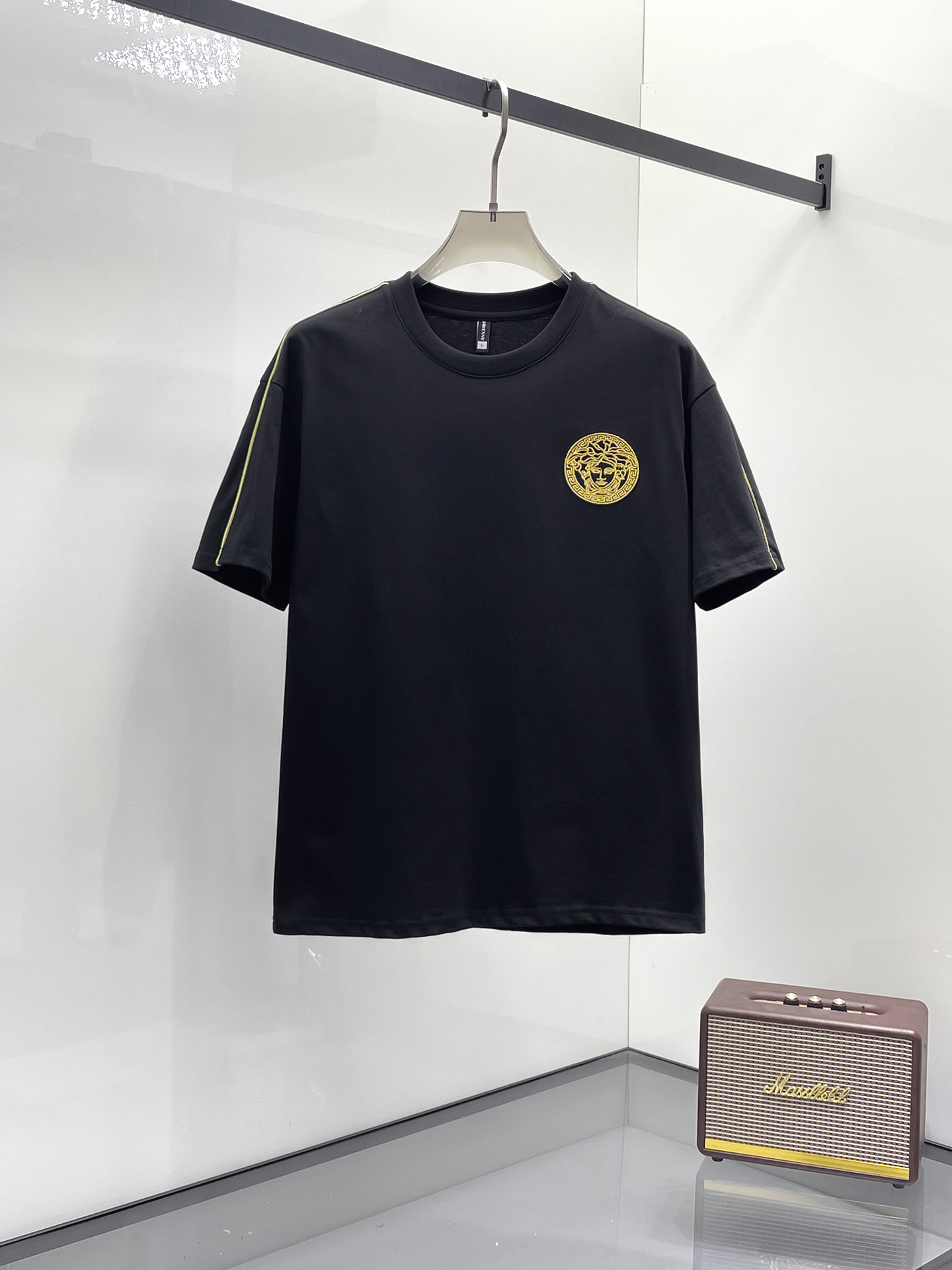 Versace 2025ss Spring/Summer New Casual short-sleeved and short-shorts Set! The casual set with a fashion flavor that celebrities love the most is simple and elegant. The official website features a 1:1 craftsmanship design! The clean and neat cut exudes a strong urban style. Exclusive top-quality custom fabric is available. The hand feel is soft, dry and comfortable, and the wearing effect is crisp and stylish. The three-dimensional cutting process and the pattern are all of high standards, with appropriately sized silhouettes! It's not tight at all. Wearing it makes you feel good. With so many top-quality raw materials, it creates a high-end product with unparalleled value. It has all three standards and is the first choice for high-end, trendy and fashionable people. The wearing effect is super nice! Size: M-3XL