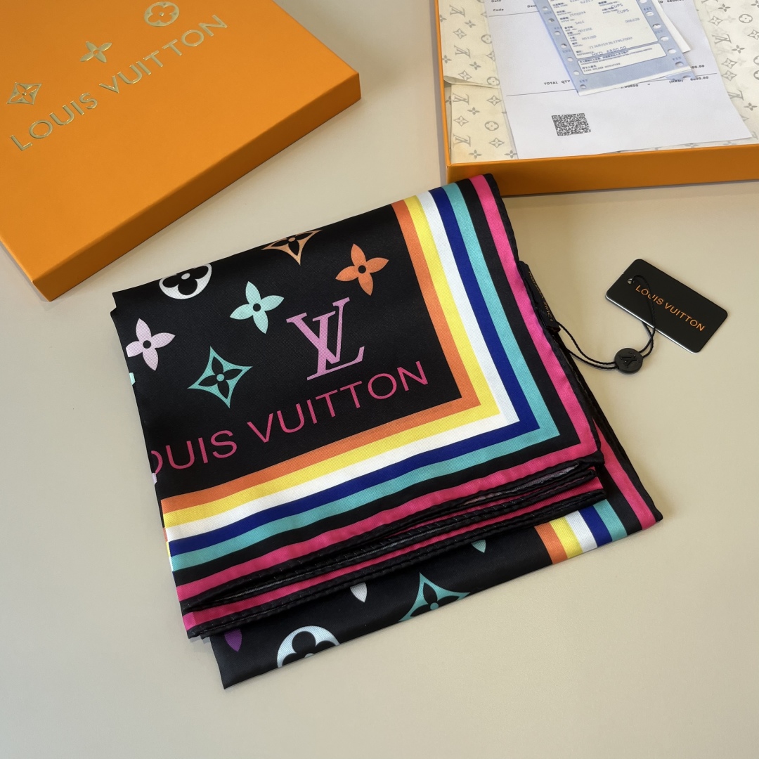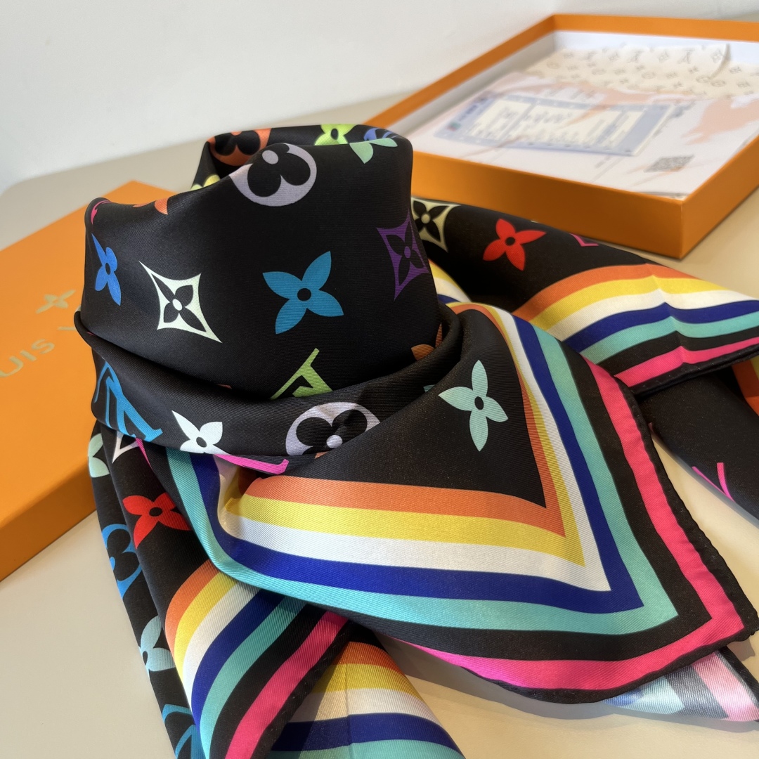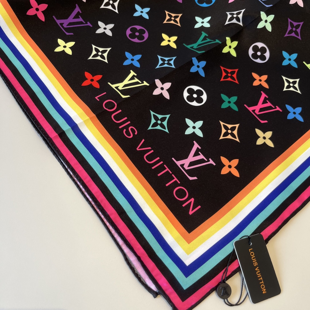 Lv handkerchief, 13 color Monogram print, twill silk material ?? Hand-rolled edge, very luxurious ?? Exquisite belt combination classic pattern matching skin tone and versatile high-end heavy twill silk ??
