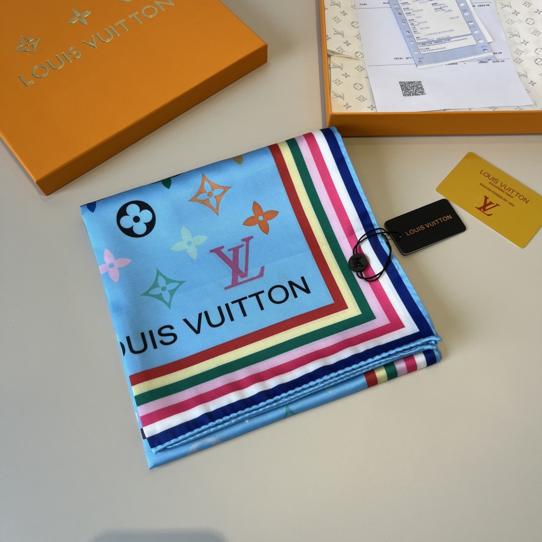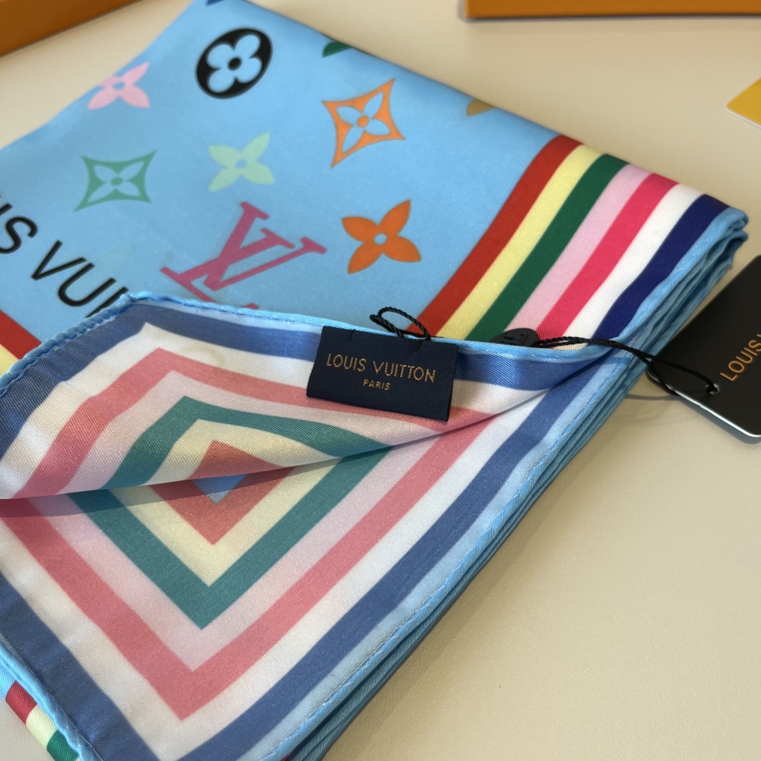 Lv handkerchief, 13 color Monogram print, twill silk material ?? Hand-rolled edge, very luxurious ?? Exquisite belt combination classic pattern matching skin tone and versatile high-end heavy twill silk ??