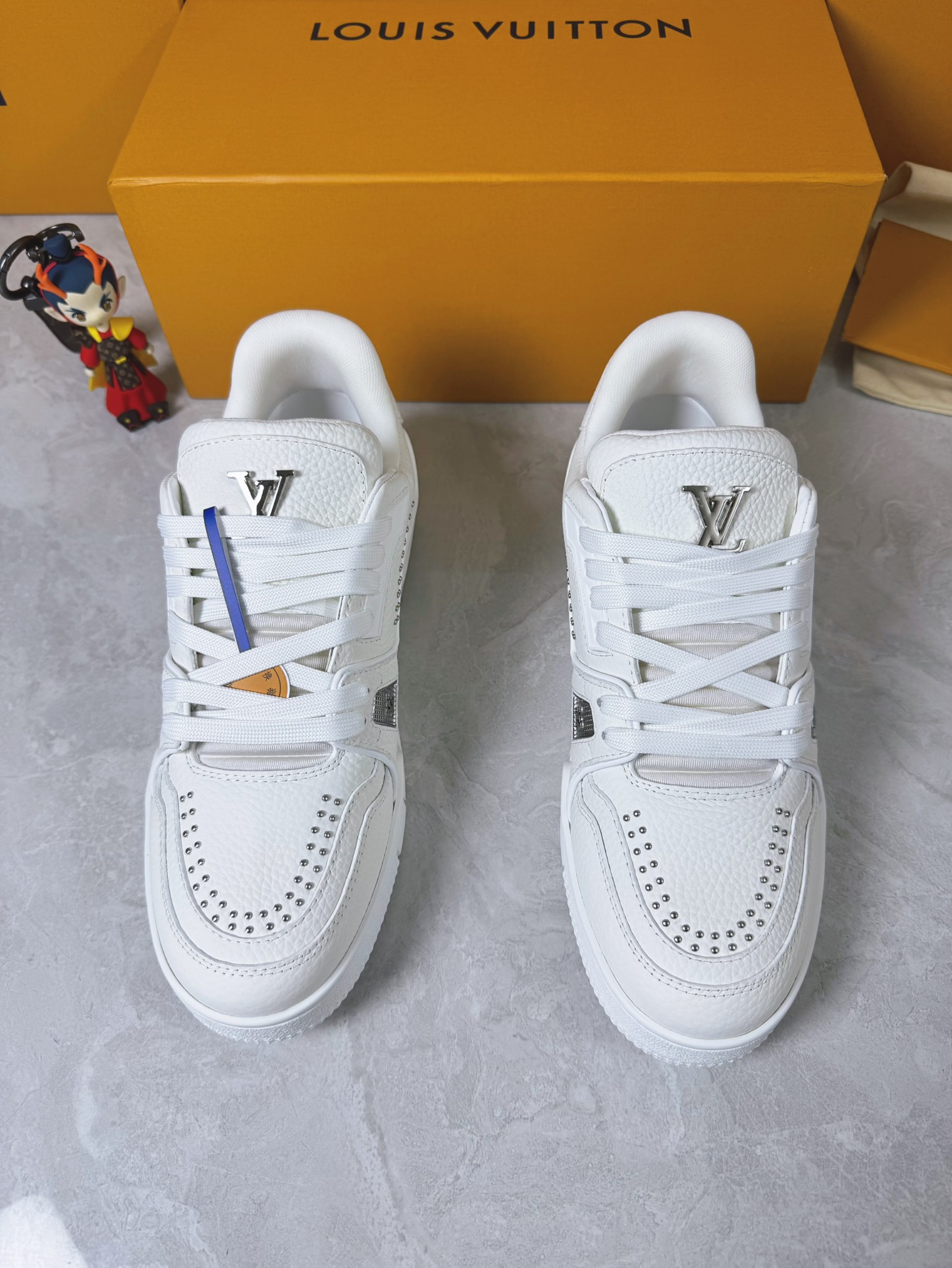 No. #4005?????? Made in Dongguan The official has synchronized new colors, exquisite craftsmanship and custom-made materials Original development quality shipment Welcome to compare ??????LV sneakers collection The LVTrainer Maxi sneakers incorporate the loose silhouette of the ready-to-wear collection into the LVTrainer sneakers designed by VirgilAbloh, making a remarkable appearance on the spring/summer men's fashion shows. The cowhide upper is combined with rough fabric LACES, highlighting the brand's classic elements with colorful beaded beads. The LV letter marks the tongue of the shoe, and Monogram flowers are placed on the outsole. Mixed material Made of top-grain cowhide, wrapped in imported custom-made printed denim, with a thick lacing design. The side features a large Monogram print, and the tongue and heel are decorated with "lv 54" badges. The rubber outsole is adorned with Monogram flowers, and the mesh inner lining is padded with cotton feet. The comfort level remains as ultimate as ever. Inheriting excellence, quality first. It's worth having! Size: Women 35-40, Men 39-45 (46 custom-made, non-returnable and non-exchangeable) The full set of packaging comes with an original gift box