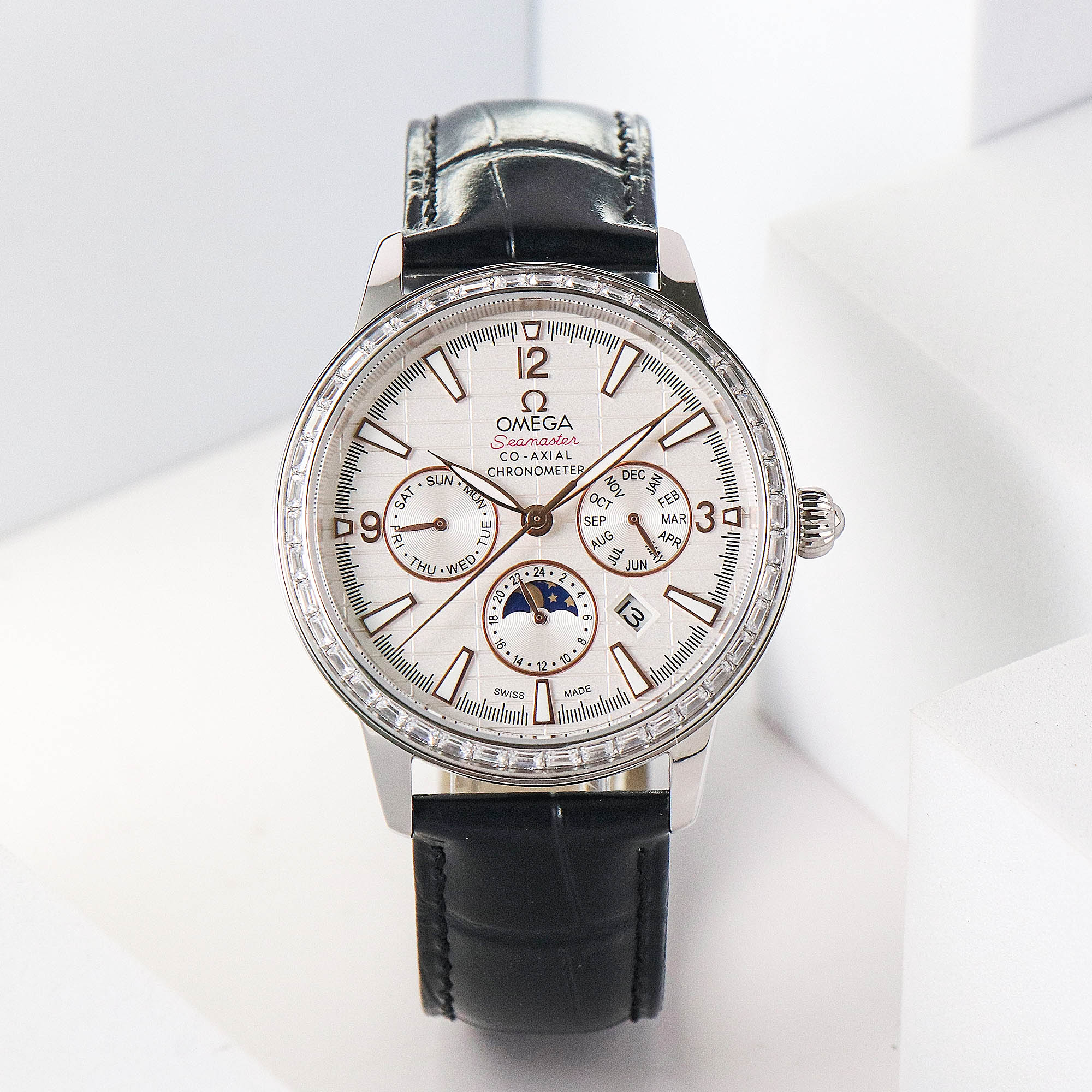 New 2024 case upgrade Hidden button ?? Brand: Omega multi-purpose collection ???? Hot launch ??????. Style: Men's automatic mechanical wristwatch (black, white, Coco, gold) Movement: Imported 9100 (zero failure) Case: Top-of-the-line 316L stainless steel Watch strap: Italian imported cowhide Clasp: Original pin clasp Glass: French sapphire scratch-resistant glass Diameter: Original size 40mm Functions: Display of sun, moon, stars, months, days of the week, and dates. Water resistance depth :50 meters water-resistant and wearable for swimming Affordable brand, understated luxury, not ostentatious. Once you have it, ask for nothing else!