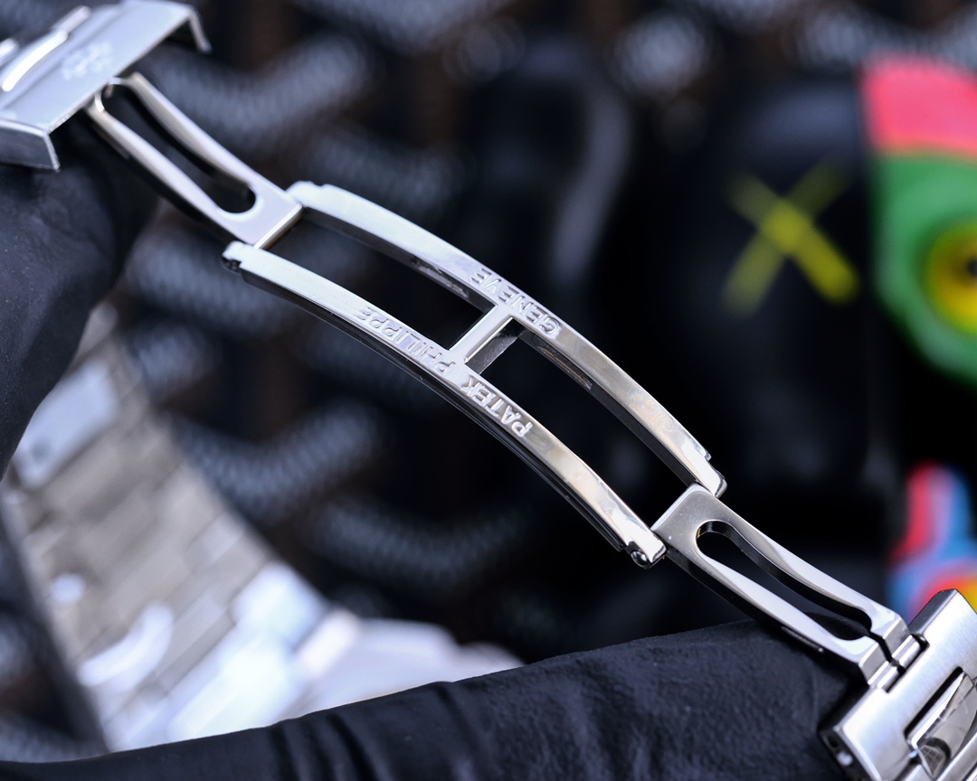 PP Patek Philippe NAUTILUS 5980 Series - Chronograph Nautilus, with a diameter of 40.5 mm and the thinness in the market, perfectly reproduces 95% of the functions of the genuine product. The 3-digit setting features a date display window with a polished white gold frame, and the 6-digit coaxial cumulative chronograph is enlarged. The two chronograph buttons on the top and bottom of the crown are seamlessly integrated with the overall design, ensuring convenient operation. The bracelet links alternately adopt matte and mirror polishing treatments, with a transparent back design, allowing the movement to be clearly visible at a glance.