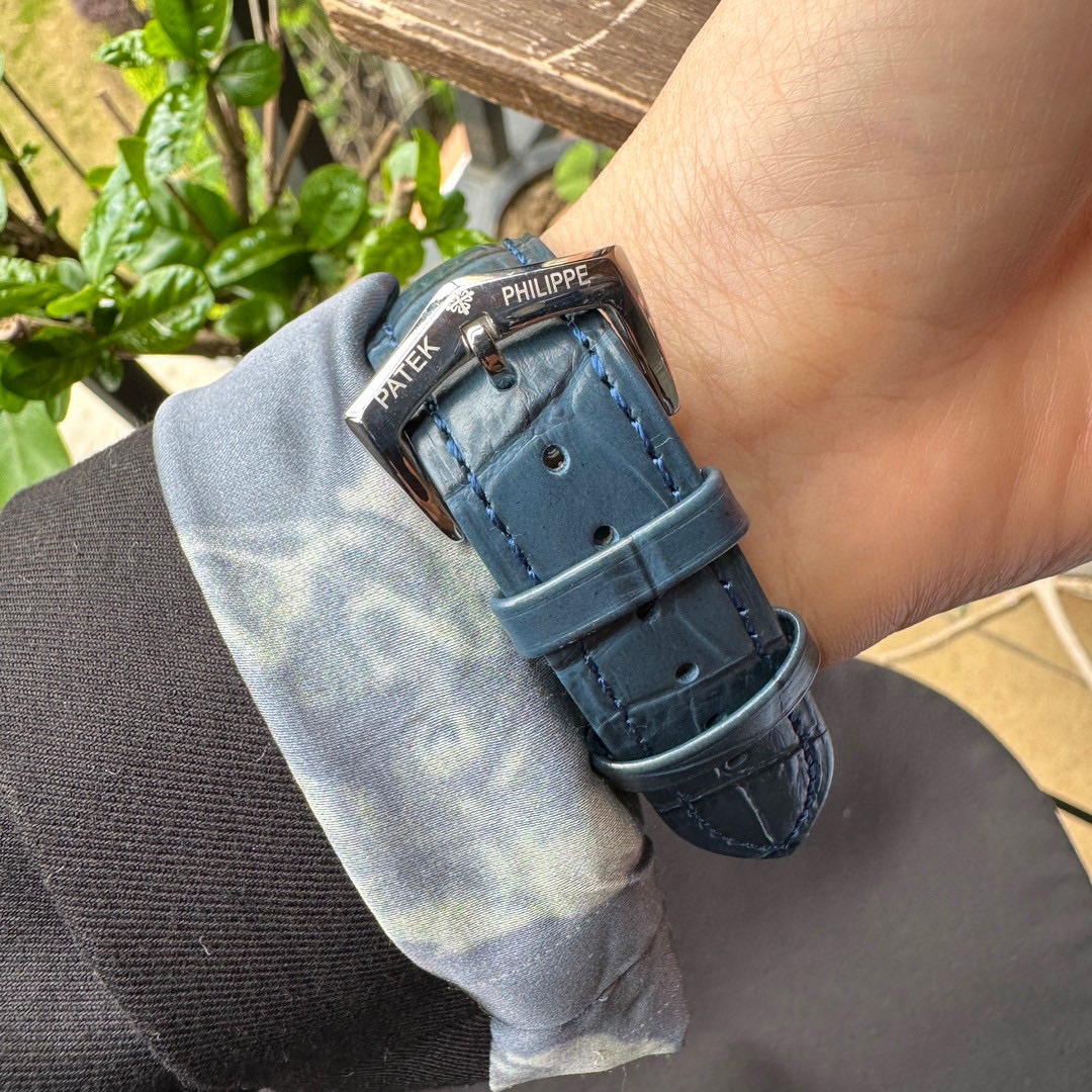 Patek Philippe Starry Sky Upgraded Ultimate Edition Upgraded Galaxy 6102 6104 Super Complex Function Series ?? Geneva Dome series Can you imagine wearing the Starry Sky on your wrist? This starry sky watch features a unique star function. On the blue round dial, you can enjoy the Geneva sky map and the golden moon's orbit. It has been aged for 20 months and is equipped with a pearl rotor modified from Citizen 8215 of Japan. The moon on the dial of the sample watch is exactly the same as the genuine one. It will automatically change according to the situation of the moon in the sky, full moon, crescent moon, and eclipse. The sapphire glass on the front and back of the case is treated with advanced technology to increase the refraction of light, making the dial look more transparent and seemingly without the feeling of glass. The back cover and the glass also adopt the same concave shape as the genuine one, breaking the traditional parallel back cover and glass of watches