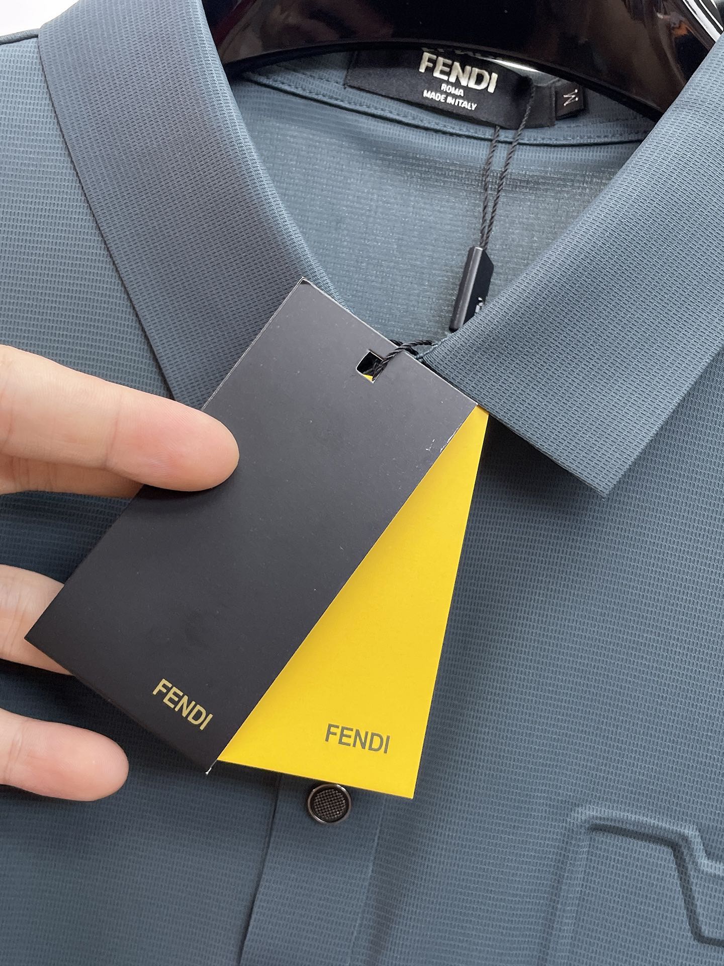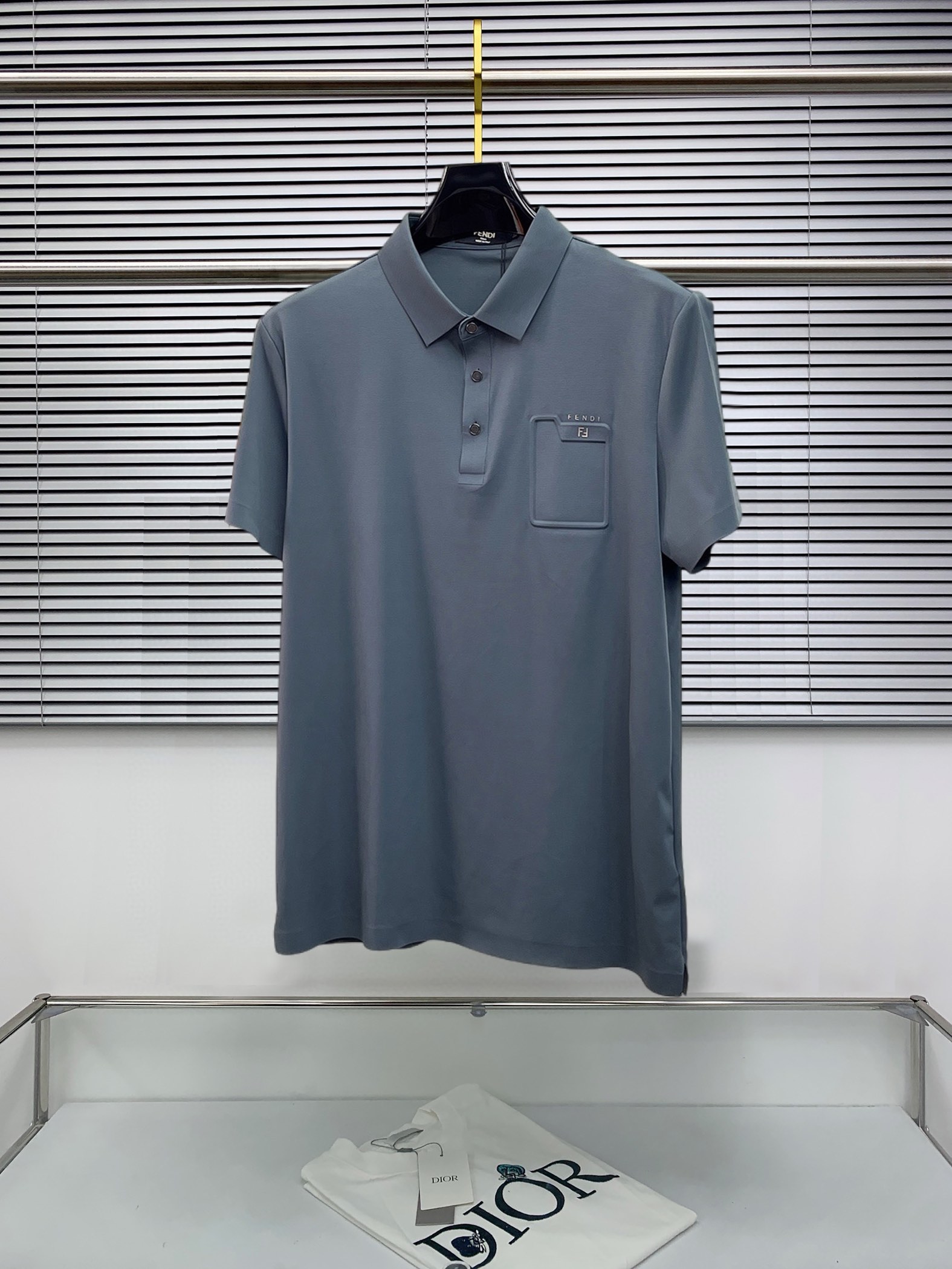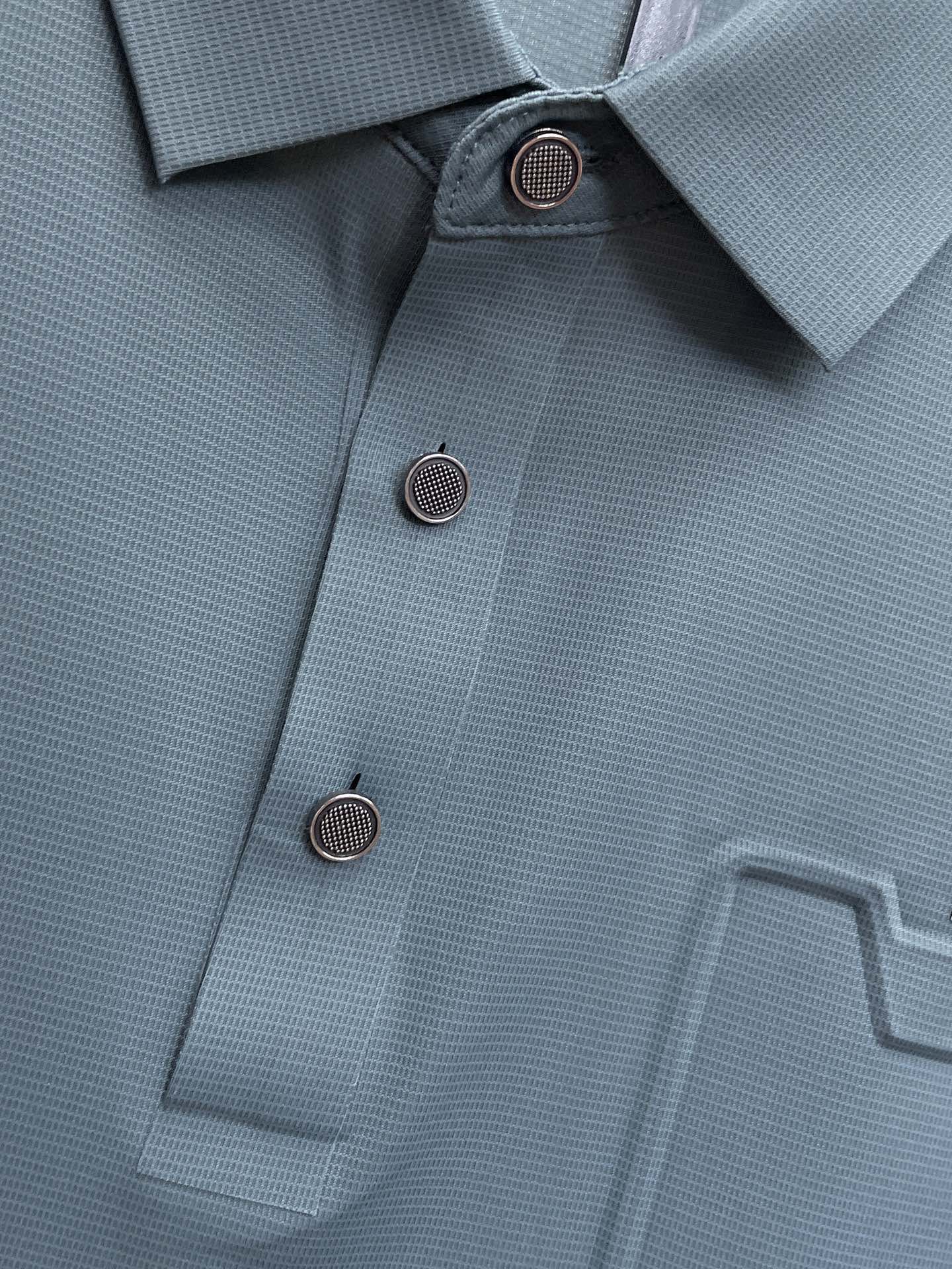 Fendi's high-end products are must-have items for business white-collar workers and office professionals! Pearl-ground fabric casual business short-sleeved Polo, made of technological fabric, has an excellent body feel, smooth hand feel and great texture! It has good elasticity and no sense of restraint at all. The fabric comes with breathable mesh, which can absorb moisture and sweat, and dries quickly to keep it dry. The small lapel and front button design shows a tall and straight posture. It is not soft and slippery. The simple style is suitable for both business and casual wear. Highly recommended! High-elasticity ice silk, with a touch as smooth as jade silk, clean and neat, exuding an elegant and gentlemanly demeanor. High-end materials, with the focus on the fabric. Quality control is a must. The hand feel is extremely fine and smooth, and the fabric has a good luster and a good frame feel when worn, making it a mature and high-quality men's wear! Summer sweat dries instantly, a brand-new experience for business commuting and casual wear. Size: M-4XL, maximum weight 200 pounds