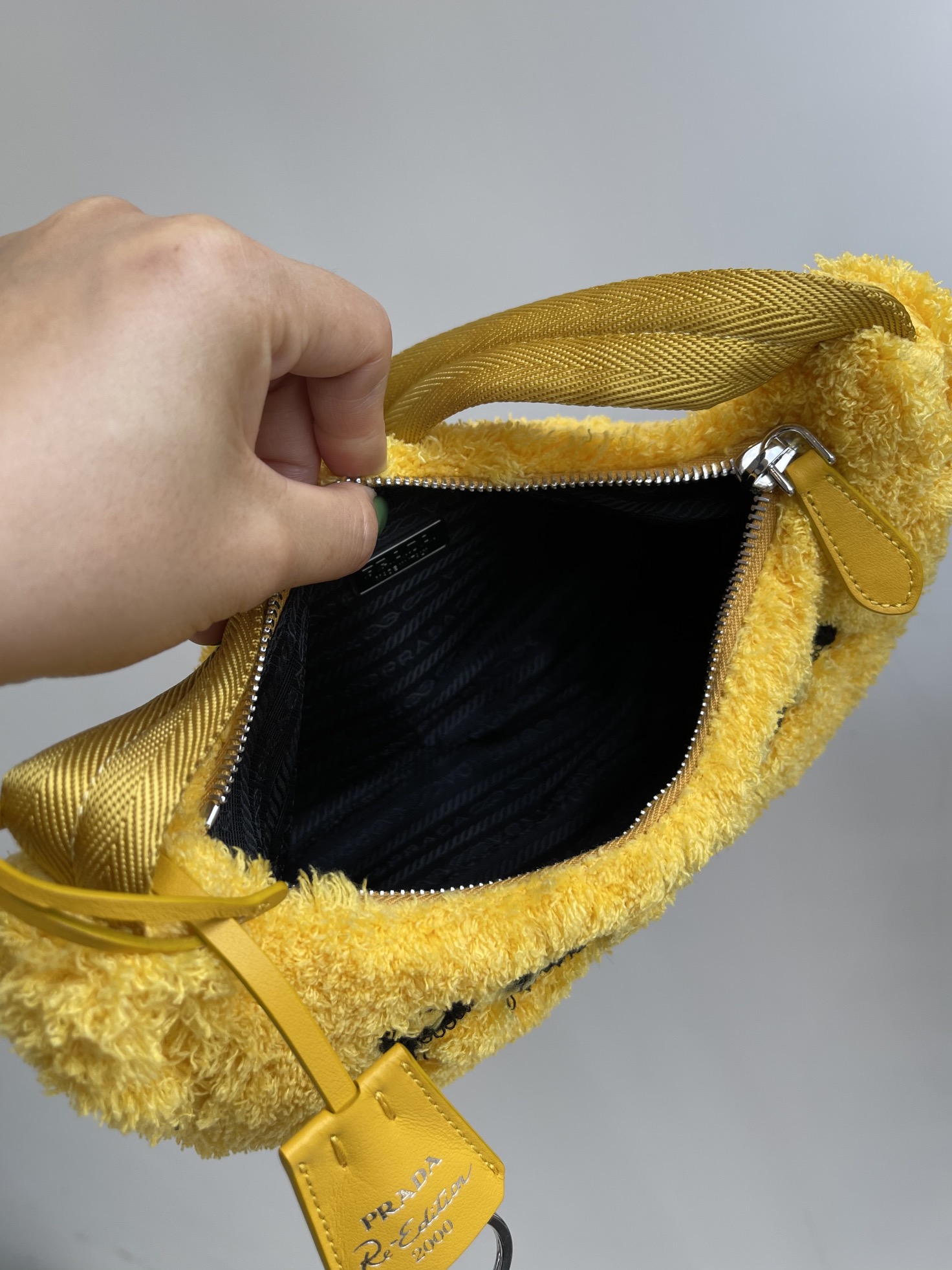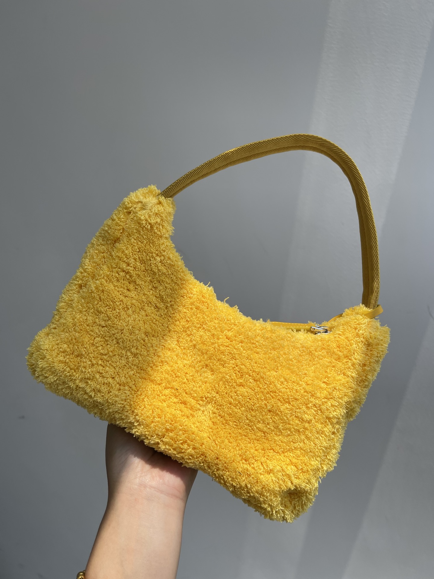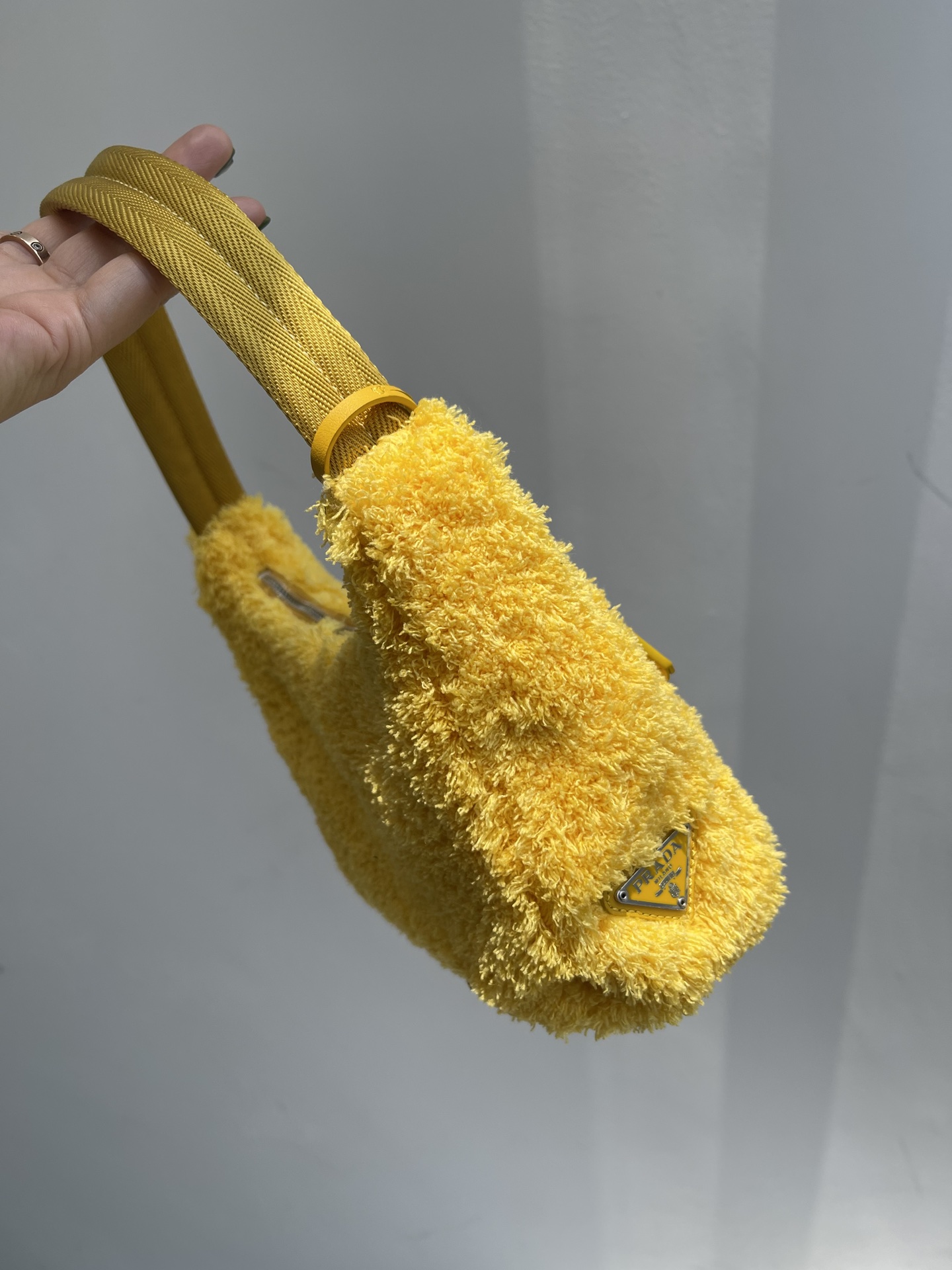Prada 21s women's new 2000 wool loop fabric underarm single-shoulder bag. The bag body is made of soft loop fabric material. The touch is so good. It's fluffy and the soft and sticky texture is super comfortable. The brand's letter Logo is embroidered and engraved on the front, showcasing the brand's signature elements. The side is coated with an enamel metal triangular logo. The zipper opening and closing design features a Prada logo fabric lining inside. It has sufficient capacity and is lightweight and portable. The nylon webbing handle looks great when carried under the armpit or by hand. It's a great choice for commuting, going out, or even for daily dates and shopping. It's both fashionable and good-looking when going out. Recently, some of Prada's new models have perfectly interpreted the sweet and cool style, which is simply amazing. They are the new favorite of fashionista and another bestseller recommended by Internet celebrities. They are super versatile and good-looking. Fashionista must buy them. Size: 22X12X6cm nNumber: #62536350