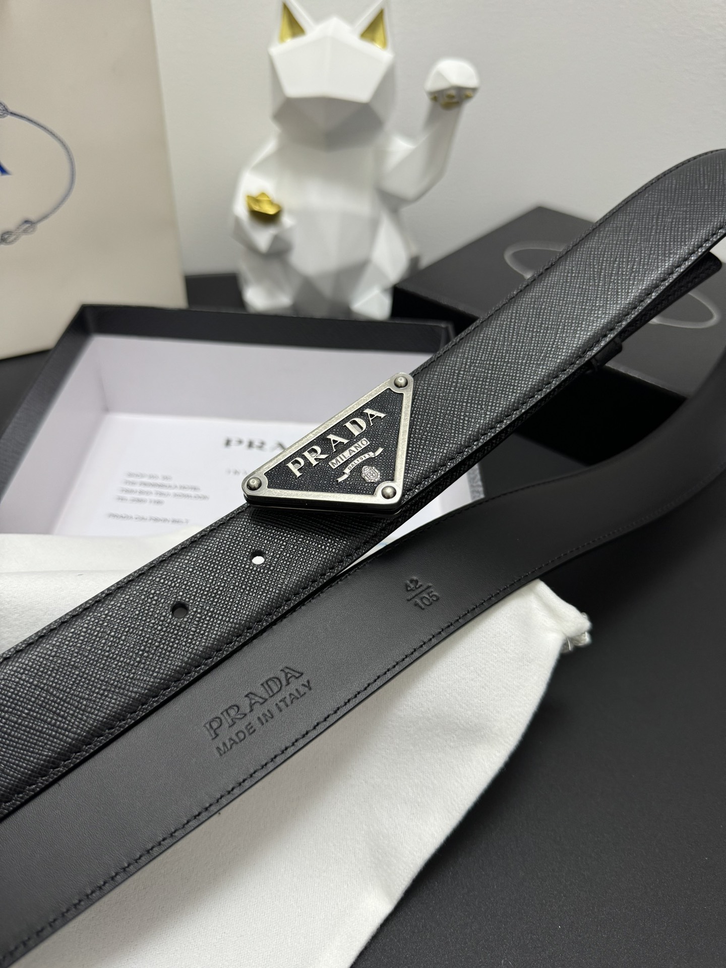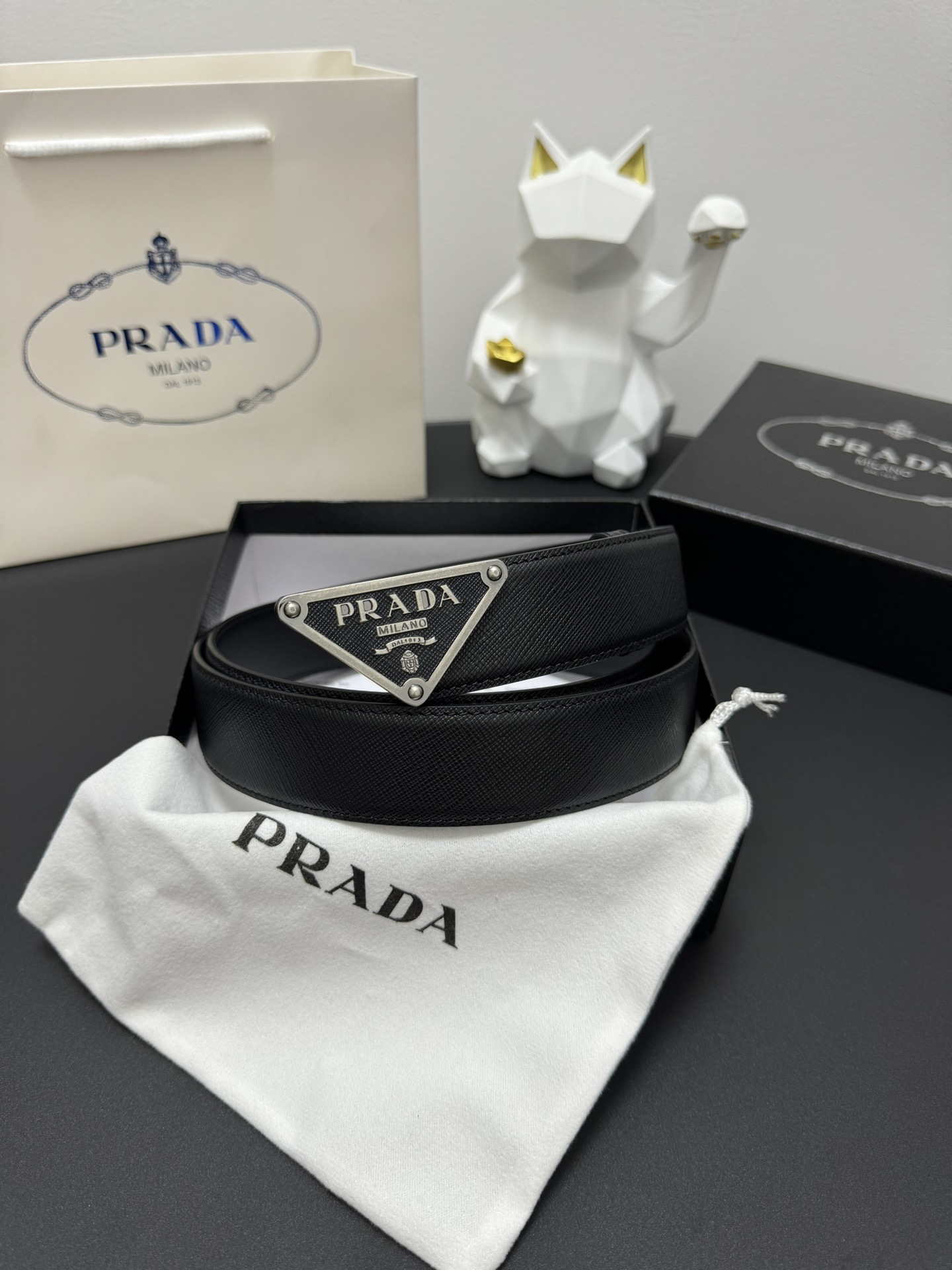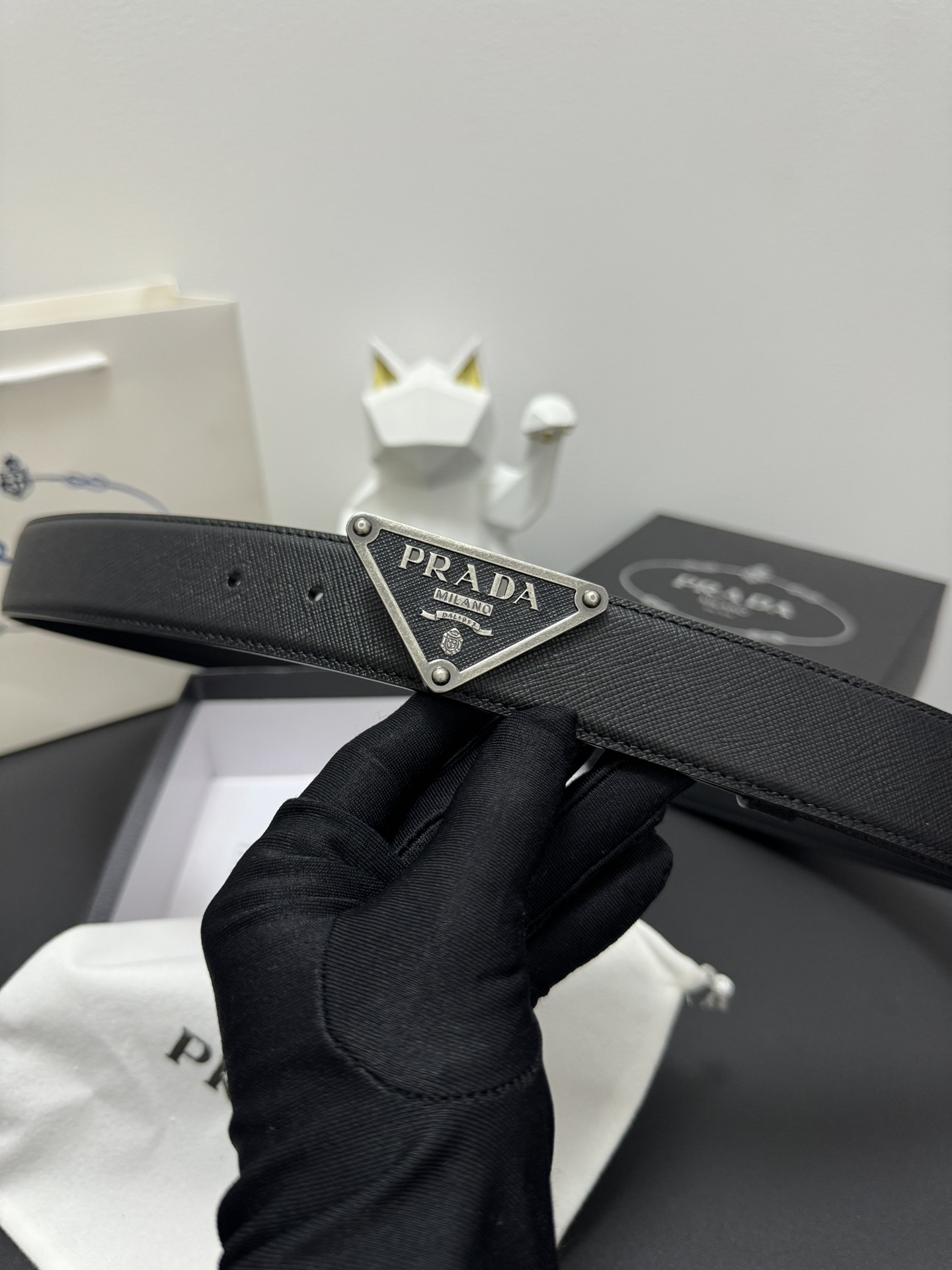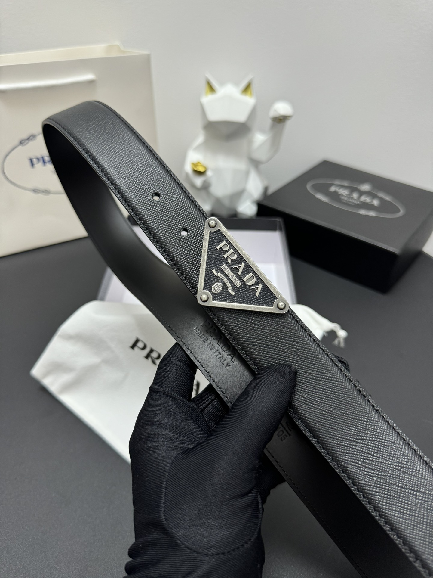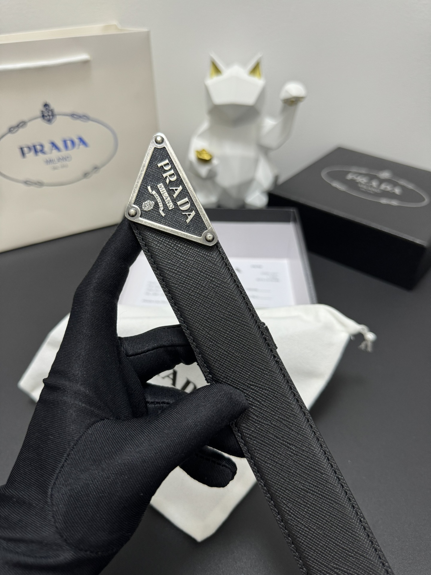 PRADA 3.5cm Cross-patterned cowhide texture quality Every detail reflects the highest taste and style The overall design adds an elegant charm A model of understated luxury Elegant and charming aura Exquisite handicraft production.