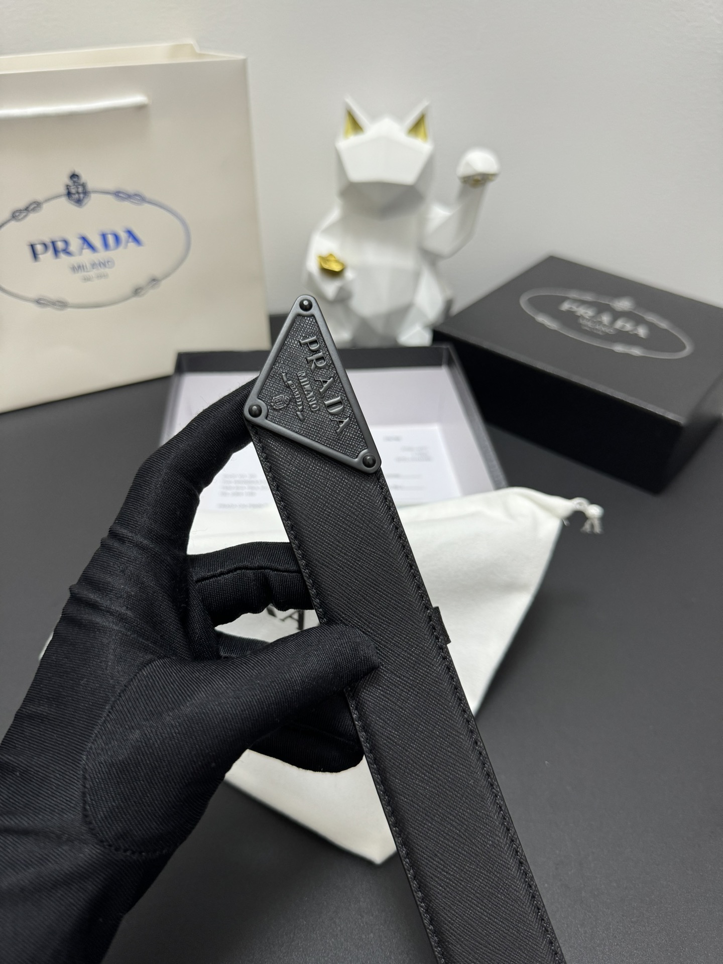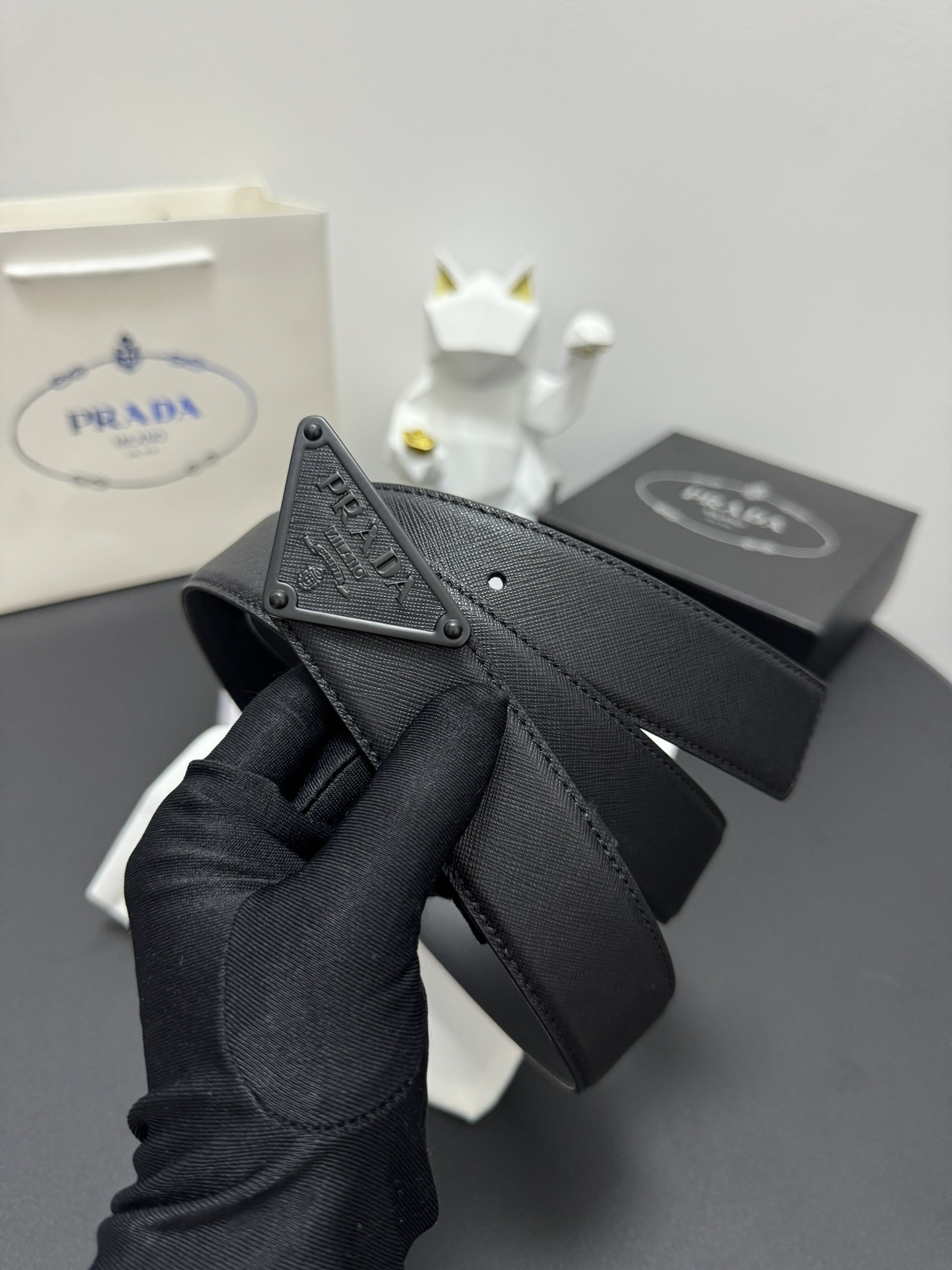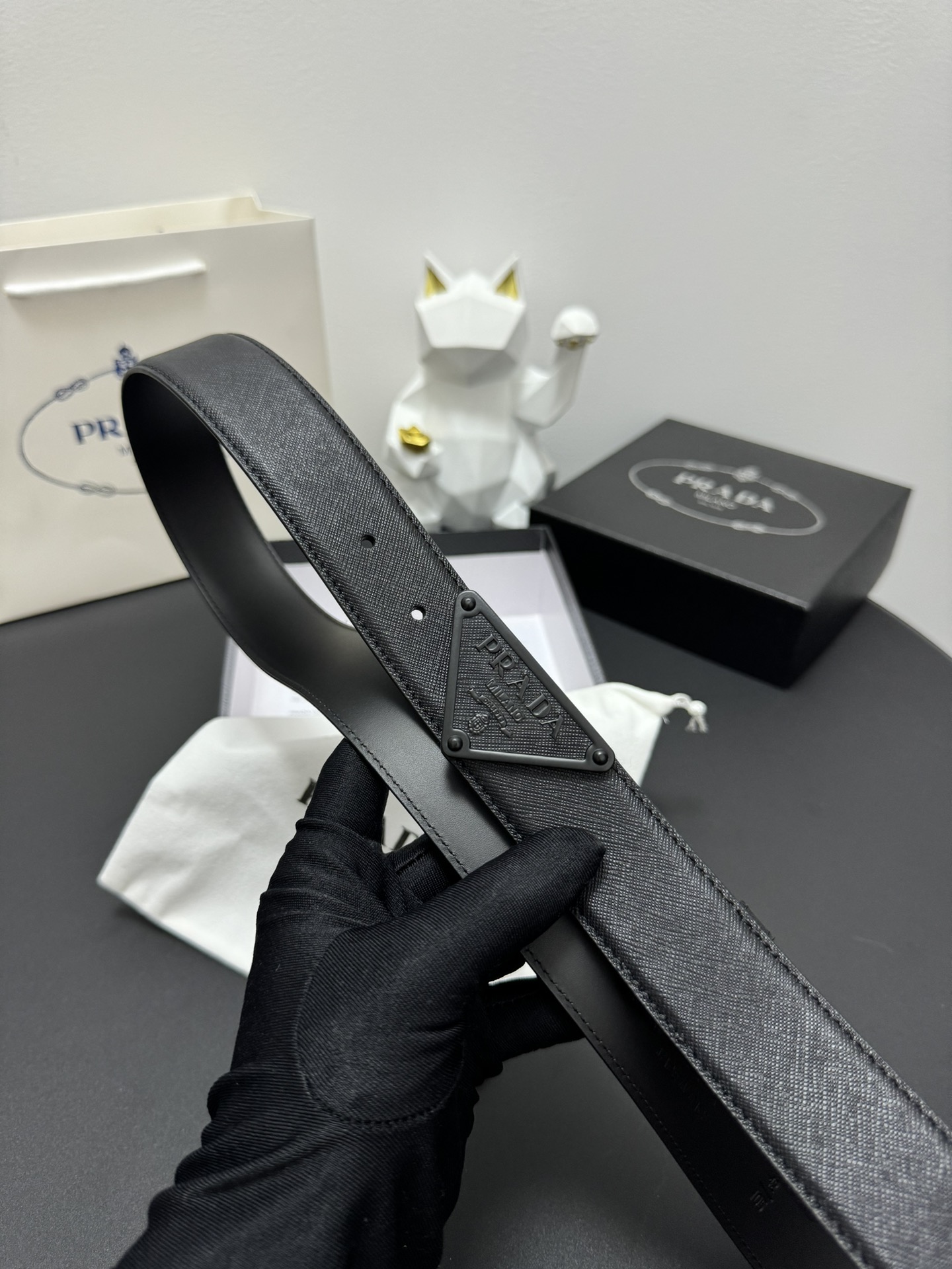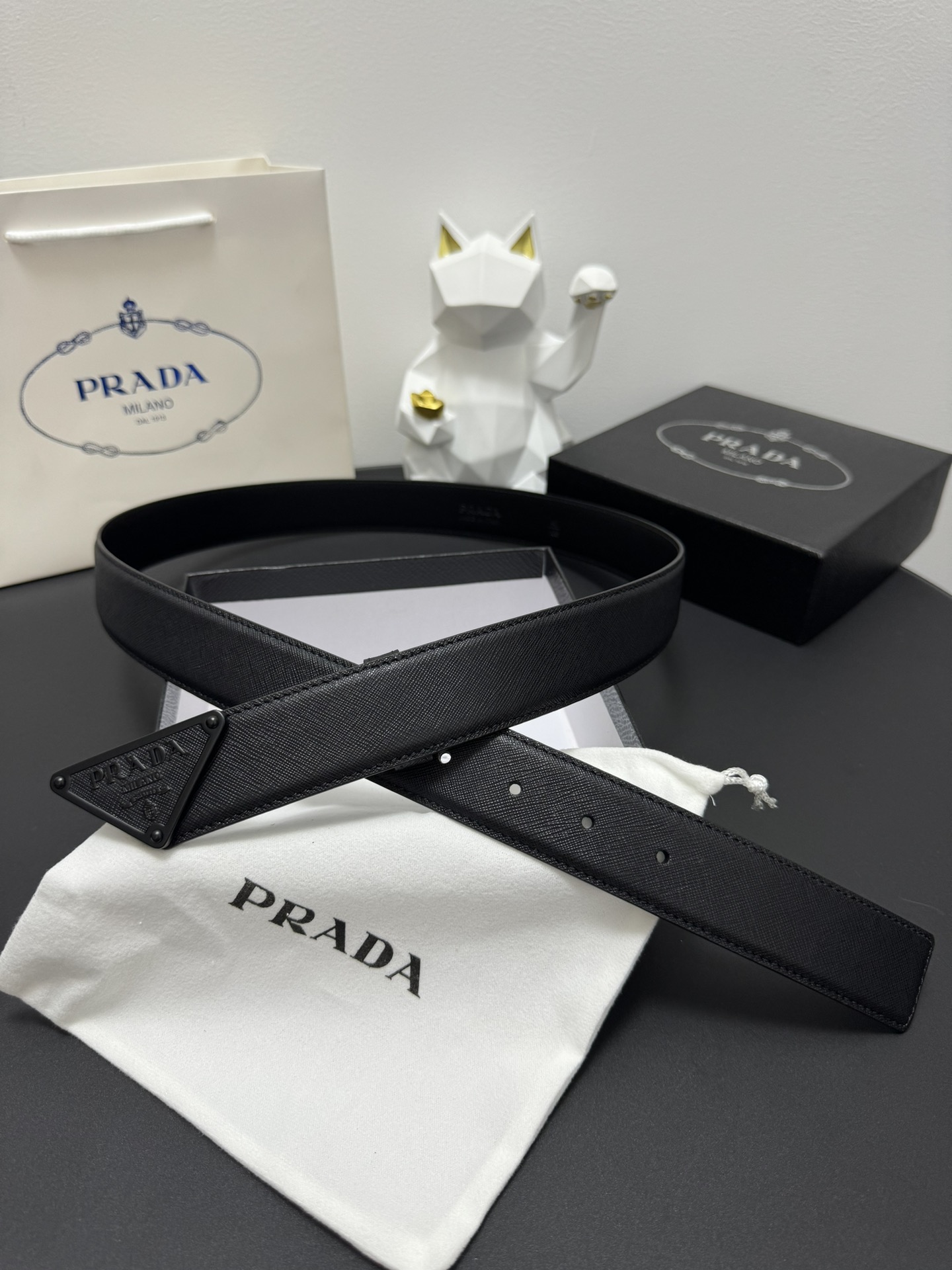PRADA 3.5cm Cross-patterned cowhide texture quality Every detail reflects the highest taste and style The overall design adds an elegant charm A model of understated luxury Elegant and charming aura Exquisite handicraft production.