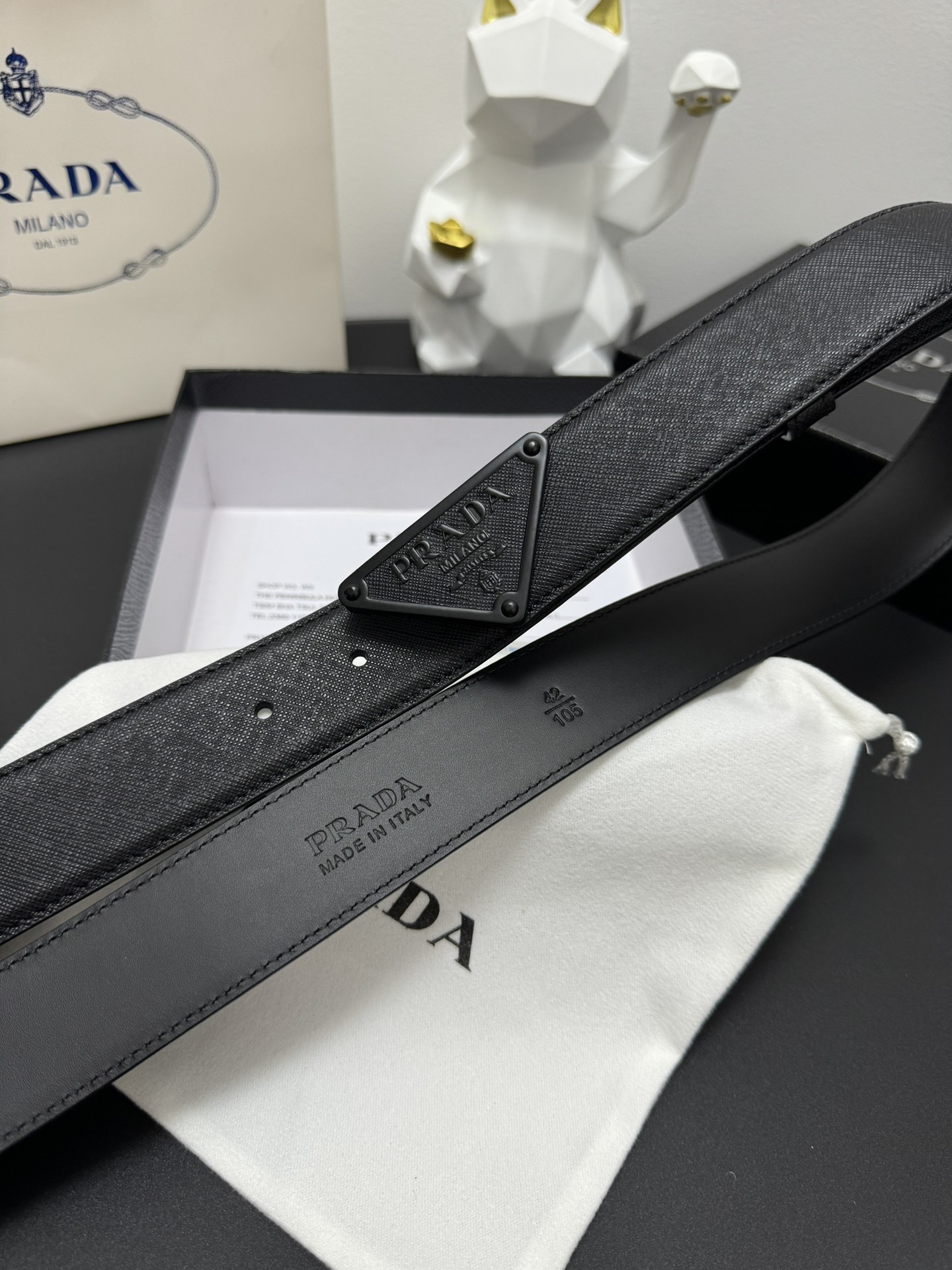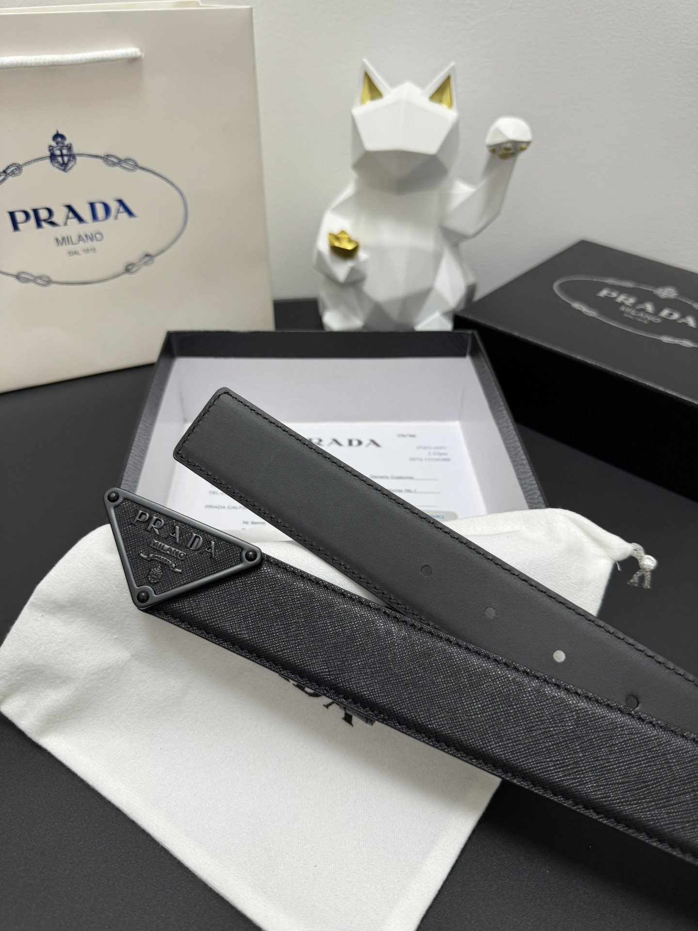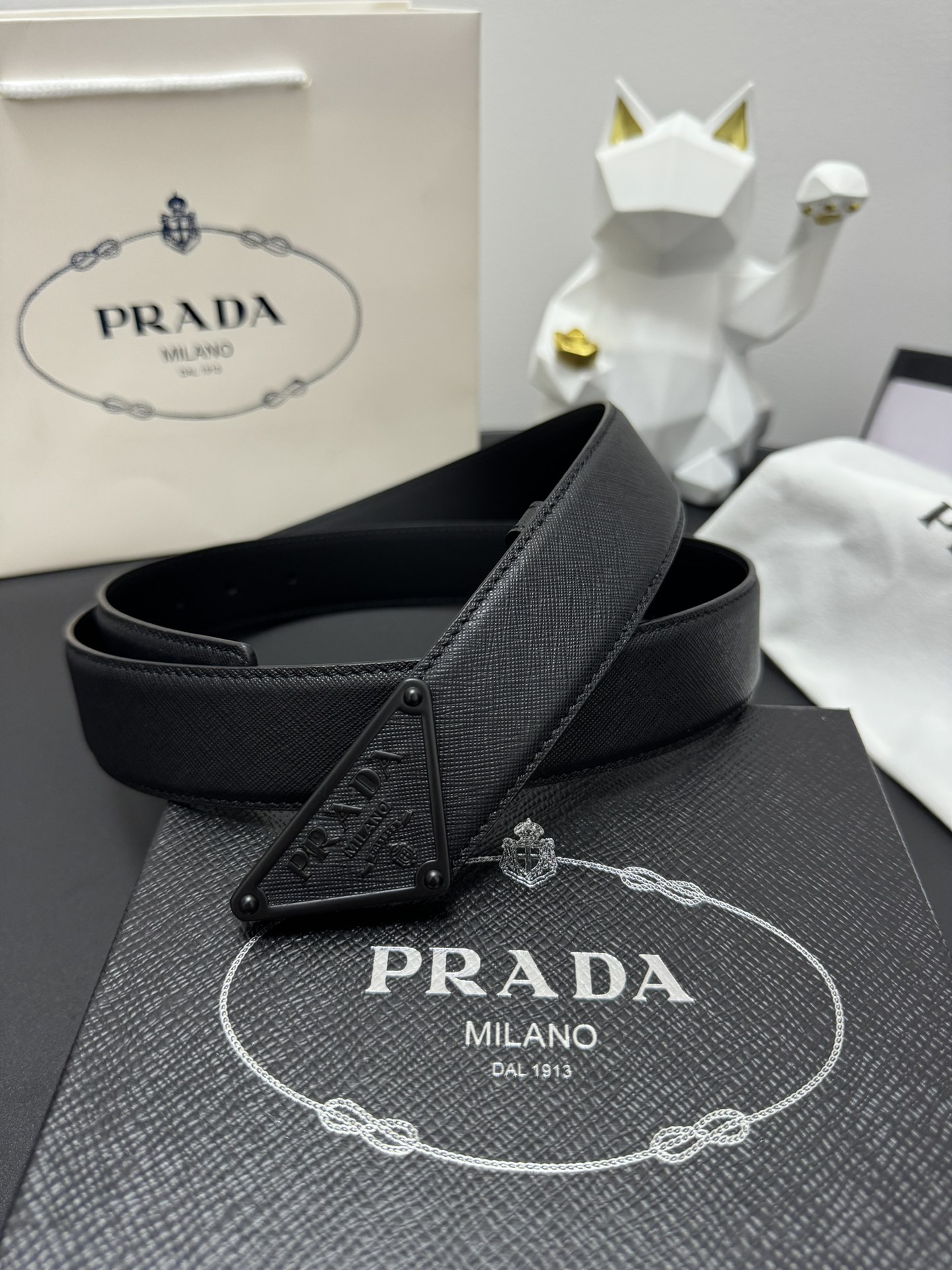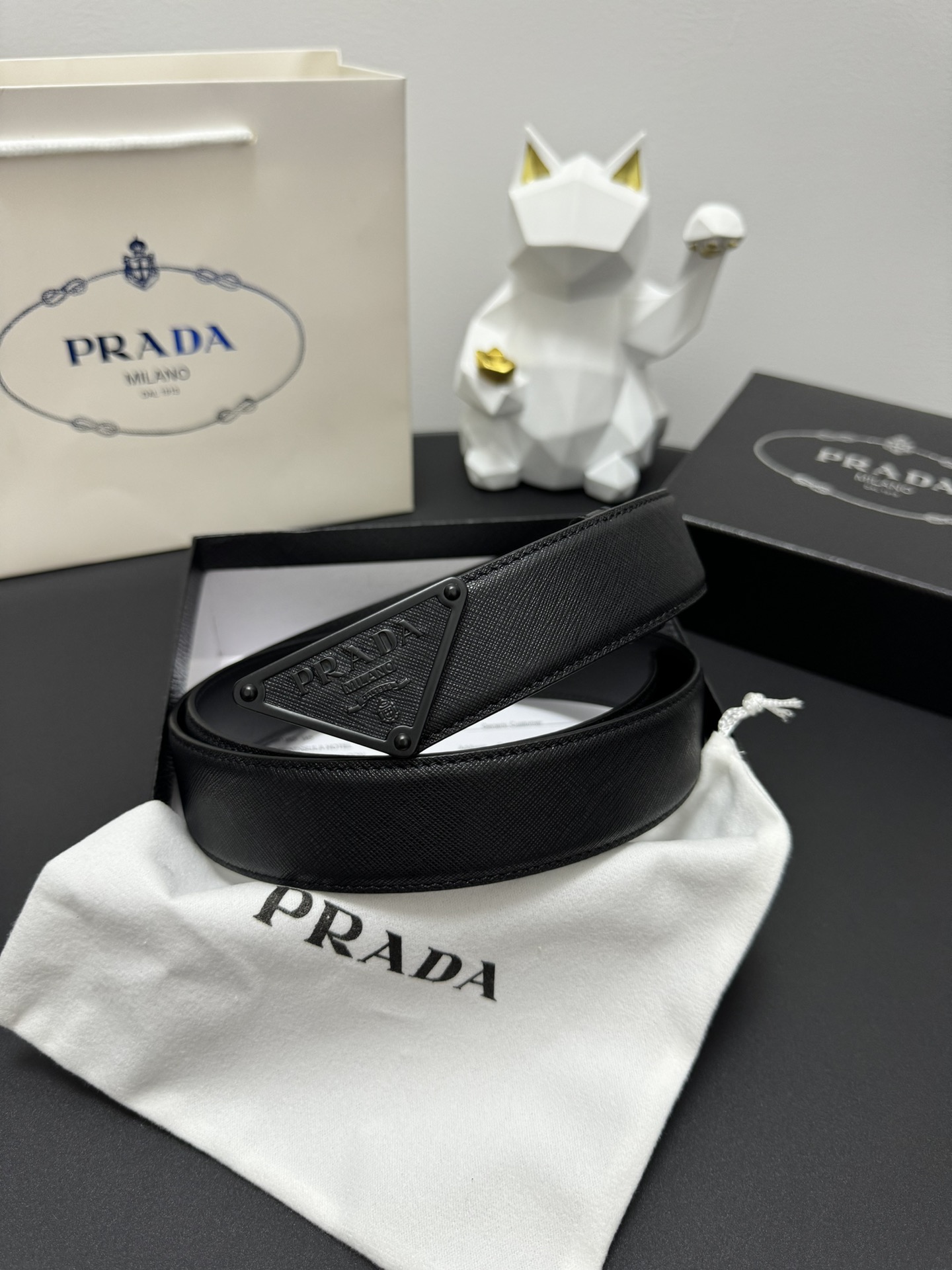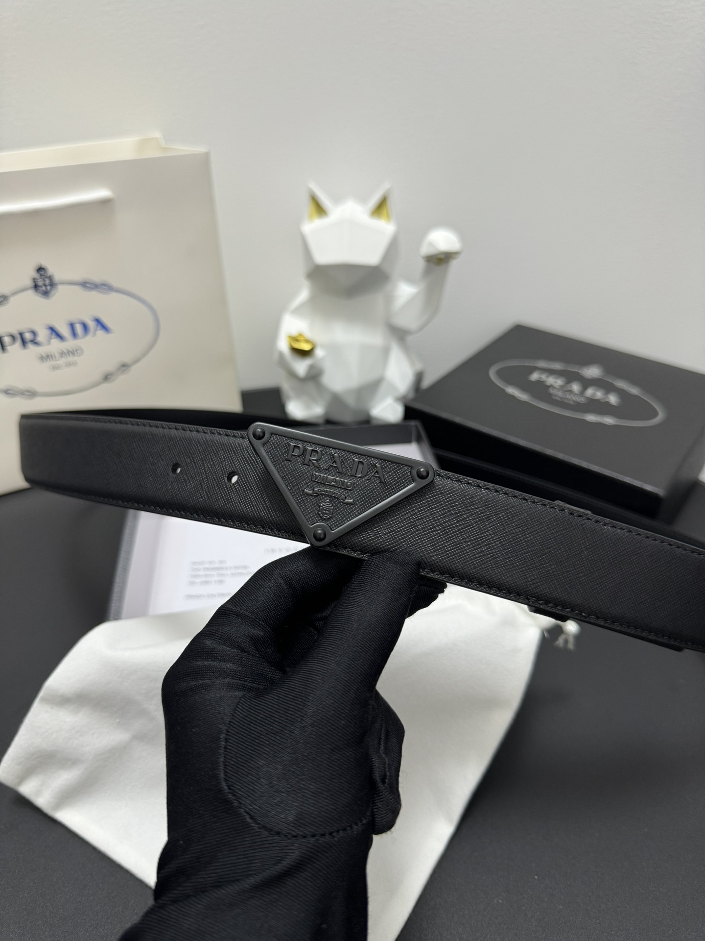 PRADA 3.5cm Cross-patterned cowhide texture quality Every detail reflects the highest taste and style The overall design adds an elegant charm A model of understated luxury Elegant and charming aura Exquisite handicraft production.