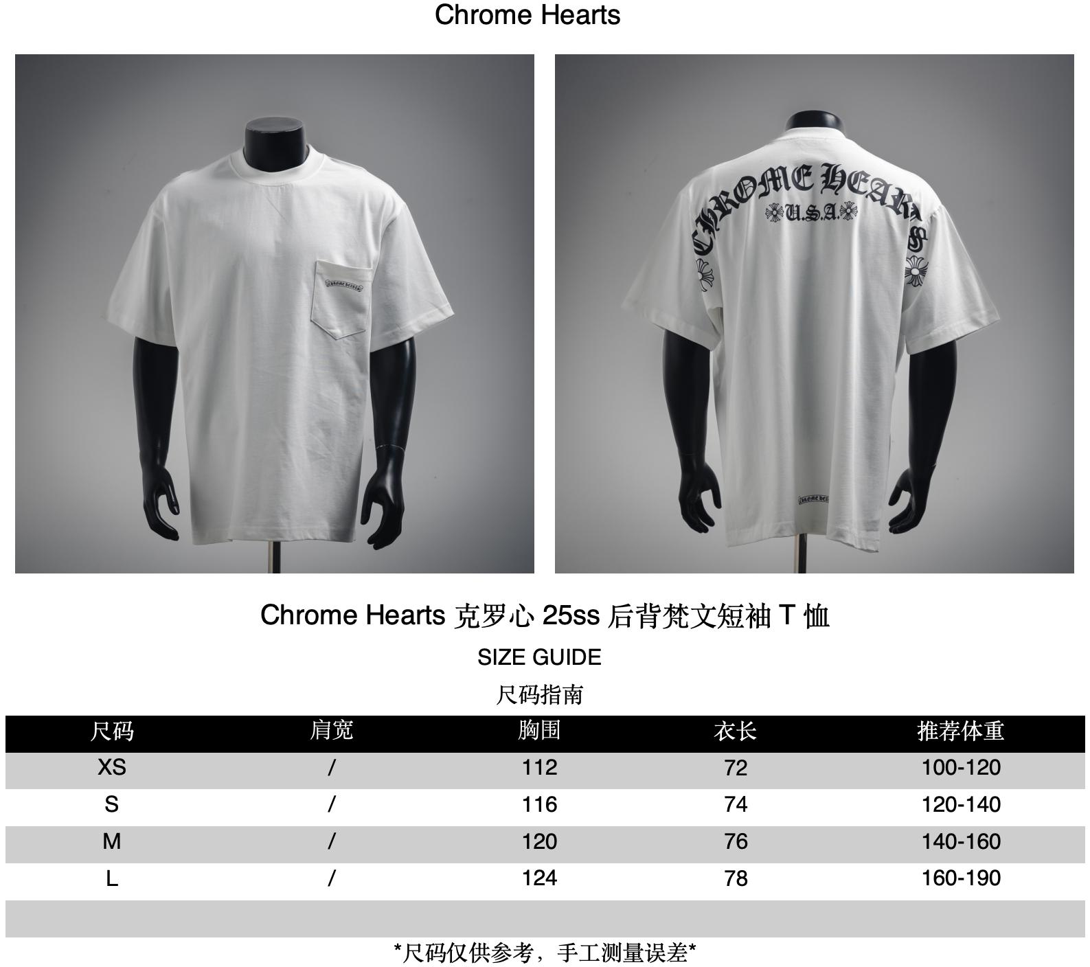 Chrome Hearts 25ss Back Sanskrit short-sleeved T-shirt size recommendation