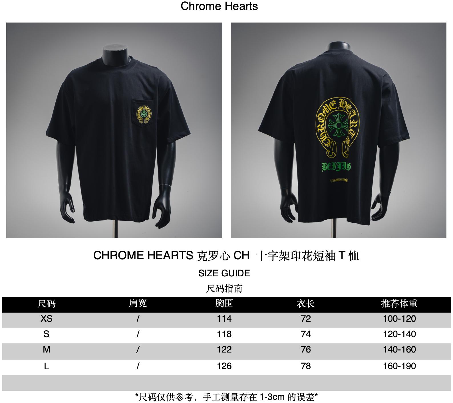 Recommended sizes of CHROME HEARTS CH Cross Print short-sleeved T-shirt