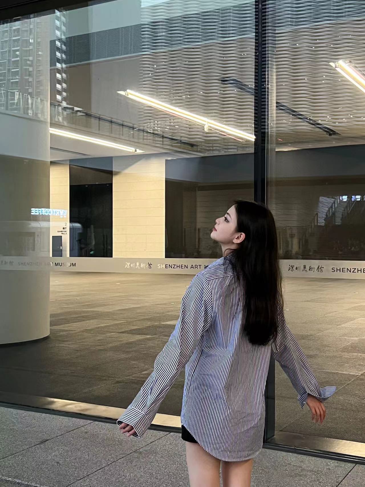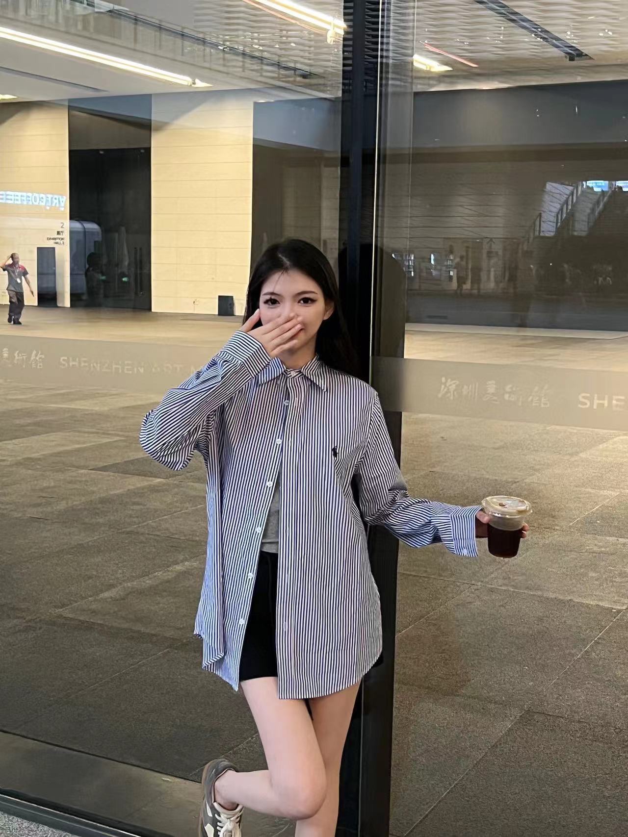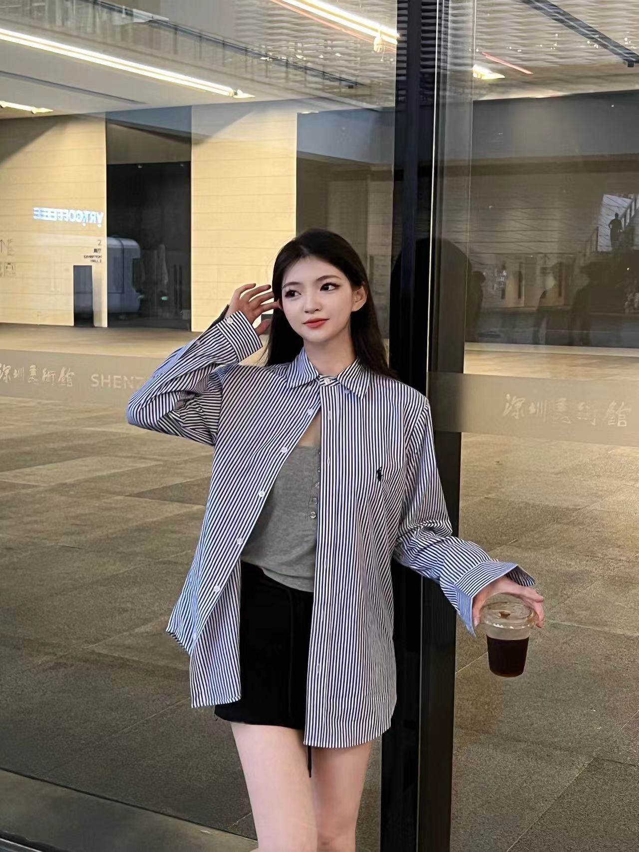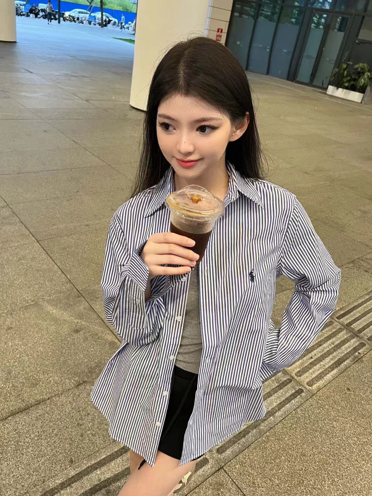 The wearing effect of Ralph Lauren/ Ralph Lauren blue and white striped small label warhorse embroidery casual shirt #
