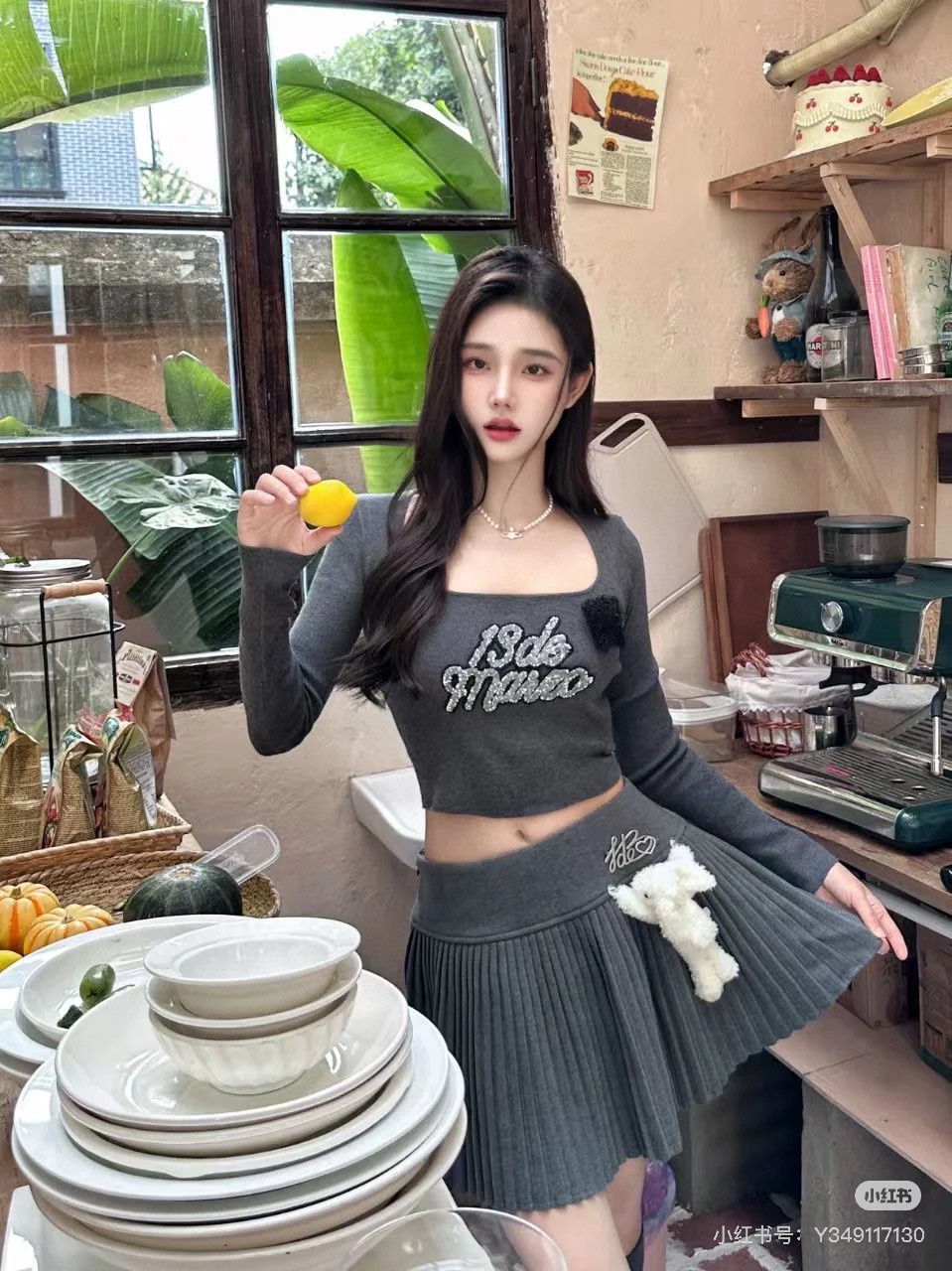 The upper body effect of the 13DE MARZO pleated skirt #