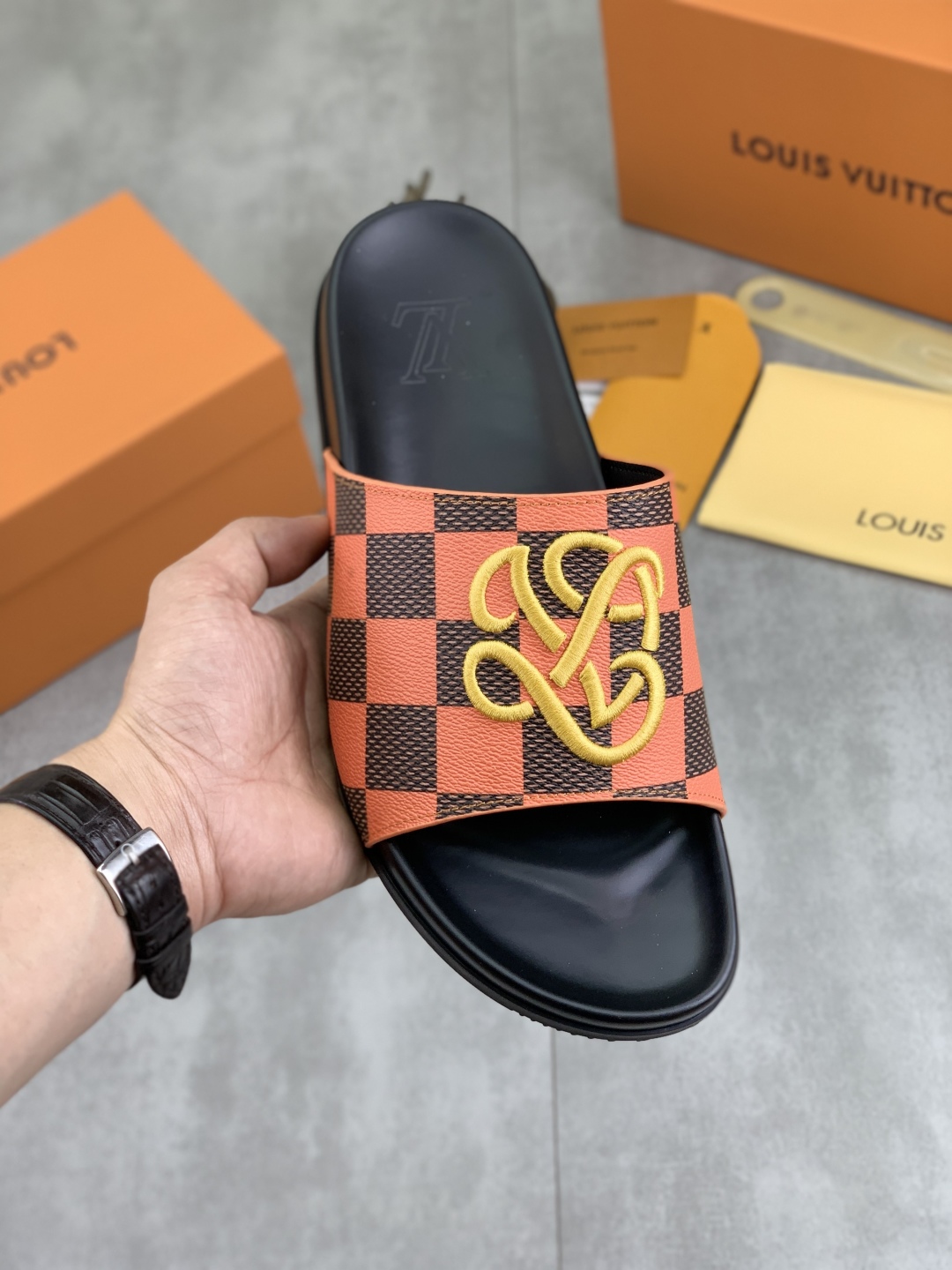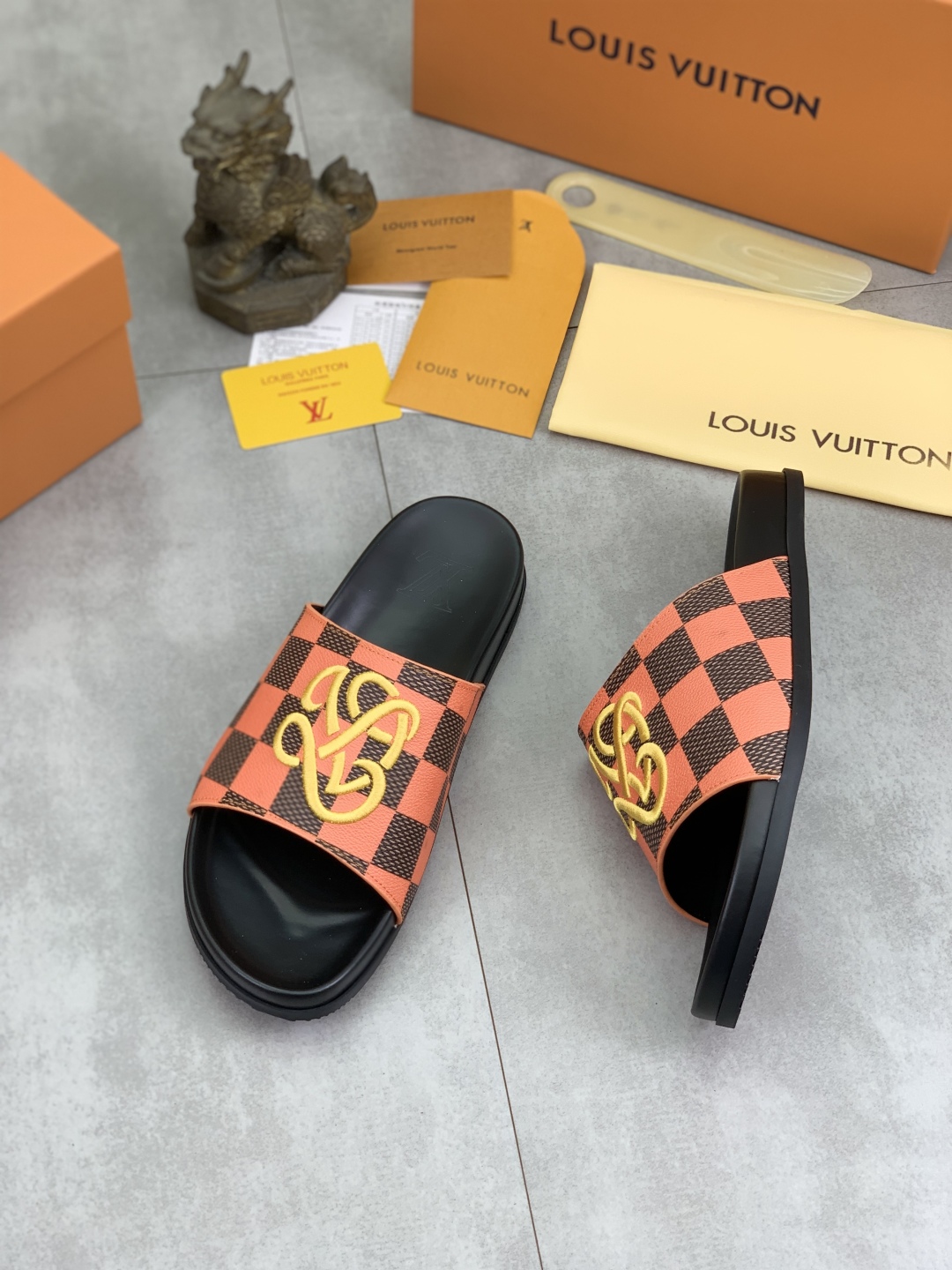 Model No. #2004???????? High quality [LOUIS VUITTON] official website bestseller Louis Vuitton LV men 's slippers on sale simultaneously! Italian imported original fabric, specially provided by the original factory. Original base size: 39-44 (custom-made for 38 and 45). A wide variety of colors to choose from