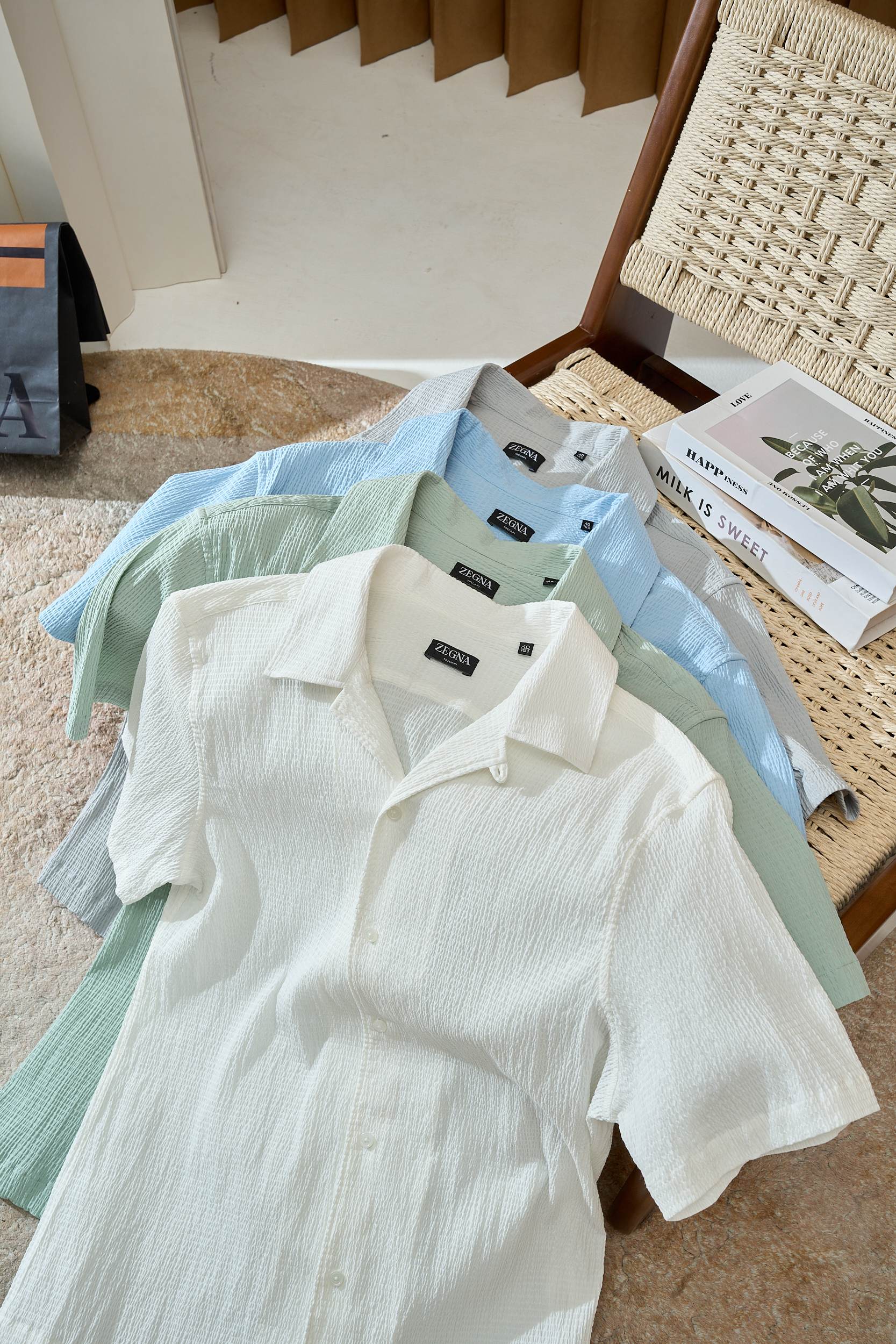 Summer sea breeze, free and stylish - Men's seeping gauze Cuban collar short-sleeved shirt as fabric breathes, making the hot summer a treat. It is made of "dancing" seeryarn fabric, with a three-dimensional texture like the waves of the sea, light, breathable and not close-fitting. The special weaving method allows air to flow freely. Even in a temperature of 35