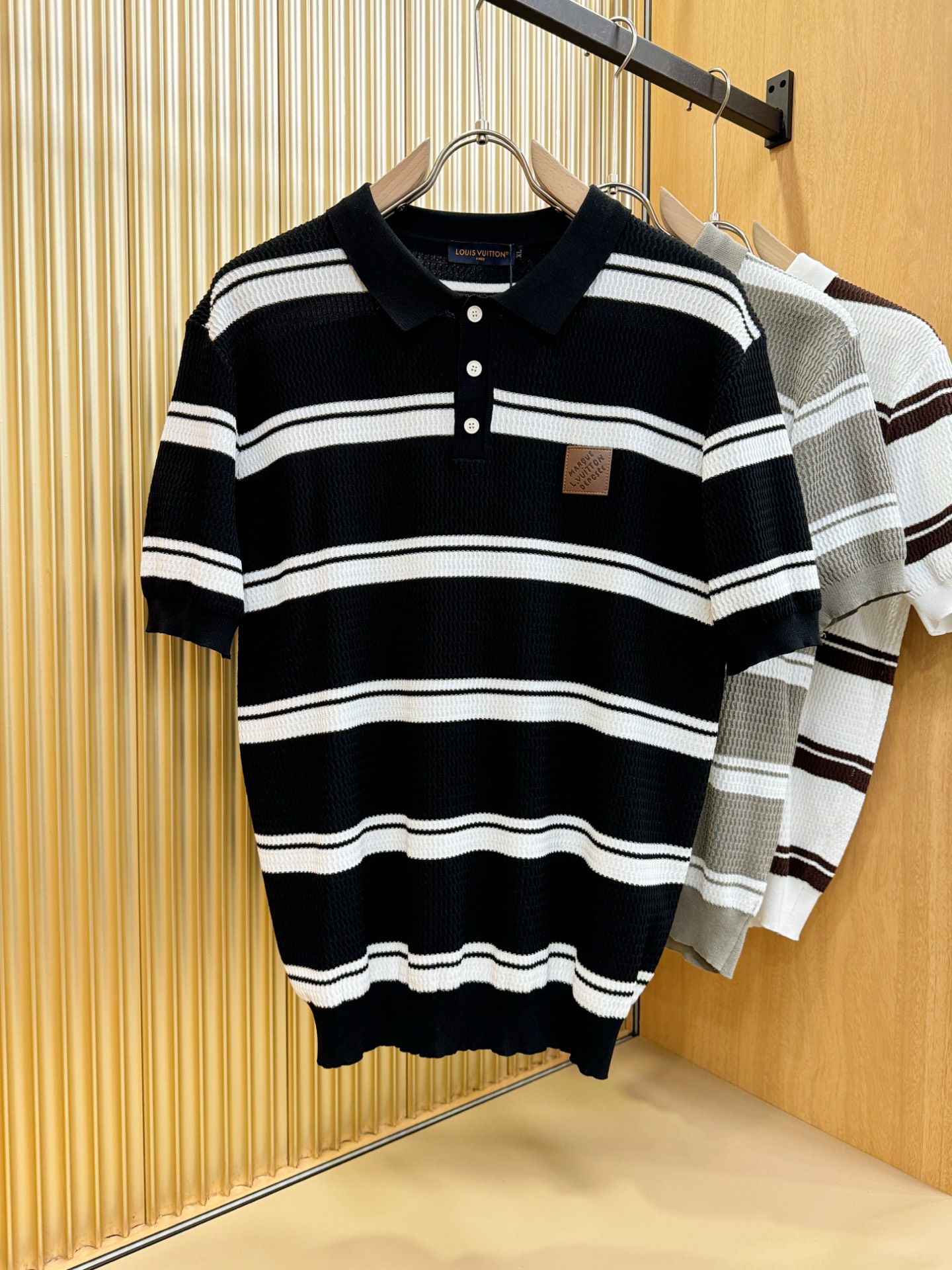 LV's Spring/Summer 2025 new knitted short-sleeved shirt, made of imported knitted fabric, has a soft touch. Top-quality imported private goods, fashionable design and trendy short-sleeved knitted sweater, without doubt luxurious quality. The wearing effect is excellent. The same style as the official website of luxury! Size: M-4XL