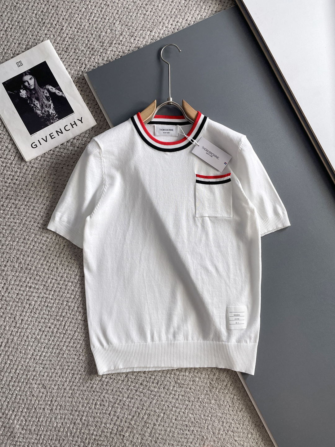 TB 2025 Early Spring counter new high-end elegant and fashionable men's custom top-of-the-line fashionable casual short-sleeved round-neck knitted sweater, a must-have item for high-end people. The original logo design makes it more luxurious and noble. The seamless perfect cut makes it comfortable, elegant and high-end to wear. The hand feel is very smooth and soft. It can be easily worn for business, fashion and casual wear, and the age range is very wide. In line with the practical dressing customs of men, the preferred size for urban seasoned fashionistas is M-3XL.