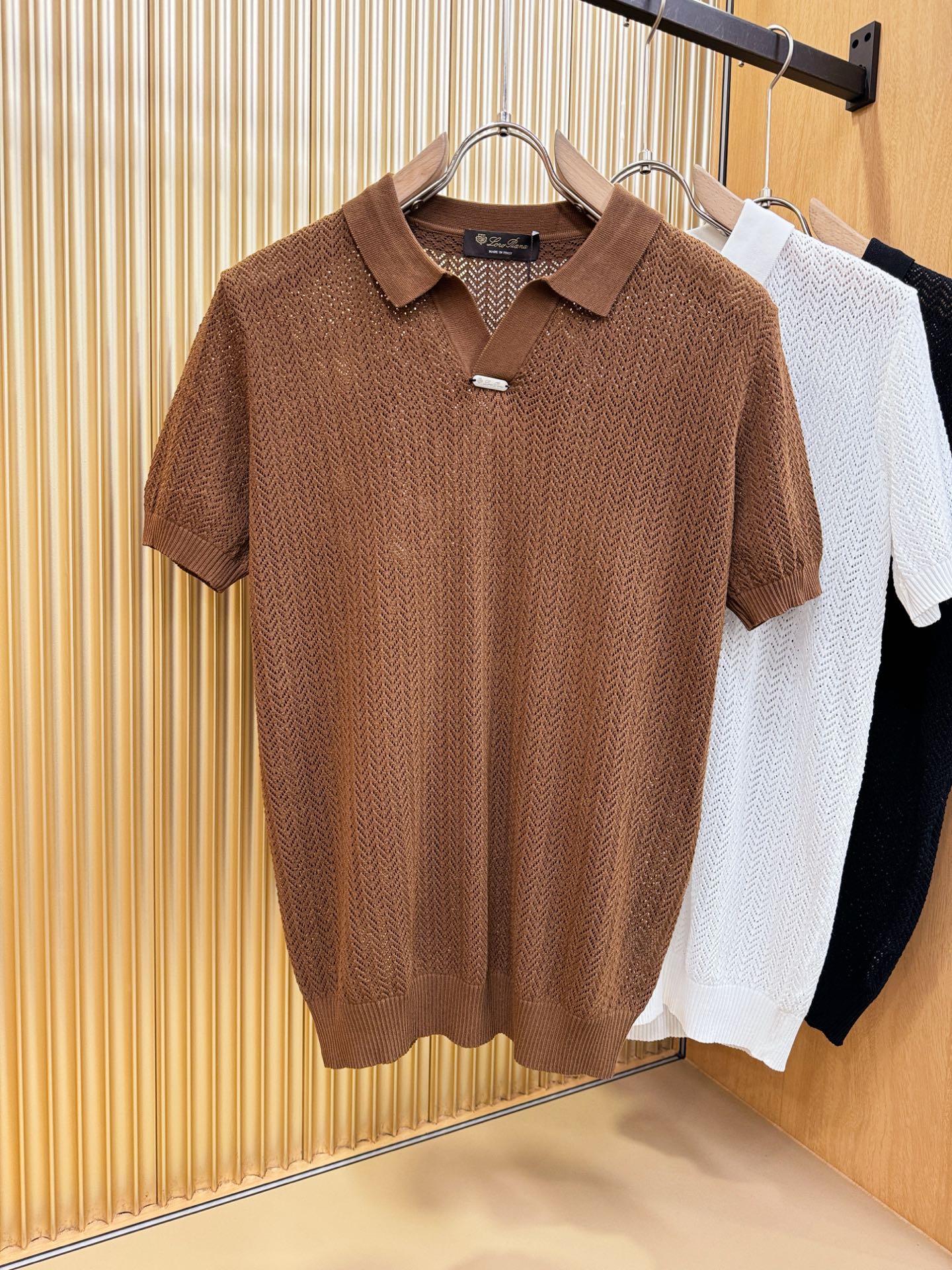 Loro Piana's new Spring/Summer 2025 knitted short-sleeved shirt is made of imported knitted fabric and has a soft touch. Top-quality imported private goods, fashionable design and trendy short-sleeved knitted sweater, without doubt luxurious quality. The wearing effect is excellent. The same style as the official website of luxury! Size: M-4XL
