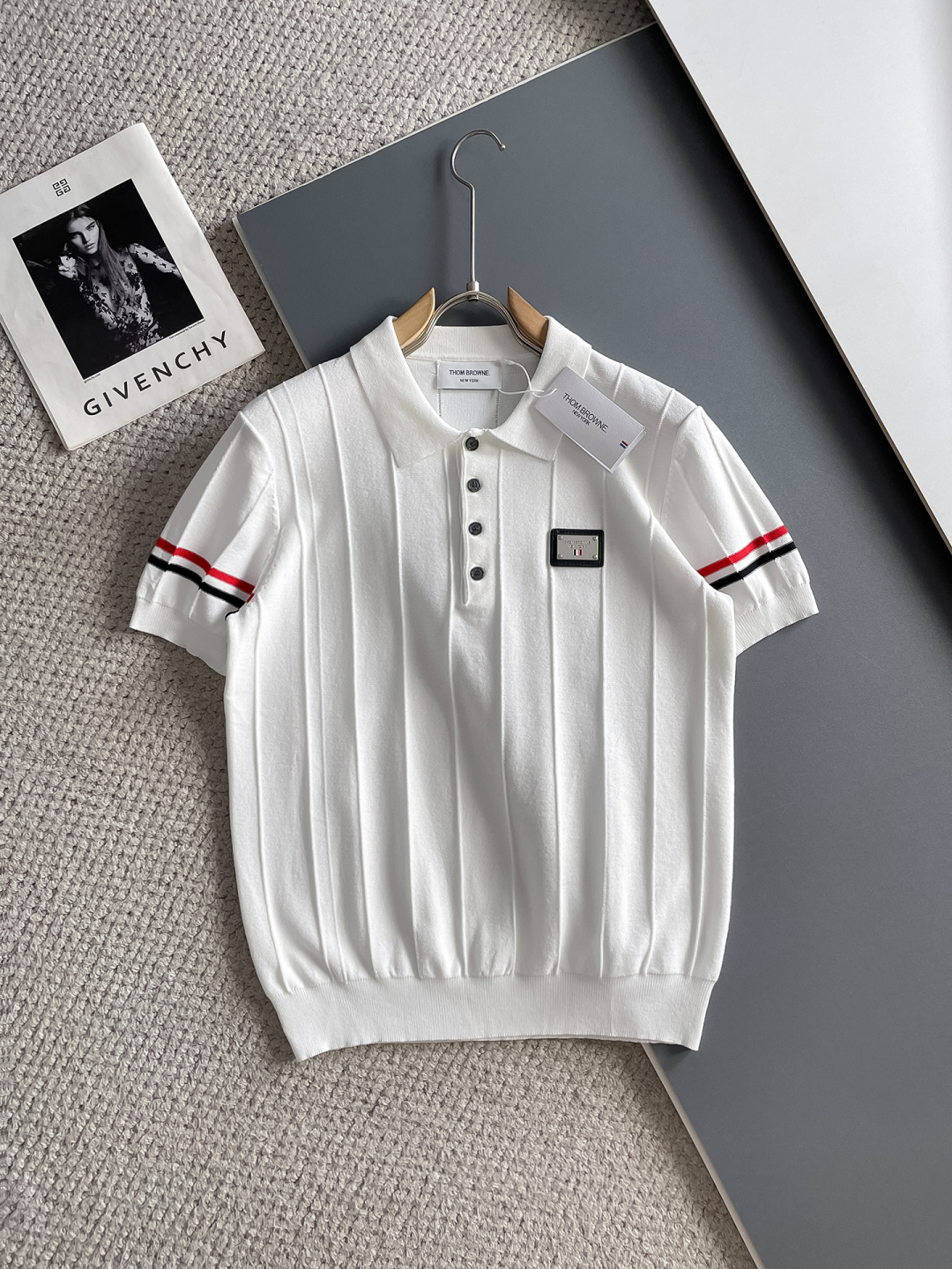 TB Spring/Summer 2025 new simple and versatile letter embroidered top-quality imported private knitwear polo short-sleeved shirt, high-end heavy industry jacquard short-sleeved knitwear. The counter style is fashionable yet luxurious, and the quality is beyond doubt. The wearing effect is excellent. The same size as the official website of luxury is M-xxxl