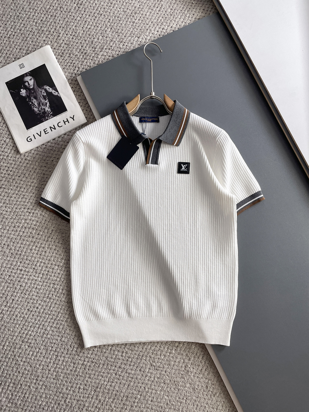 LV's new Spring/Summer 2025 collection features a simple and versatile design with lettered, top-quality imported private knitwear polo short-sleeved shirt. This high-end heavy jacquard short-sleeved knitted sweater is fashionable yet luxurious in the counter style. The quality is beyond doubt and the wearing effect is excellent. The same size as the official website's counter is M-xxxl