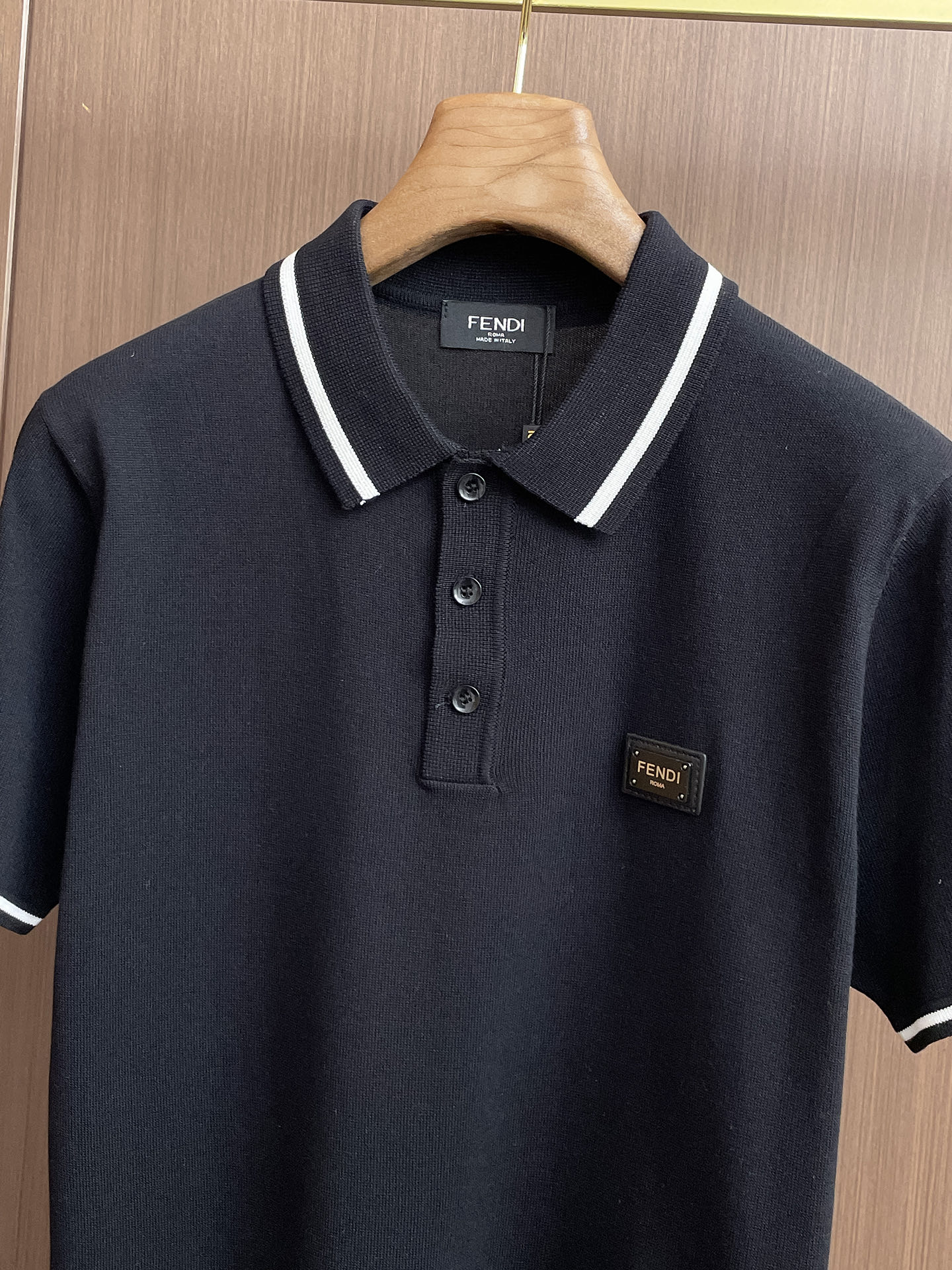 Fen ' '2025 Spring/Summer new knitted short-sleeved shirt, made of imported knitted fabric, soft to the touch. Top-quality imported private goods, a trendy short-sleeved knitted sweater with luxurious quality that is beyond doubt. The wearing effect is excellent. The same style as the official website of luxury! Size: M-3XL