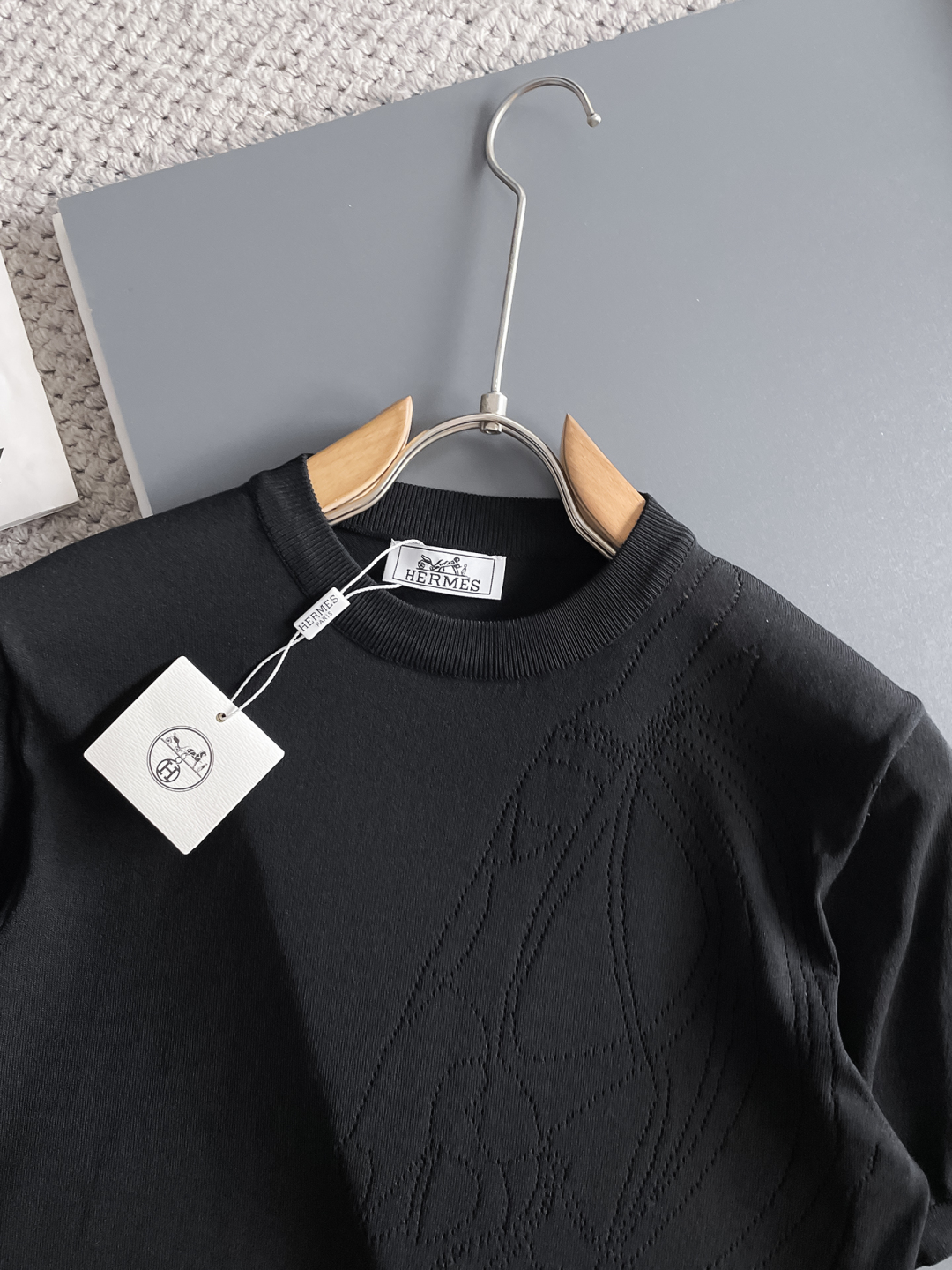 Hermes' new high-end, elegant and fashionable men's custom top-of-the-line casual short-sleeved round-neck knitted sweater for early spring 2025 is a must-have item for high-end individuals. The original logo design highlights a luxurious and noble style. The seamless and perfect cut makes it comfortable, elegant and high-end to wear. The hand feel is very smooth and soft. It can be easily worn for business, fashion and casual wear, and the age range is very wide. In line with the practical dressing customs of men, the preferred size for urban seasoned fashionistas is M-3XL.