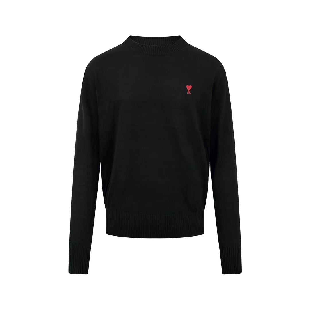 . Ami Paris Heart-embroidered knitted sweater The custom-woven luxurious and extremely fine Merino wool is soft, delicate, comfortable and skin-friendly. With a deep black as the main color, a bright red heart on the chest stands out, adding a touch of liveliness and playfulness. The brand has a high recognition rate. It is the ultimate simplification of color and conveys the love and persistence for life. Encountering the ultimate simplicity, it is undoubtedly the versatile king Process 1: Utilizing imported machine embroidery techniques, advanced computer control systems and precise mechanical components, Ami heart-shaped embroidery is achieved with high precision, smooth and delicate lines Process 2: Garment washing and softening deodorization process: Through professional washing equipment and specific detergents, clothes are deeply cleaned and deodorized to improve their hand feel and appearance Auxiliary materials: Customized 1:1 Ami trademark Style: Fitted style Size: S M L XL Exclusive supply
