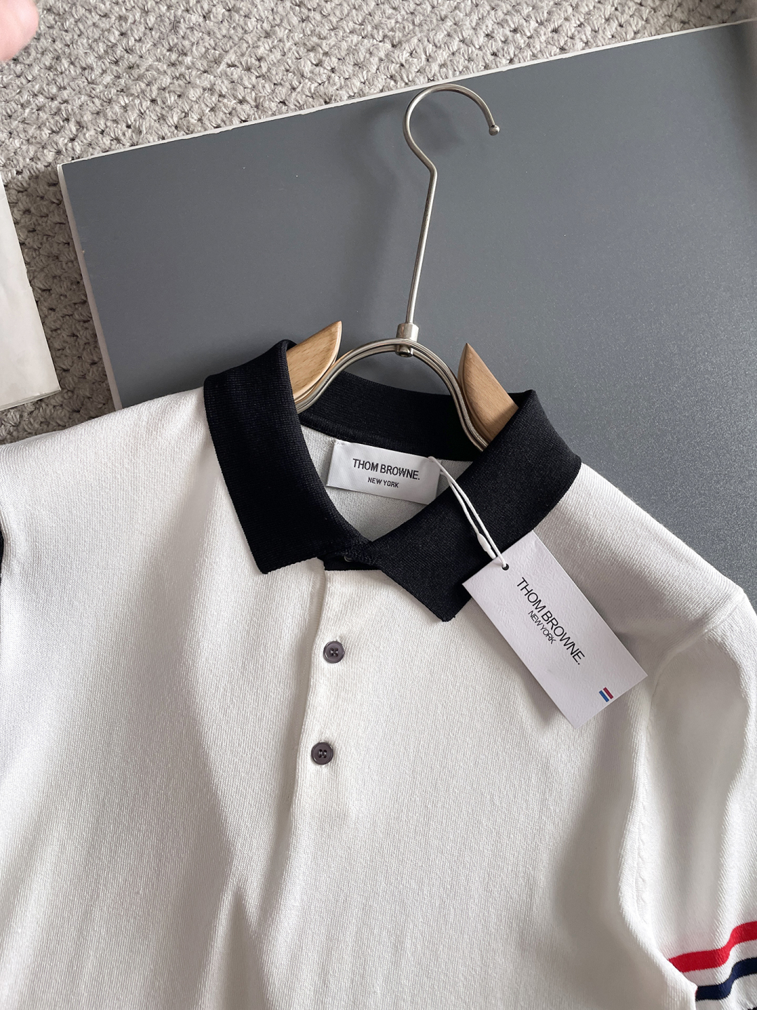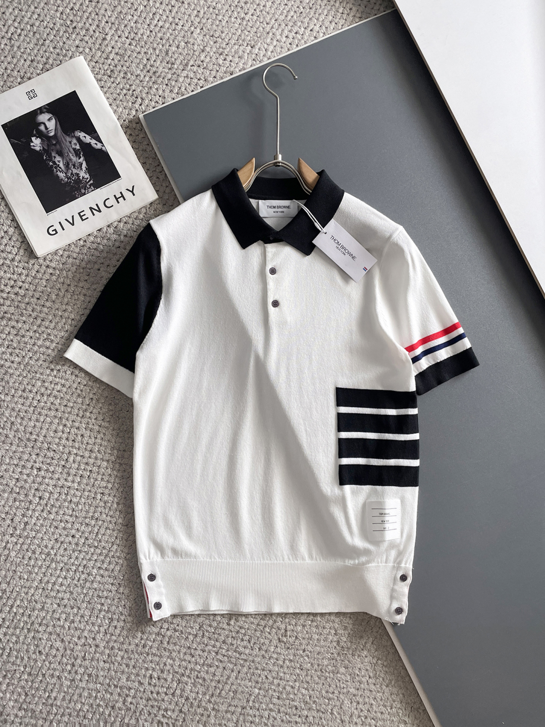TB Spring/Summer 2025 new simple and versatile letter embroidered top-quality imported private knitwear polo short-sleeved shirt, high-end heavy industry jacquard short-sleeved knitwear. The counter style is fashionable yet luxurious, and the quality is beyond doubt. The wearing effect is excellent. The same size as the official website of luxury is M-xxxl