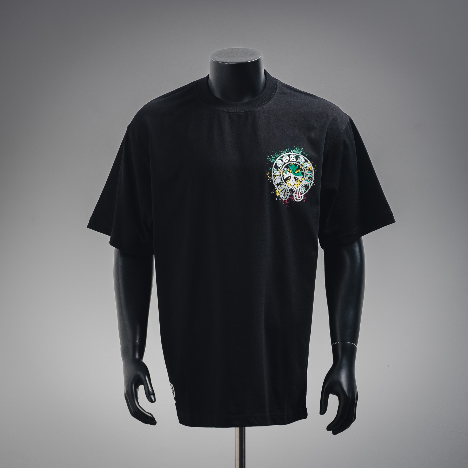 In-stock fine repair with year-round after-sales service CHROME HEARTS CH spray-printed short-sleeved T-shirt The fabric is made of 280-gram combed cotton, with custom-made 32-count 1*1 thread. The finished garment undergoes two washes. The fabric is comfortable and skin-friendly without any perceptible sensation. It is a custom-dyed fabric with high textile density, good drape, and is not prone to deformation. The thick texture combined with the tight spinning process does not affect the breathability of the fabric. The color saturation is very high. It is printed with imported digital direct printing technology, making it a versatile and good-looking short-sleeved piece. The loose fit helps to hide and slim the body, is suitable for both men and women, and comes with all three standards Color: Black - white Size: XS-L
