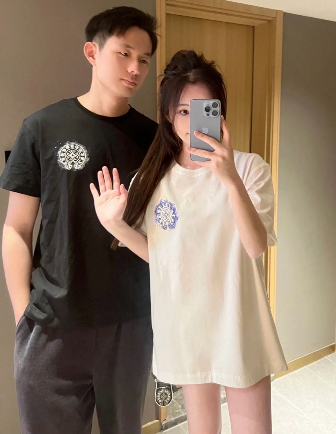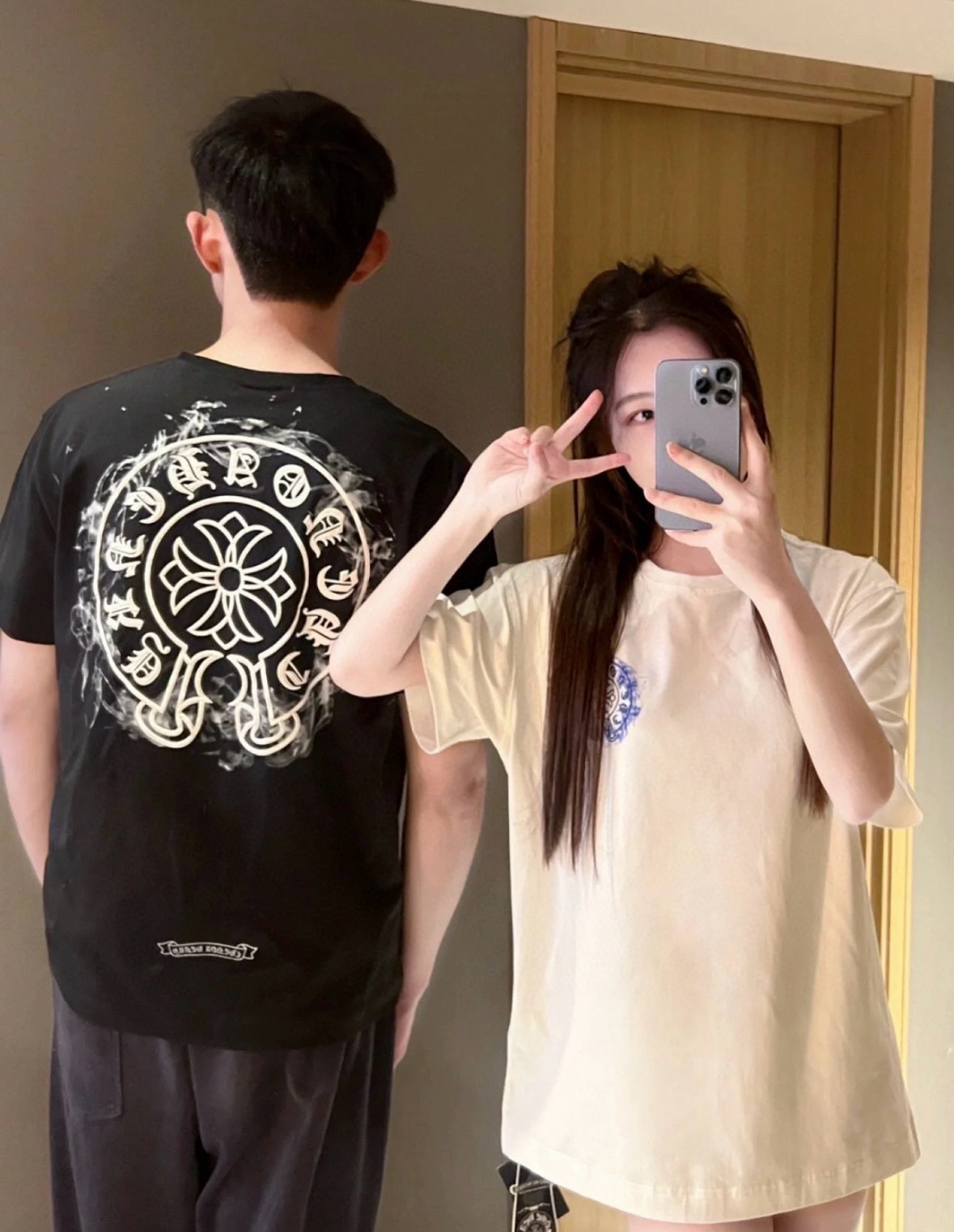 Chrome hearts CH/ Chrome Hearts 25ss logo smoke print logo round neck short-sleeved top set