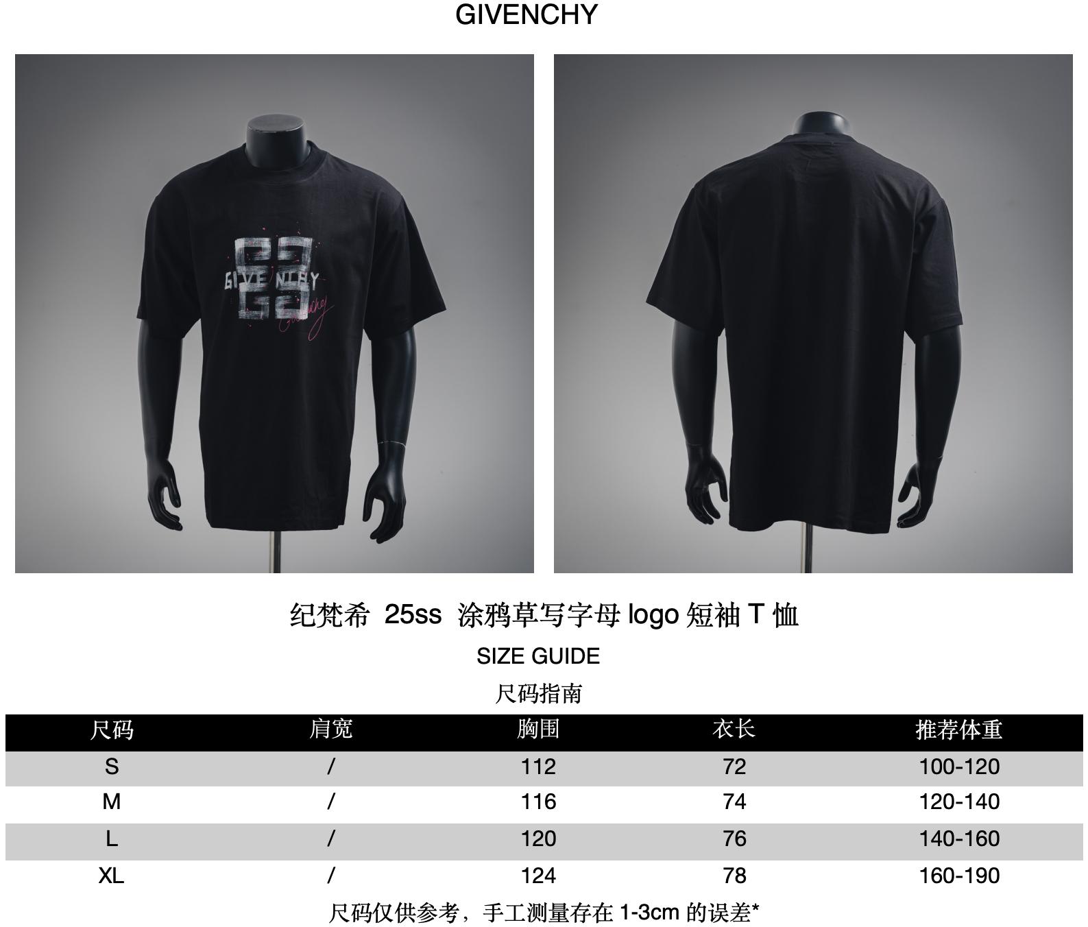 GIVENCHY/ Givenchy 25ss Graffiti Cursive letter logo short-sleeved T-shirt size recommendation