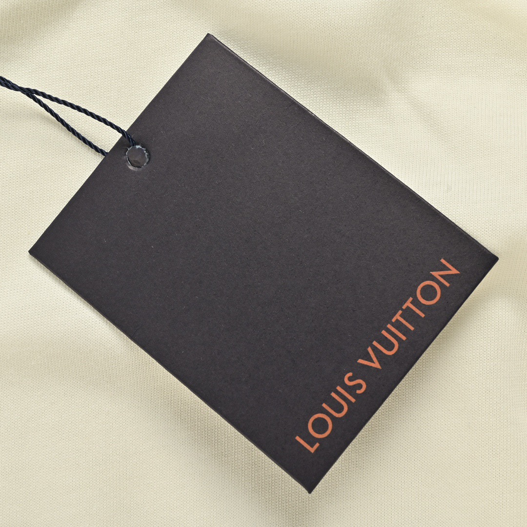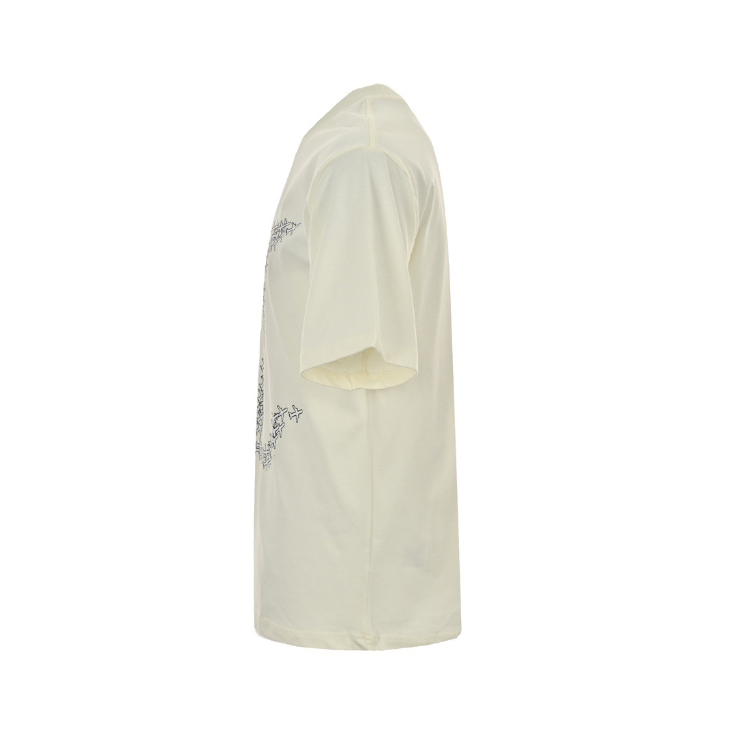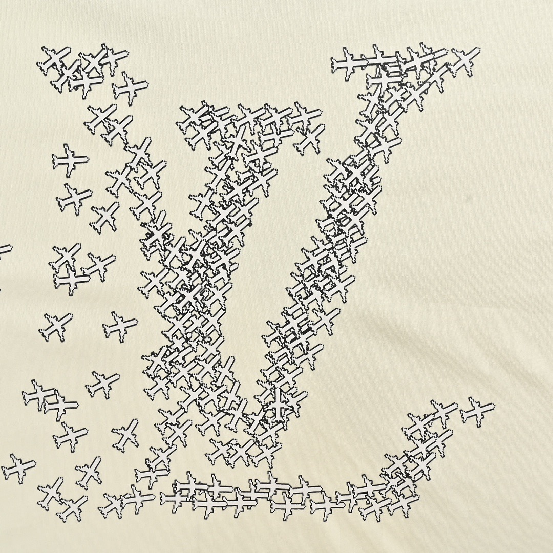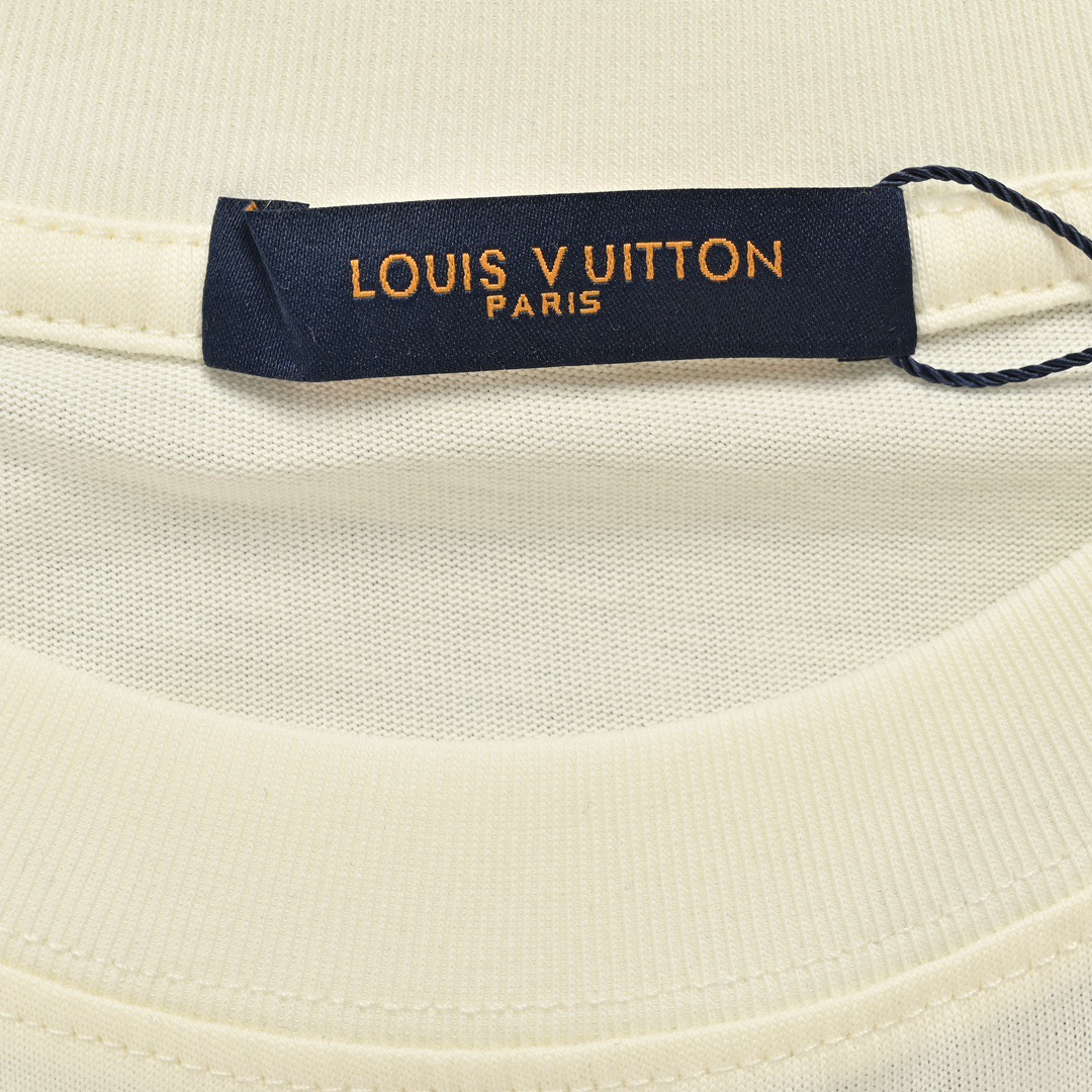 In-stock fine repair with year-round after-sales service Louis Vuitton/ Louis Vuitton small airplane letter logo printed short-sleeved shirt The fabric is made of 32-count plain weave with fixed weaving and dyeing, paired with 1*1 root single-yarn combed cotton ribbed fabric. It has a 230g linen and cotton feel. The off-white color must be fixed dyed, not the pure white available on the market. The small aircraft is not simply offset printed. It has three layers of screen plates, and the screen plate positioning is very precise. Workers must brush it thin; otherwise, it will be very thick and have a poor texture. The sleeves are large and have splicing. The front and left sleeve processes are screen plate printing. The sleeves are made of active and environmentally friendly oil-based paste. The sleeves are large and spliced, with exposed four-line edge trims. The sewing method is also different from that of ordinary short sleeves. First, the round sleeves are sewn flat, and then the three-line edge trims are made. The edge trims are directly exposed outside (all the lines of ordinary short sleeves are on the bottom surface). The back is molded with PVC high-density twill fabric composite stamps. All auxiliary materials are molded separately. All the small airplane prints are counterpoint prints. When placed together with the original version, they are all in the same position. This is a top-quality purchase version. You can sell it freely without fear of quality pressure Size: XS-L