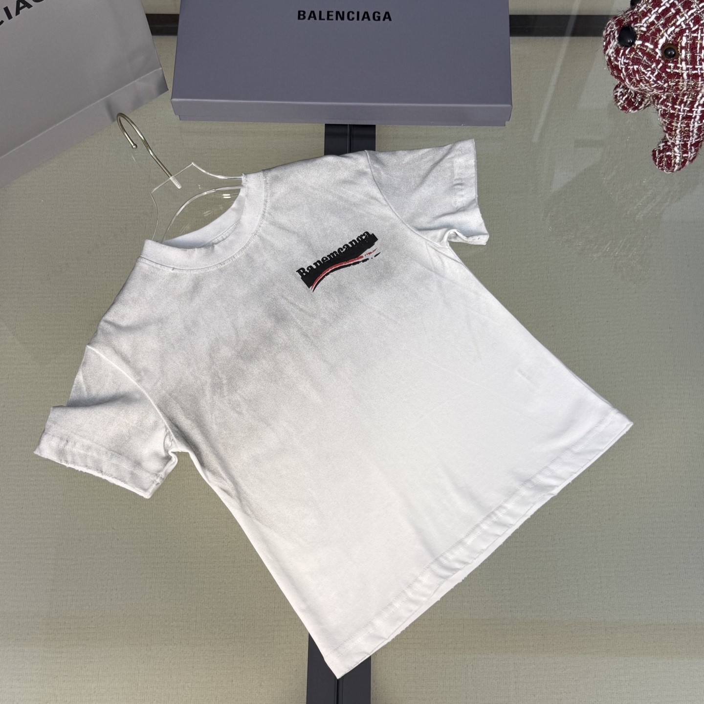 Balenciaga, high-end children's wear, private T-shirt, rendering the gradient restoring ancient ways, printing process T-shirt wash water ? hand torn, upper body comfortable, good-looking, code number: 100/110/120/130/140/150 cm