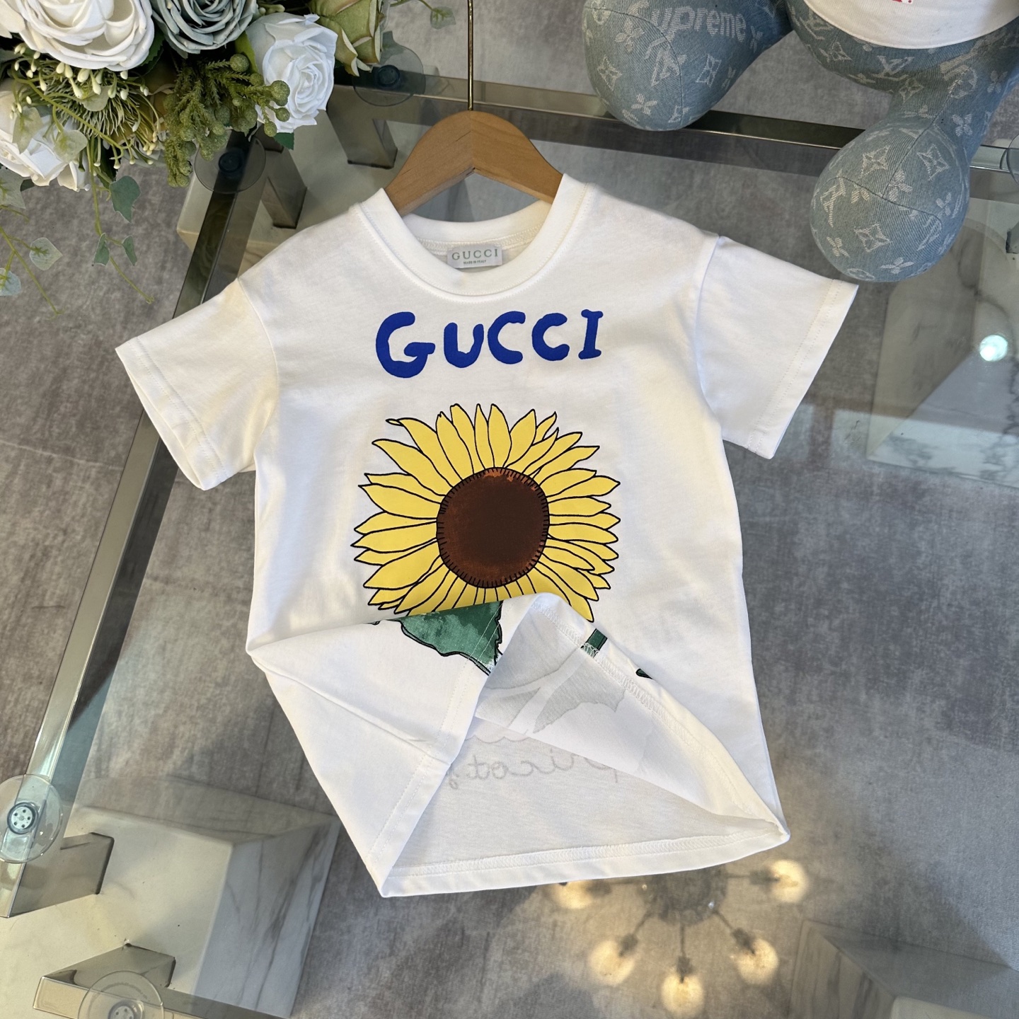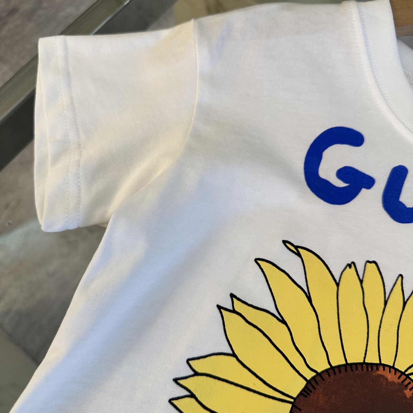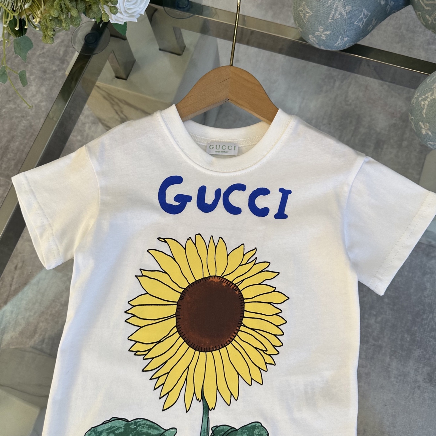 Gucci Gucci, high-end children's wear, private T-shirt, sunflower logo design before and after printing, cotton fabrics, upper body comfortable, good-looking, code number: 100/110/120/130/140/150/160 cm