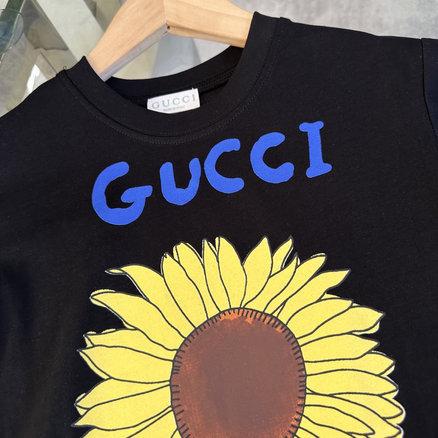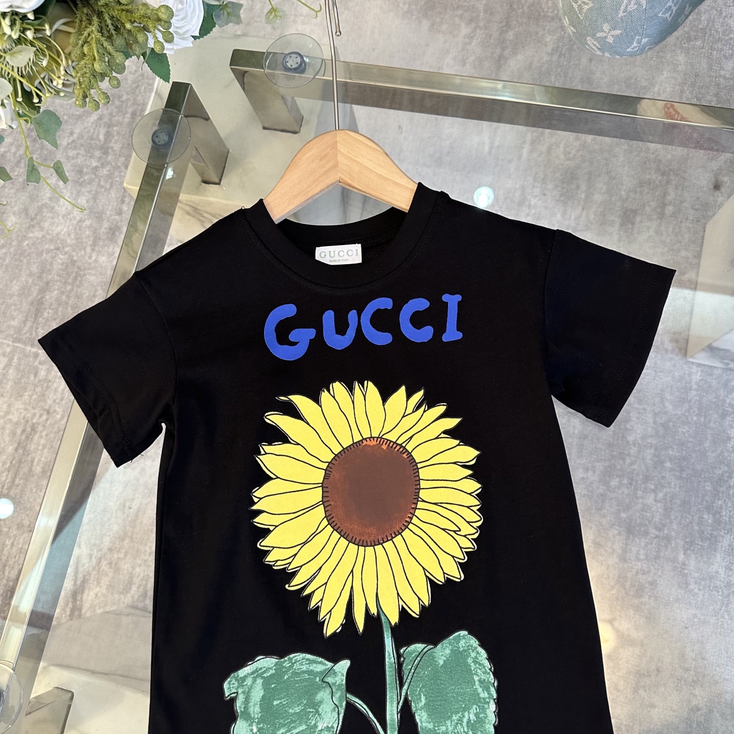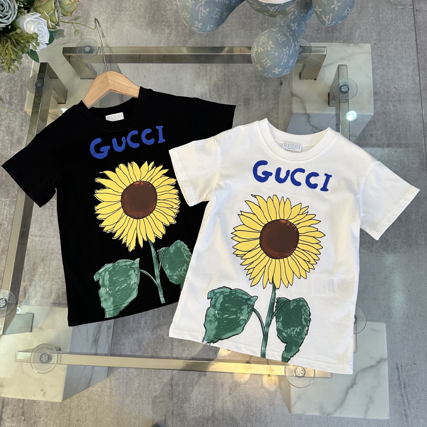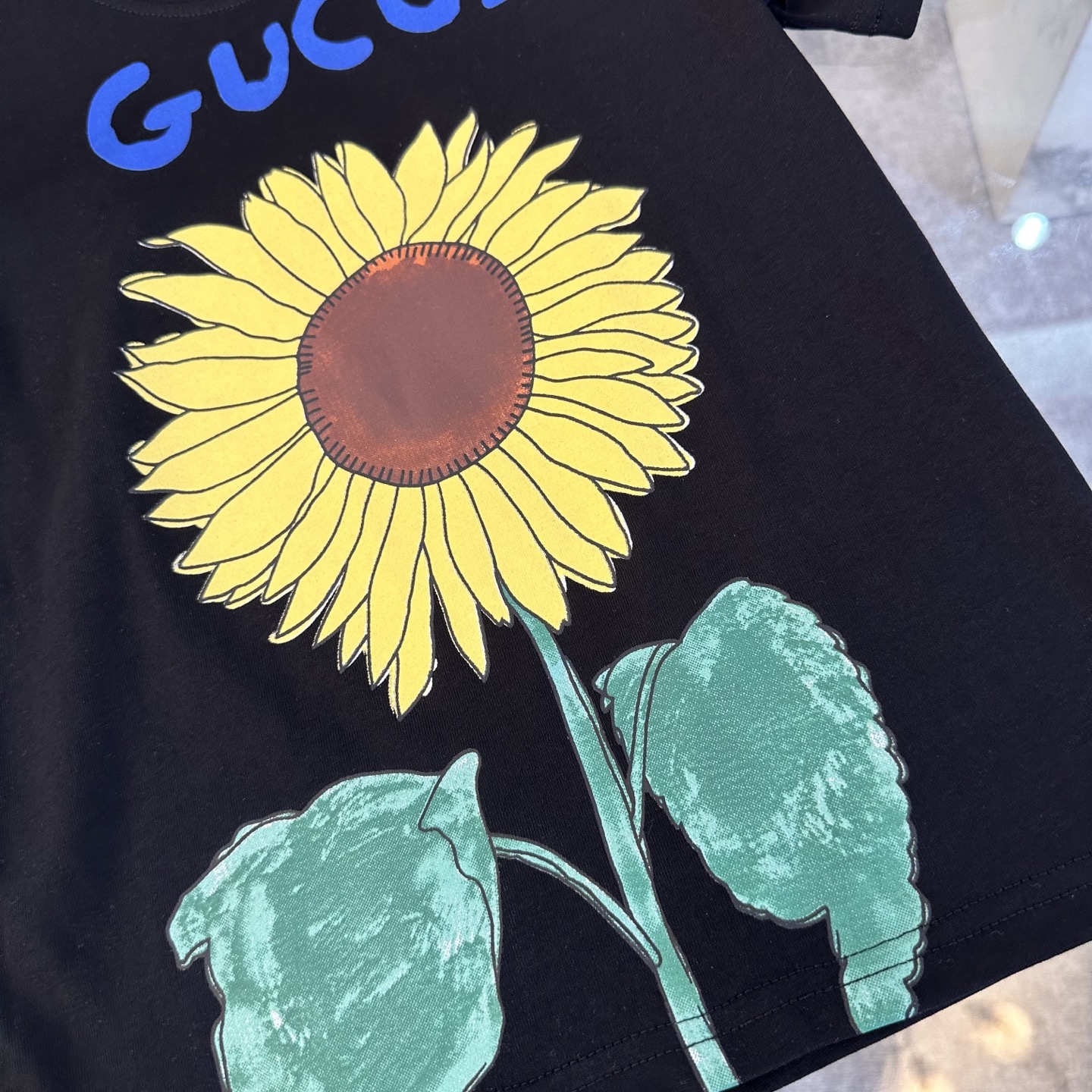 Gucci Gucci, high-end children's wear, private T-shirt, sunflower logo design before and after printing, cotton fabrics, upper body comfortable, good-looking, code number: 100/110/120/130/140/150/160 cm