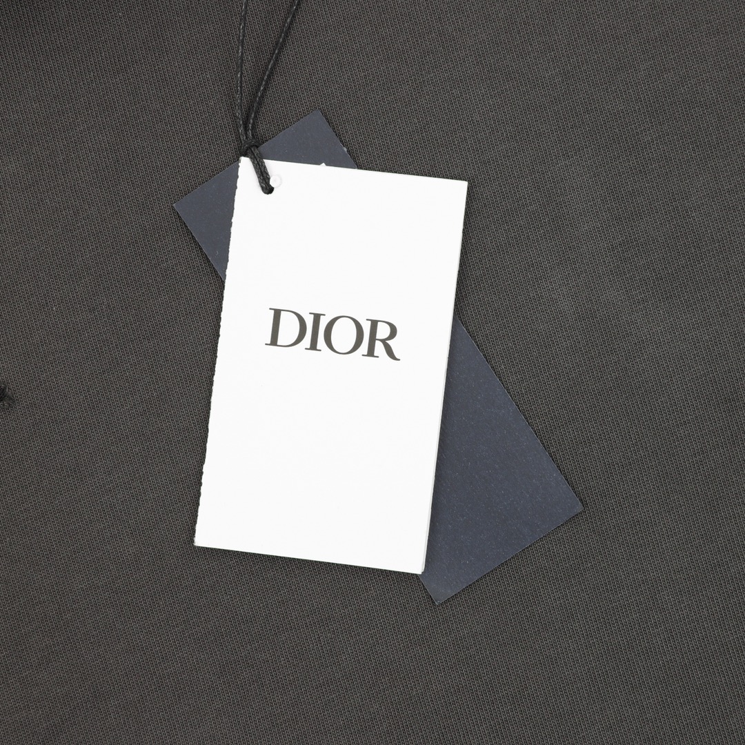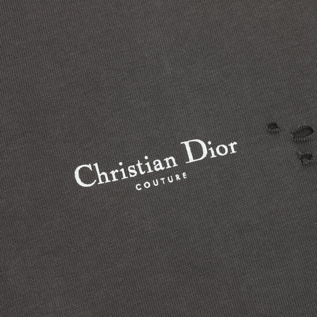 Dior/ Dior Spring/Summer 25 Lily of the Valley lettered distressed perforated print round neck short sleeve YB purchase pattern, made of 270g washed cotton, 36 count double yarn smooth, comfortable soft fabric, skin-friendly breathable, tight and thick hand feel, four-thread tight edge, double thread collar