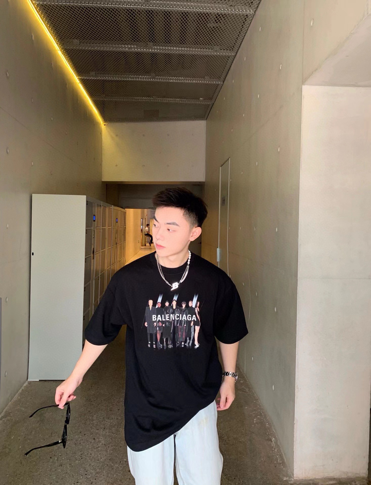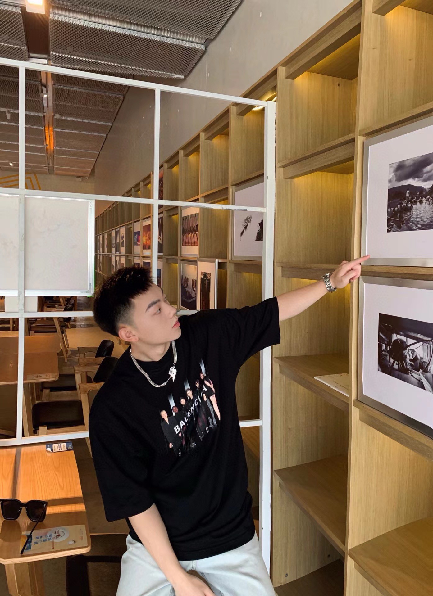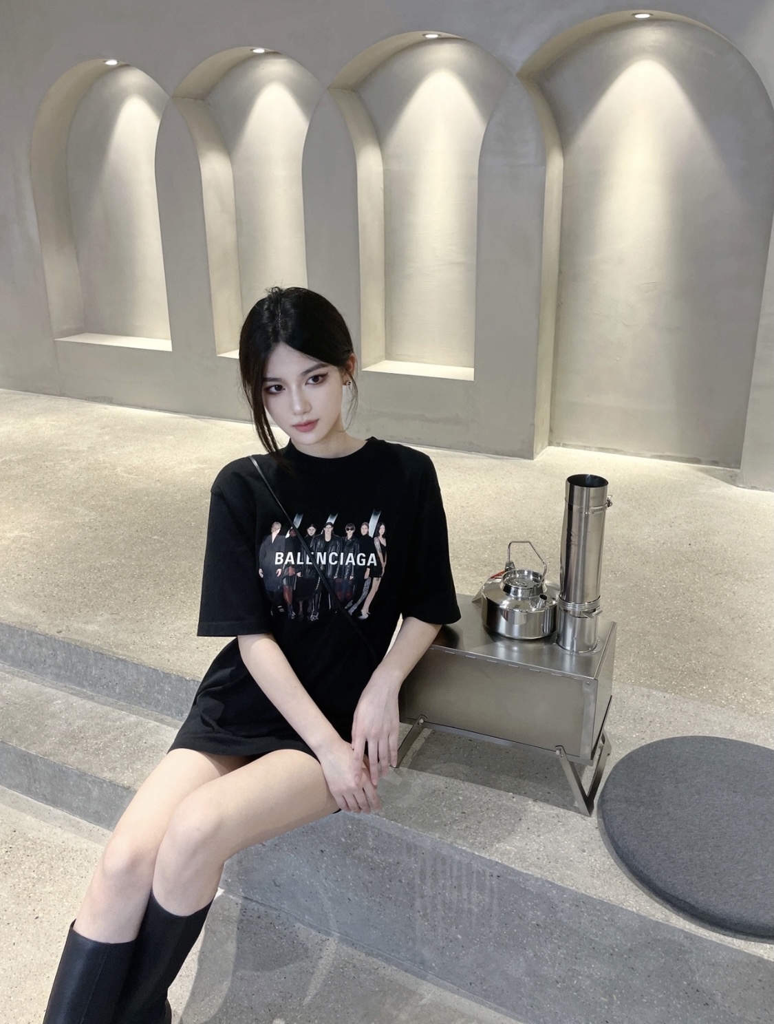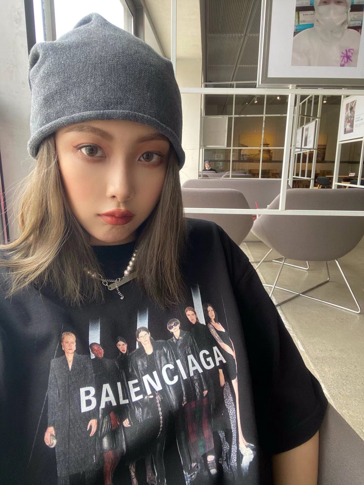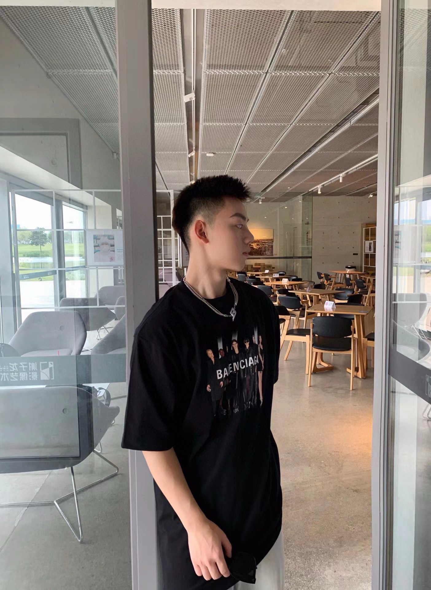 The effect of wearing Balenciaga All-Star portrait printed short-sleeved shirt