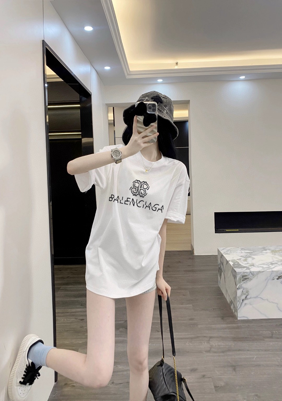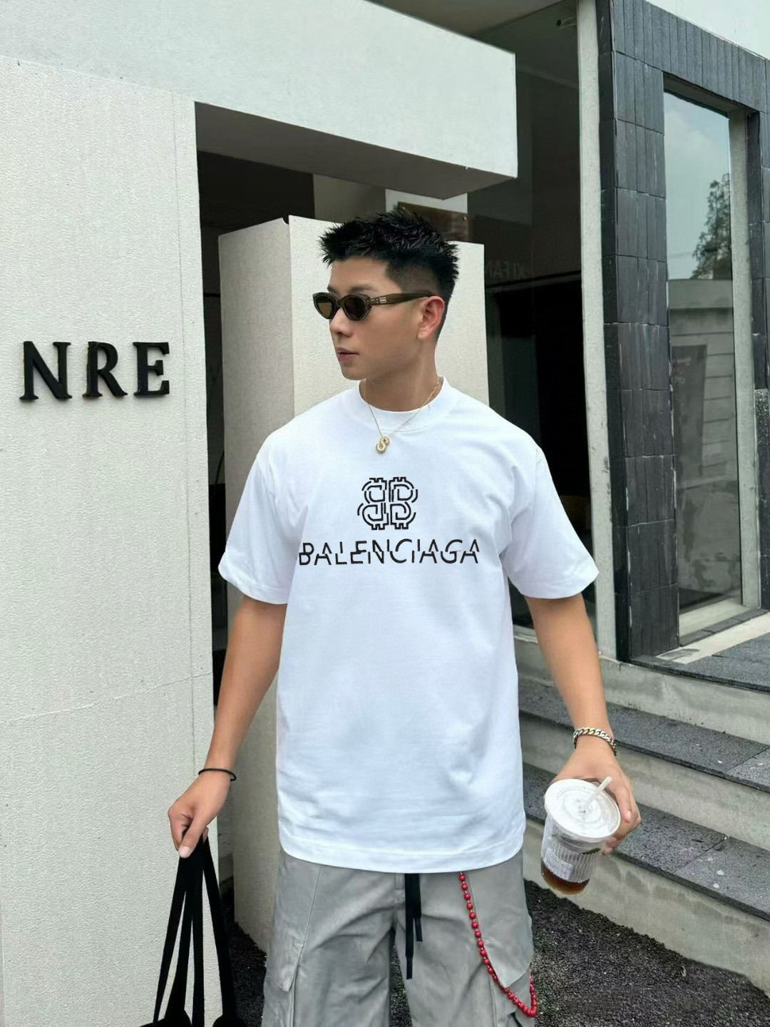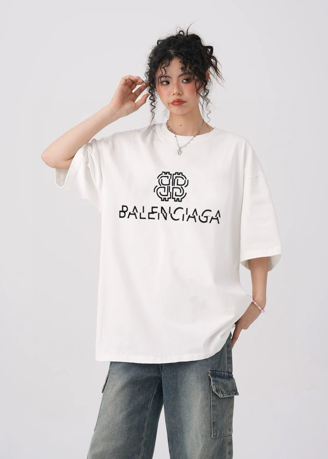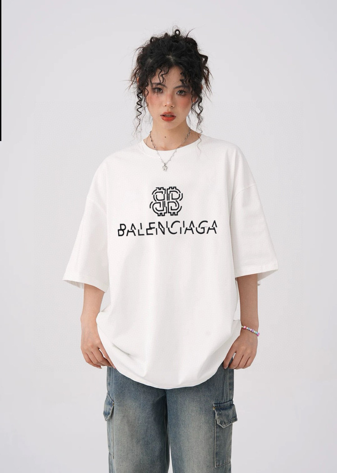 #Balenciaga/ Parisienciaga 25ss misaligned letter logo embroidered short-sleeved wearing effect