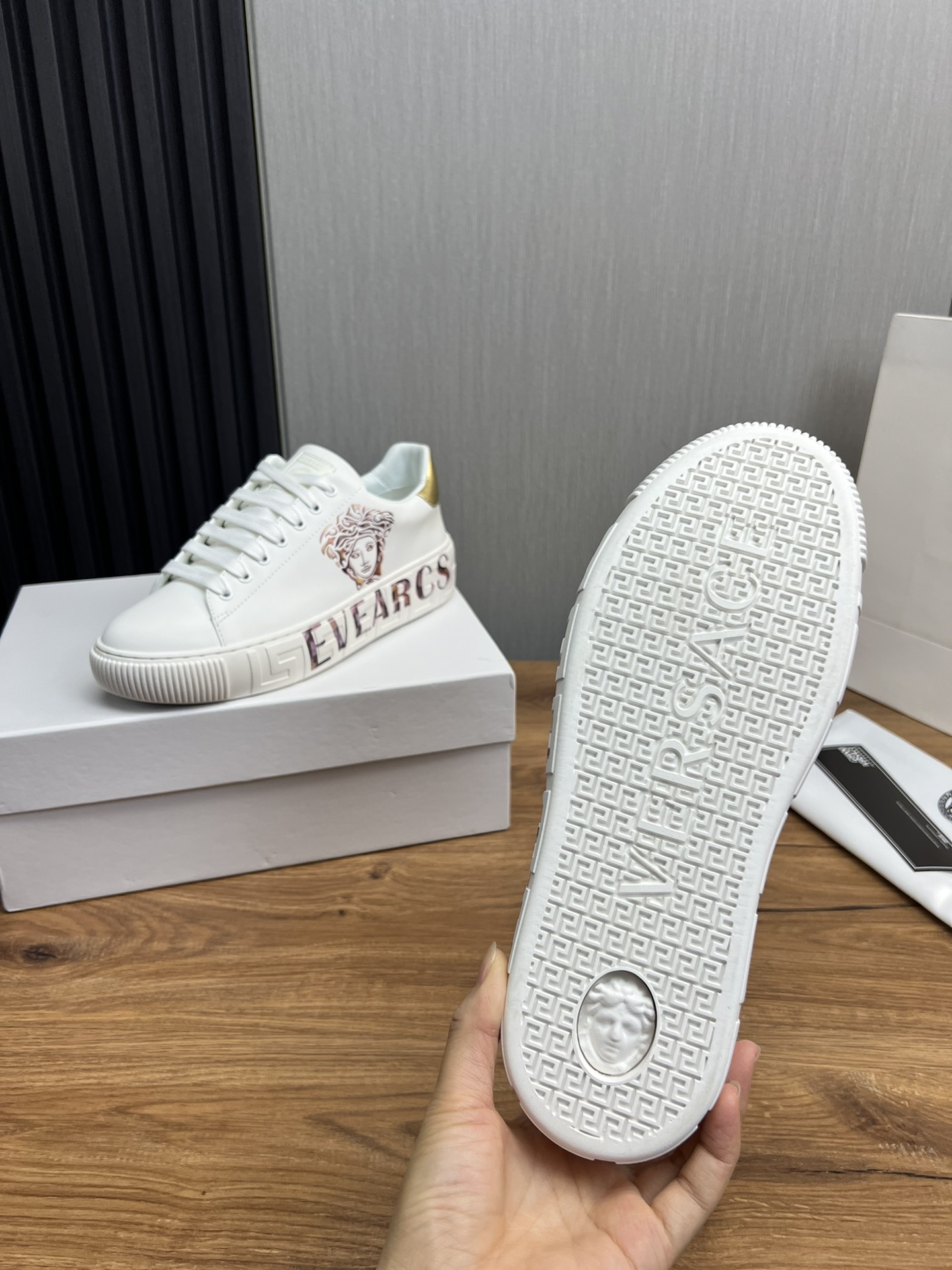 Style #3005?????? VERSACE fashion leather couple casual shoes ?? Year-round bestseller ?? Fabric: Top-grain cowhide Inside: The inside of sheep's skin Original outsole mold outsole Size :36-45 (Custom-made 45 is non-returnable and non-exchangeable)