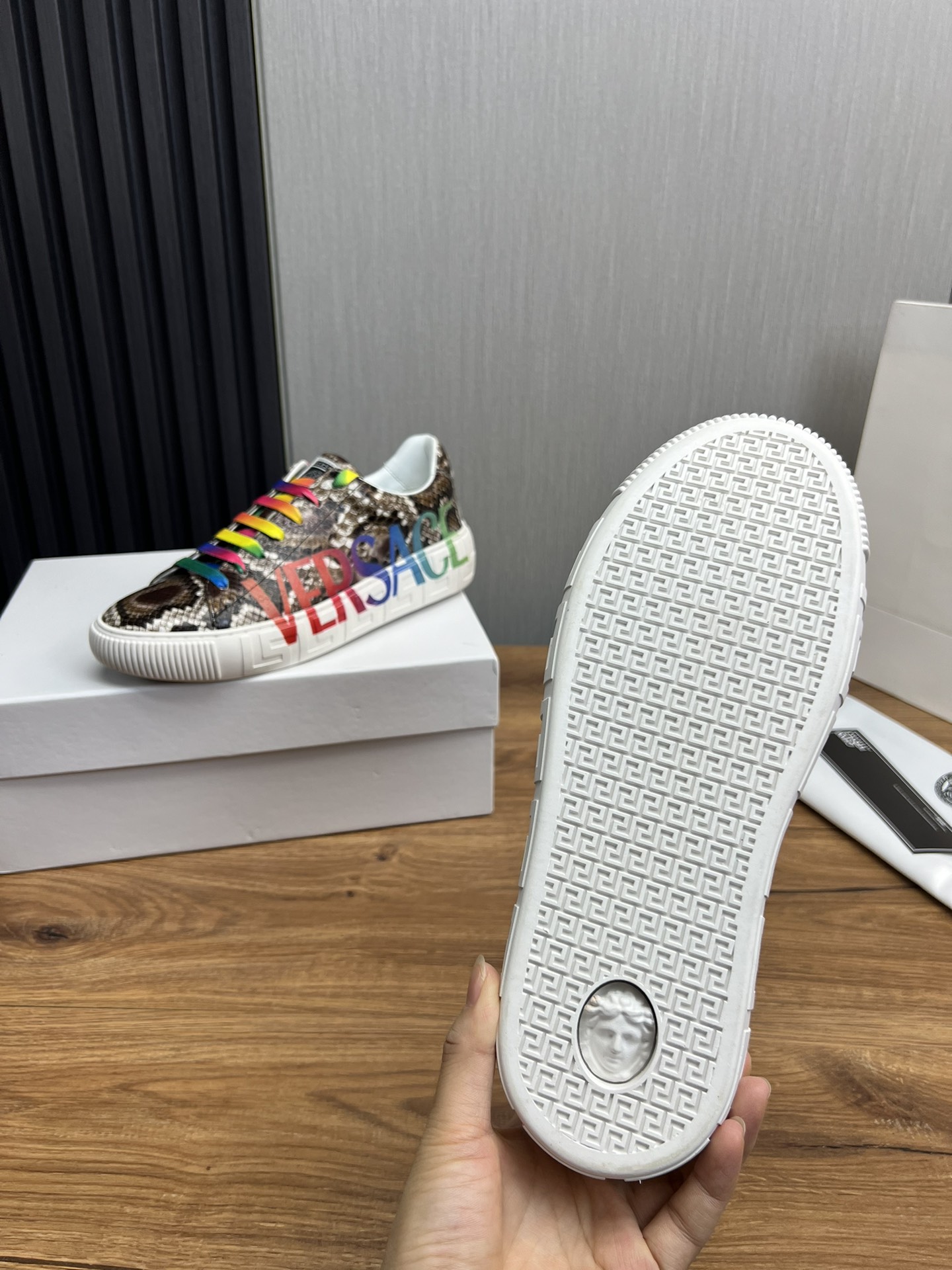 Style #3005?????? VERSACE fashion leather couple casual shoes ?? Year-round bestseller ?? Fabric: Top-grain cowhide Inside: The inside of sheep's skin Original outsole mold outsole Size :36-45 (Custom-made 45 is non-returnable and non-exchangeable)