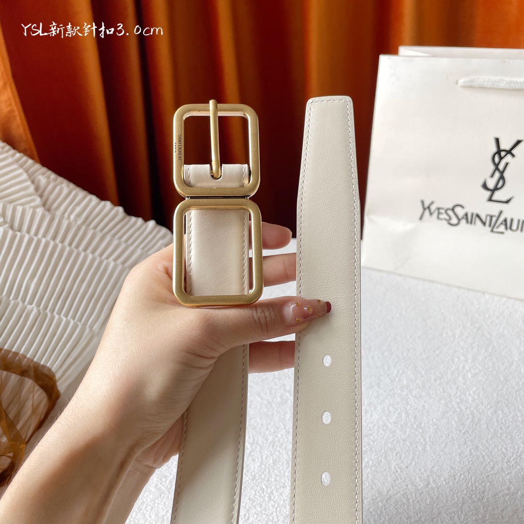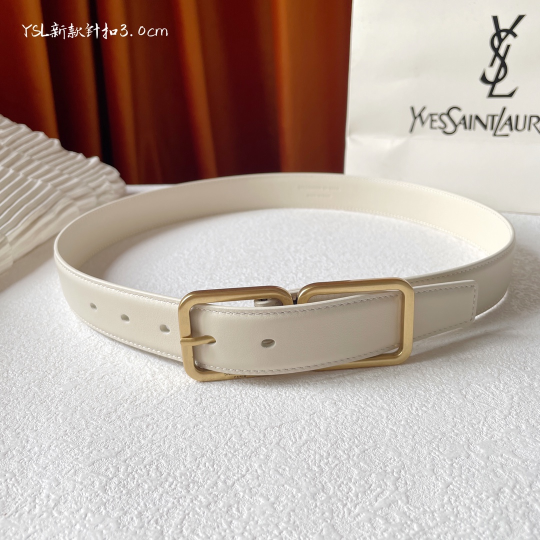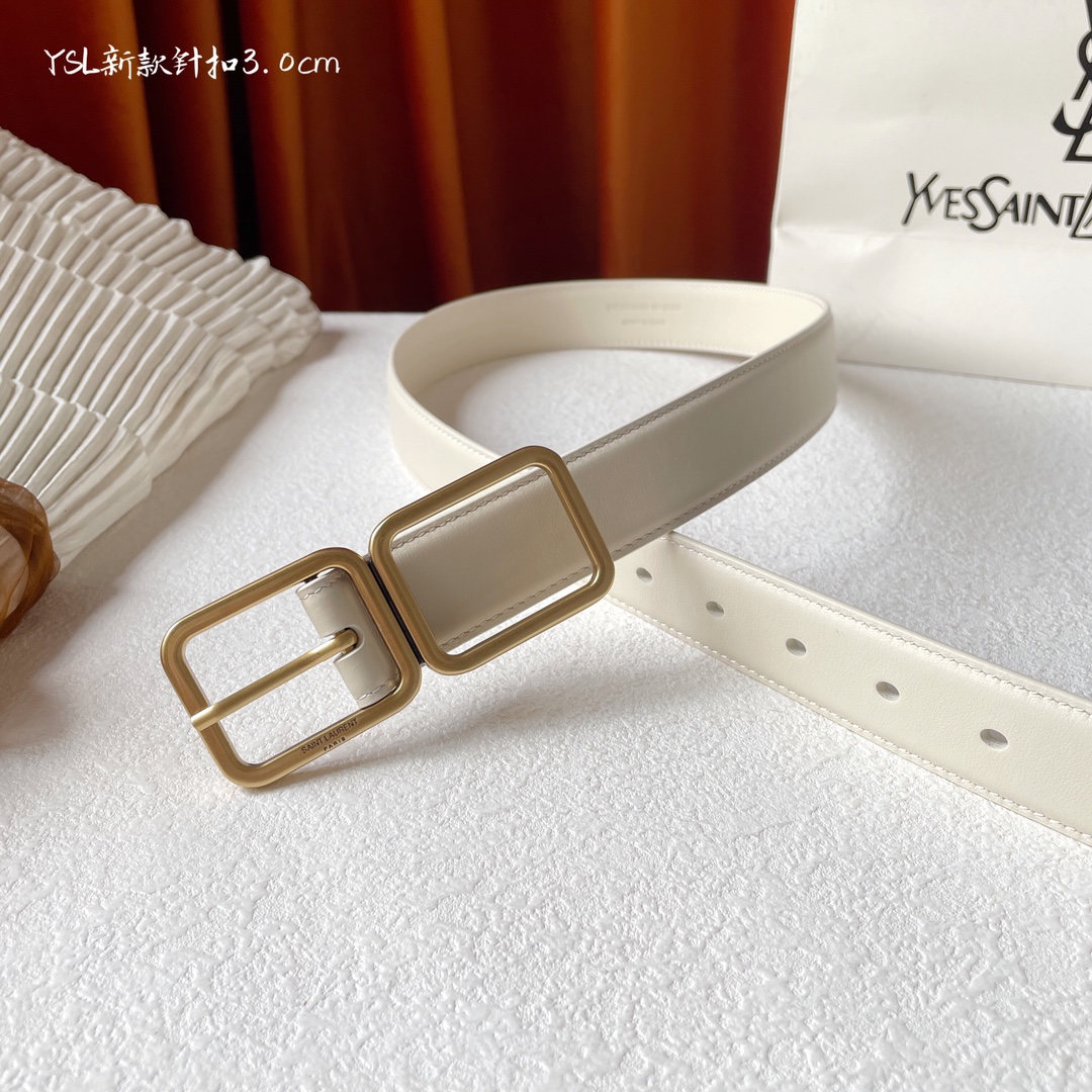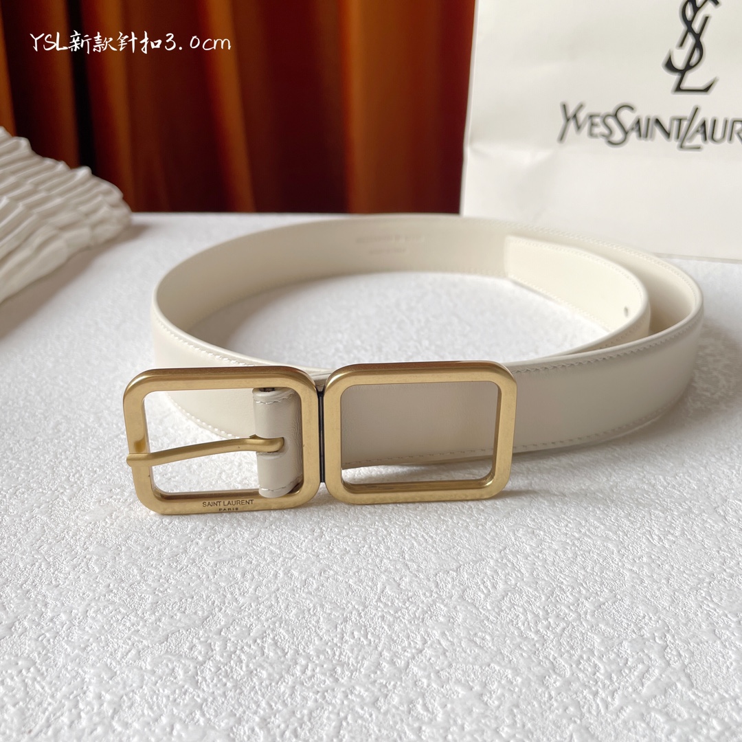 Yves Saint Laurent YSL plain weave top-quality calfskin soft belt 3.0cm, with two square copper buckles and needle buckles, is a must-have for casual, versatile and fashionable people