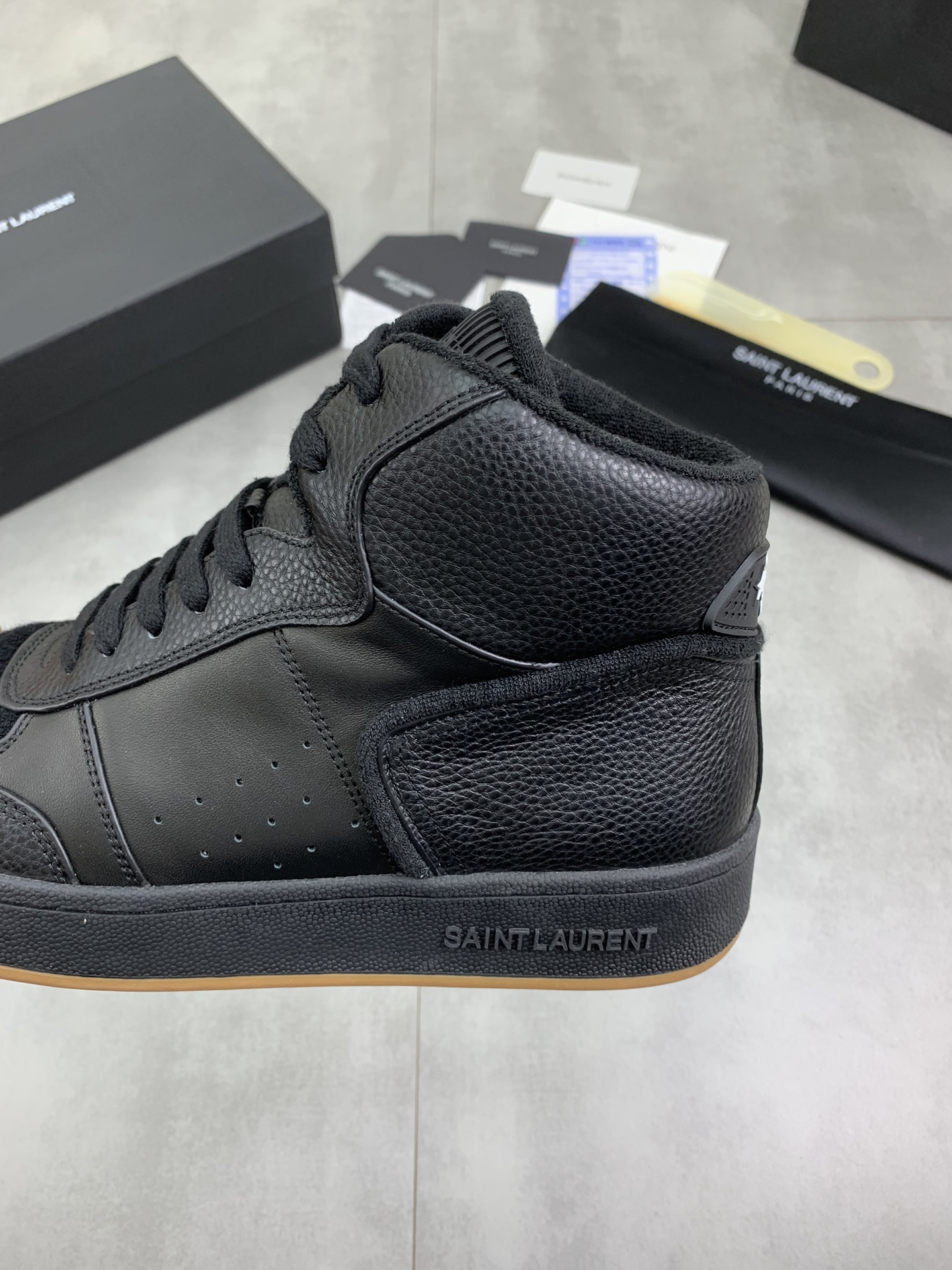 Model No. #4001?????? SAINT LAURENT low-top lace-up sneakers The new brand flagship store of S/L61 is now available on its official website. It features Italian original grain cowhide and front trim with perforated leather. The tie strap is decorated with the golden SAINT LAURENT logo. The side is decorated with the SL 61 logo, the back is embossed with the Saint Laurent logo, and the inner part is made of Tw soft towel fabric, which further enhances the softness, breathability and support of the shoes. There is no midsole last design, and memory insole insoles are added! The foot feel is incredibly comfortable and lightweight. The eco-friendly and anti-slip rubber two-tone outsole and the true stitching around the outsole further enhance the comfort and firmness of the entire pair of shoes. Perfection speaks for itself in the details! 5 ? Color available: Size :39-44 (custom-made for 38 and 45) Original box packaging + dust-proof bag