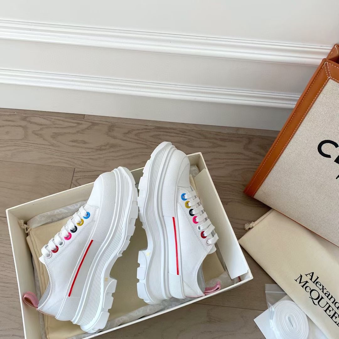 Alexander McQuee* Classic canvas thick-soled Dad shoes God-like appearance level, a versatile streetwear style! The overall look is very layered, with an invisible increase of 4CM. Original 3D stereoscopic printing and original computerized engraving lines, produced by a large factory in Dongguan. They cannot be compared with those produced by ordinary workshops. Welcome to compare The high-quality canvas is paired with a multi-layer TPU outsole. It may look bulky, but in fact, the outsole is soft, lightweight and can bounce back freely. Original genuine full set packaging + shopping bag Men and women, ?Size: 35-44 (40 for women, 45 for men, no return or exchange)