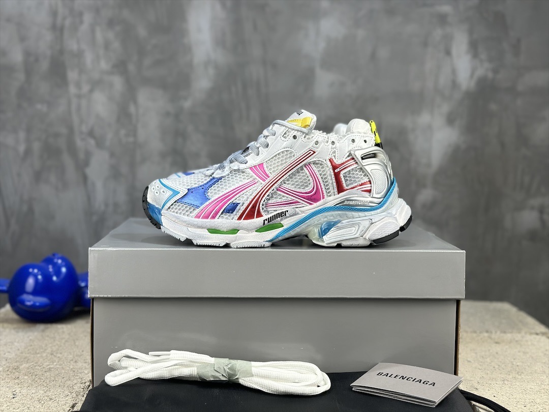 Model No. #5002?????? Made in Dongguan [In stock] BALENCIAGA 7.5th generation new Balenciaga Runner showcases the style of designer Demna's sneakers through details such as glue overflow, aging, stitching, etc. It conveys a sense of retro with a pair of "old shoes", rear side plate, upturned toe, It then presents Demna's future conception in terms of structure; The original large box is 100% faithful to the official configuration from the inside out. It's top-notch and exclusively available, outperforming all versions. Code numbers: 35, 36, 37, 38, 39, 40, 41, 42, 43, 44, 45, 46