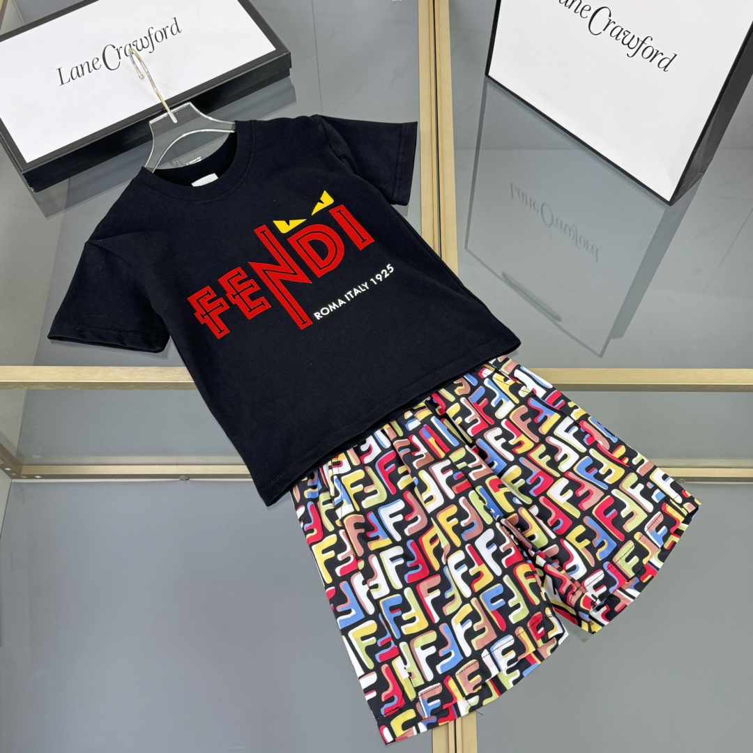 Fendi, high-end children's wear, private suit, pure cotton fabrics, shorts elastic waist is designed, the classic FF full printing, frivolous breathable fabrics, upper body comfortable, good-looking, code number: 100/110/120/130/140/150/160 cm