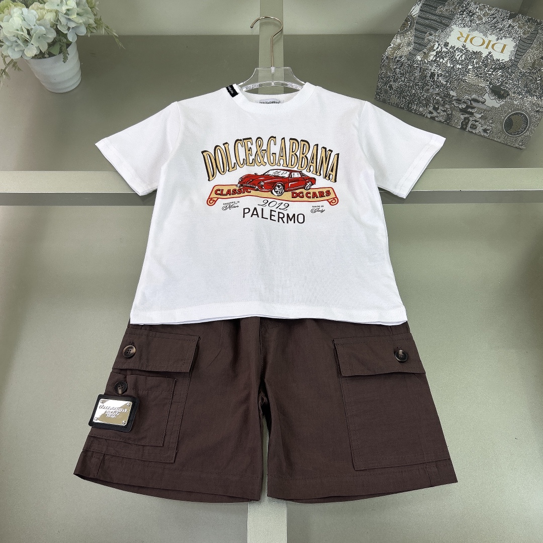 DG high-end children's clothing, boy's suit, adopting the elaborate rice white cotton plain fabrics, positive print effect printing, tie-in knickers of tooling, upper body comfortable, good-looking, code number: 90/100/110/120/130/140/150 cm
