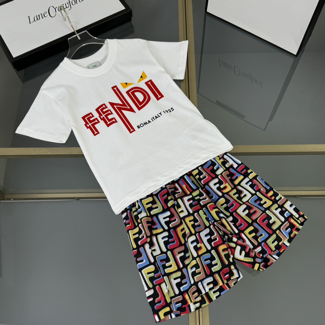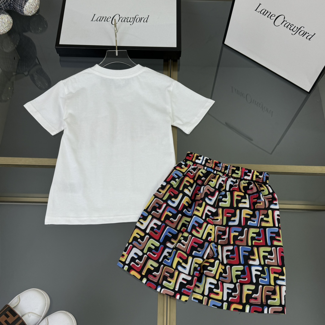 Fendi, high-end children's wear, private suit, pure cotton fabrics, shorts elastic waist is designed, the classic FF full printing, frivolous breathable fabrics, upper body comfortable, good-looking, code number: 100/110/120/130/140/150/160 cm