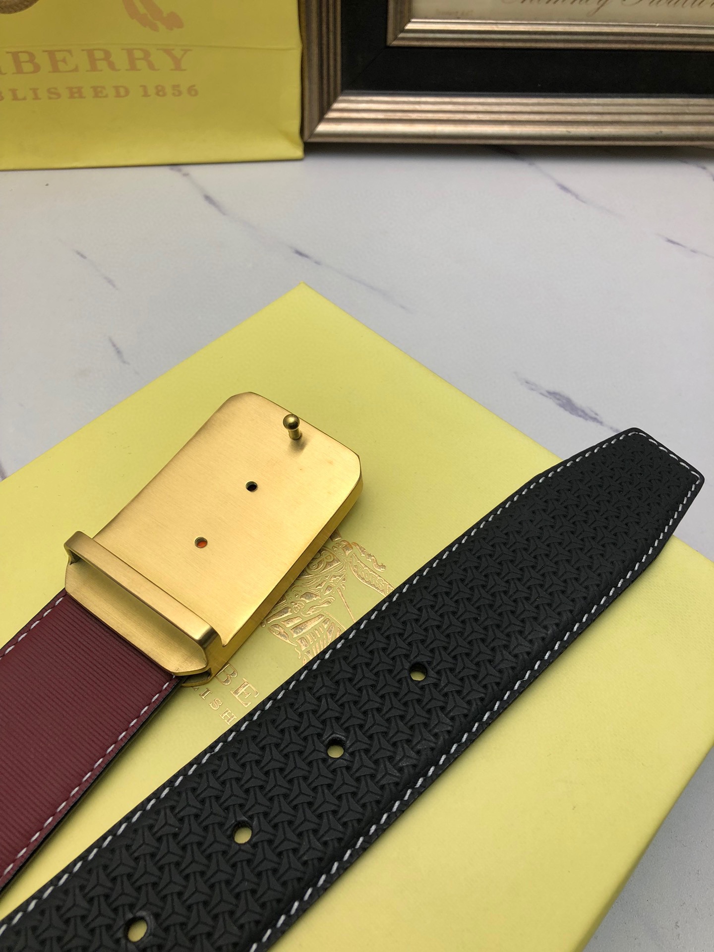 Burberry: Original single-layer calfskin embossed with patterns, lined with plain cowhide base, creating a woven appearance. Decorated with the original single buckle of the logo. The counter width is 4.0