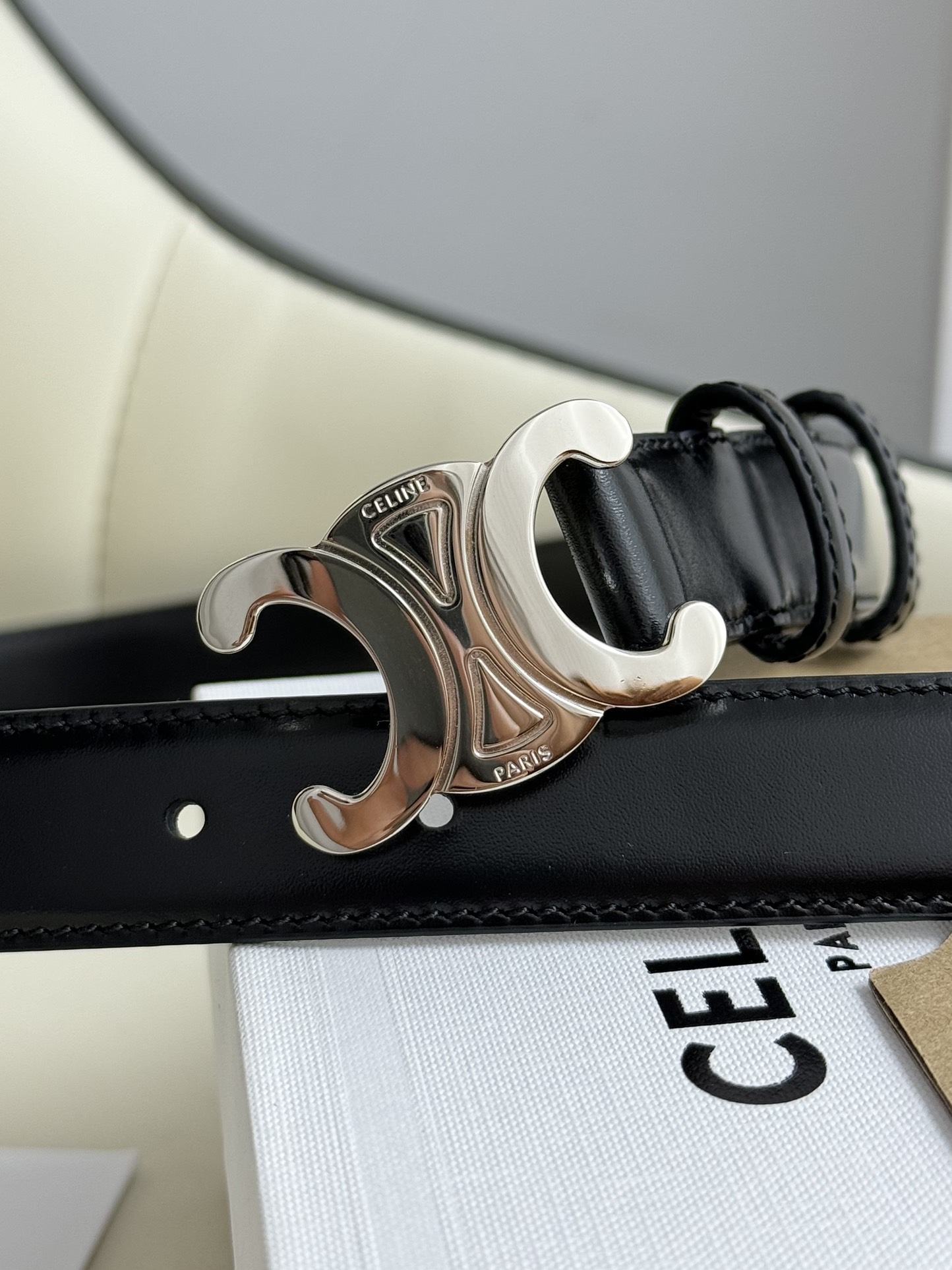 CELINE counter in sync, belt width 2.5cm top layer small leather, eye-catching debut, neat and elegant, extremely good-looking and classic Arc de Triomphe belt, casually match coat ?? skirt ?? jeans ??