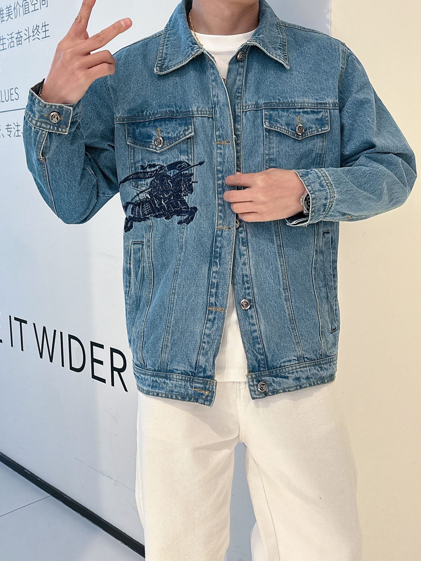 The same style on Burberry's official website, with all three labels complete and available for sale simultaneously! Spring 2025 new men's denim jacket, high-quality original single with three labels complete, high-end version, counter logo! The custom-made fabric for the counter is highly breathable and comfortable, with impeccable details. The brand elements and design concepts reflect high quality. The touch is delicate and soft! It presents a casual cut and has an amazing fit when worn! Size: M ~ 3XL. Please report your height and weight when placing an order.